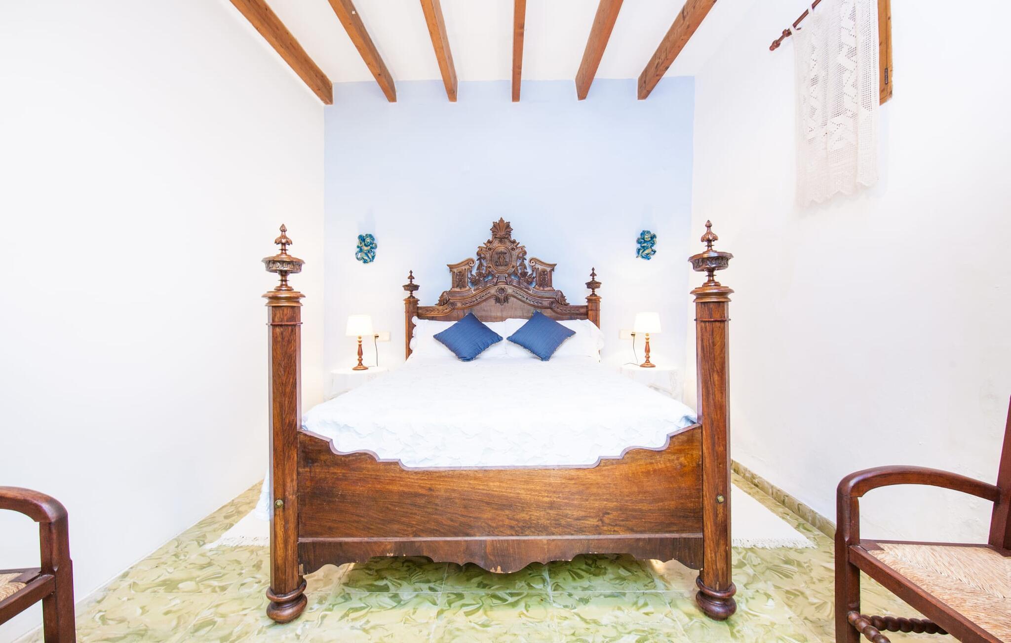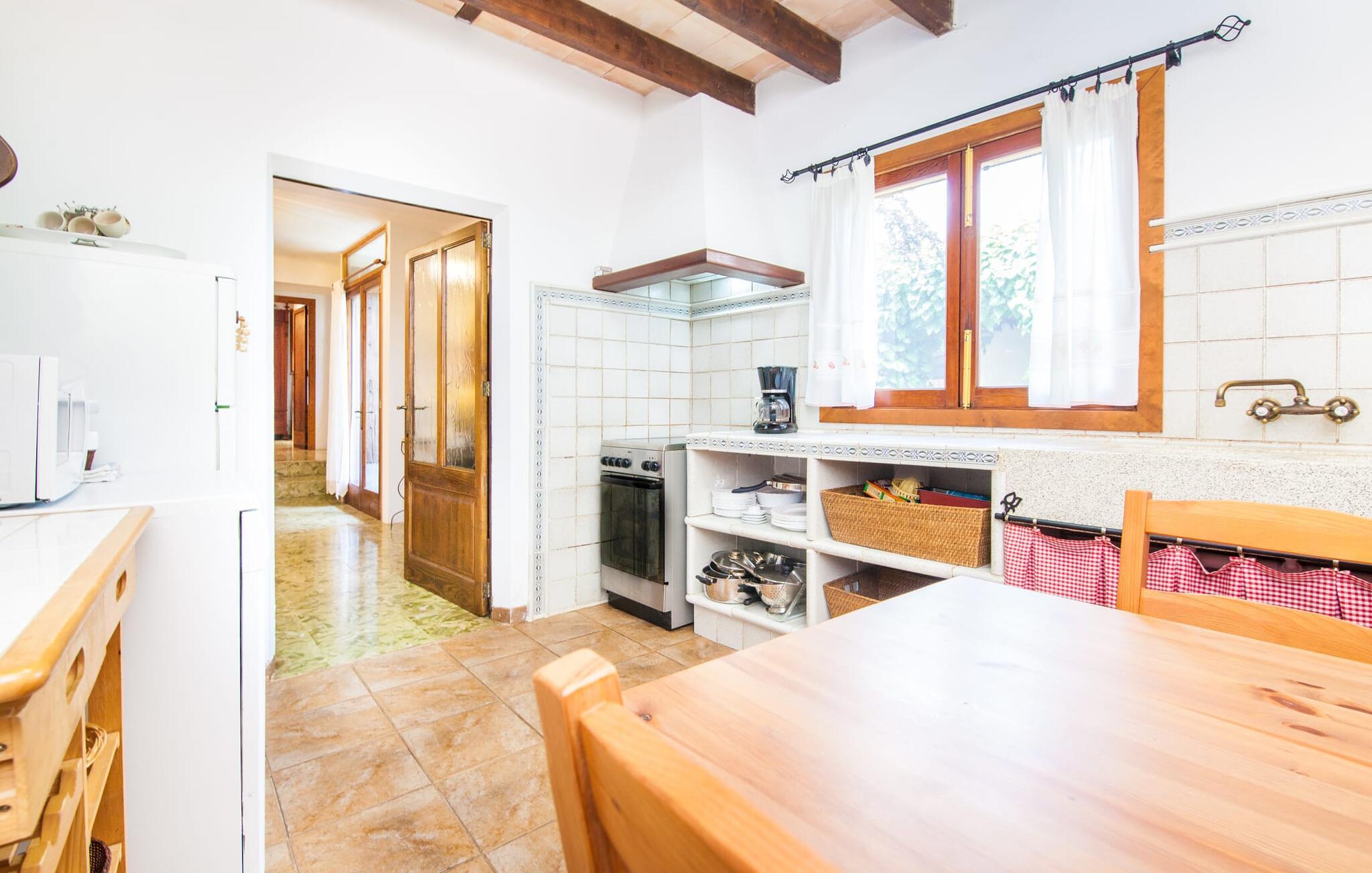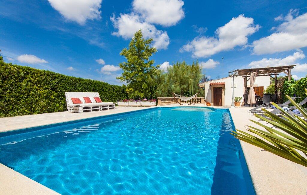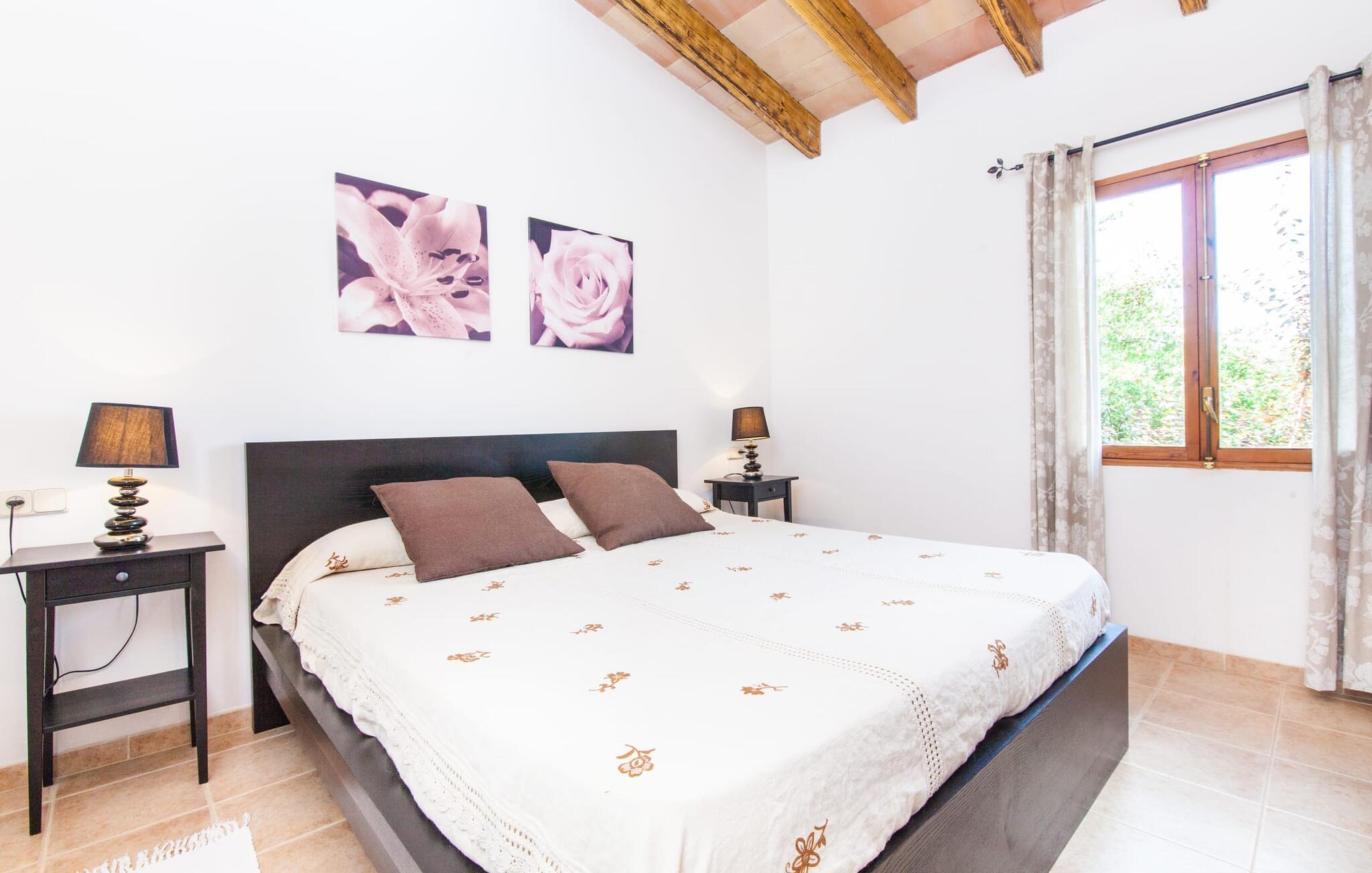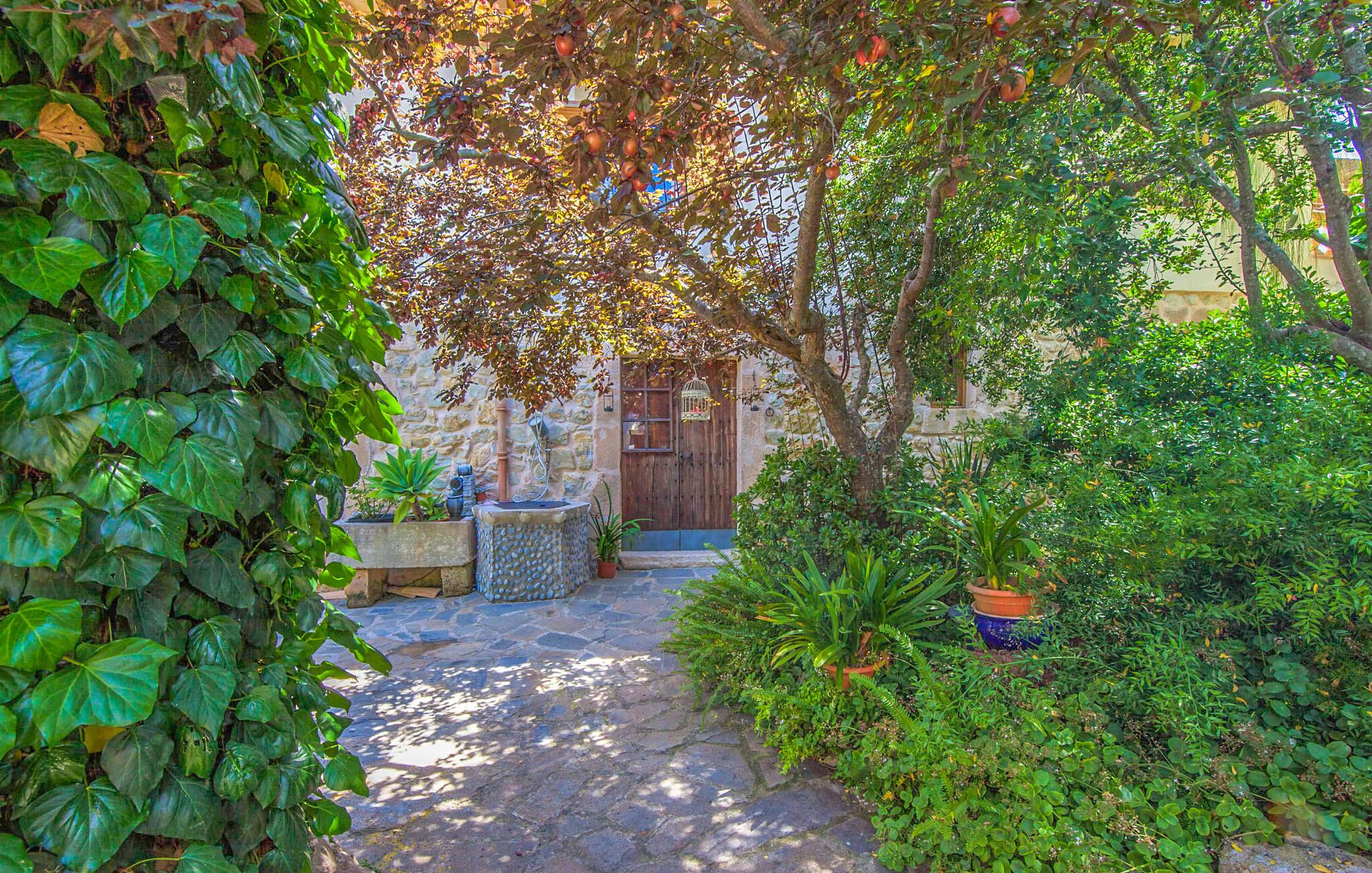 Villaen "Sa Caseta den Tronca" vil glæde jer med sit storslåede udeareal. Alt er smukt plantet, hver centimeter er grøn og blomstrer. Selv udefra giver villaen et rustikt og autentisk indtryk. Nogle af vandområderne er dekoreret med farverige mosaikker og har natursten overalt. Foran huset er der overdækket terrasse og grillplads, hvor I kan tilberede lækre delikatesser. Et andet højdepunkt ved udendørsområdet er den vidunderlige pool. Et spring i det kolde vand er en sikker forfriskning på varme sommerdage. Derudover er der masser af muligheder tilgængelige i og omkring villaen, når det kommer til at finde et sted at slappe af. I kan læne jer tilbage på liggestolene, slappe af i chill-out loungen eller lade jeres bekymringer ligge i hængekøjen. Foretrækker I skygge, er der også en lille overdækket terrasse med opholdsområde ved poolen. Og med vores egen legeplads med gynger og rutsjebaner bliver der også taget godt hensyn til de små, der rejser med os. Det indre af villaen "Sa Caseta den Tronca" er meget rustikt indrettet. I stuen er der en behagelig lædersofa og en gammel brændeovn, som i kombination med den indbyggede varmeovn giver hyggelig varme og en behagelig atmosfære i vintermånederne. Møblerne i dette rum er også overvejende traditionel. Fra stuen fører en dør ind til køkkenet, som er udstyret med en åben naturstensvæg og et lille spisebord. I stueetagen finder I også et soveværelse med dobbeltseng og et badeværelse. De synlige træbjælkelofter og de klassiske møbler giver en masse mallorcansk flair. På øverste etage er der yderligere to soveværelser med dobbeltsenge og et badeværelse med en synlig naturstensvæg, en dobbelt vask og et badekar. Herfra er der også adgang til husets altan. Der finder I et opholdsområde, hvorfra I kan skue ud over trætoppene og nyde omgivelserne i jeres sommerhus i fulde drag. Denne villa ligger midt på øen, nær Sant Joan. Hvis I slentrer gennem byens gader, vil I opdage endnu mere af det autentiske Mallorca. Placeringen af villaen er ideel til udflugter i alle retninger. Med jeres lejebil kan I nå de smukke strande, som kan nås via den tydeligt hørbare vej lige foran huset. Disse strande, herunder den lange sandstrand Can Picafort i Alcúdia-bugten, ligger omkring 30 km fra ejendommen. Palma, Mallorcas hovedstad, ligger cirka 37 km væk. Der vil I opdage masser af interessante seværdigheder, gode restauranter og varierede stier og vandrestier. Efter ca. 6 km kørsel kommer I til Sineu kommune. Hver onsdag er der markedsdag der. Det siges, at dette er det smukkeste bondemarked på hele Mallorca. Typiske mallorcanske delikatesser og tøj, lædervarer og fantastiske julesouvenirs kan købes på markedet. Tro os: I kan simpelthen ikke gå glip af en tur dertil. Den autentiske villa "Sa Caseta den Tronca" ligger midt på øen, nær Sant Joan kommune. Udeområdet omkring feriehuset er virkelig idyllisk. Der er et supermarked ca. 3,2 km væk, hvor I kan gøre jeres daglige indkøb. Der er også en række hyggelige restauranter i byen Sant Joan og i Sineu, ca. 6 km væk, finder Mallorcas smukkeste bondemarked sted hver onsdag.