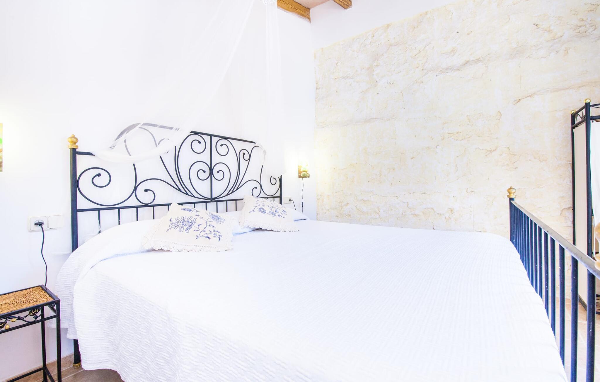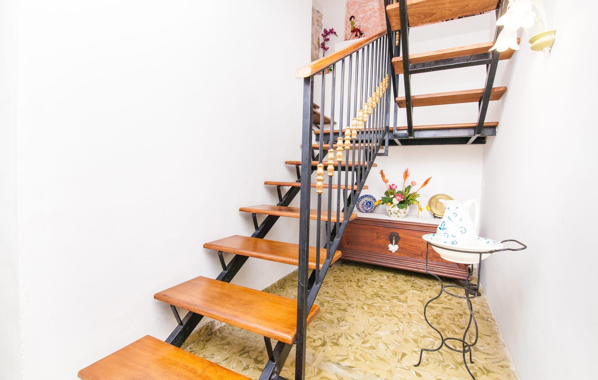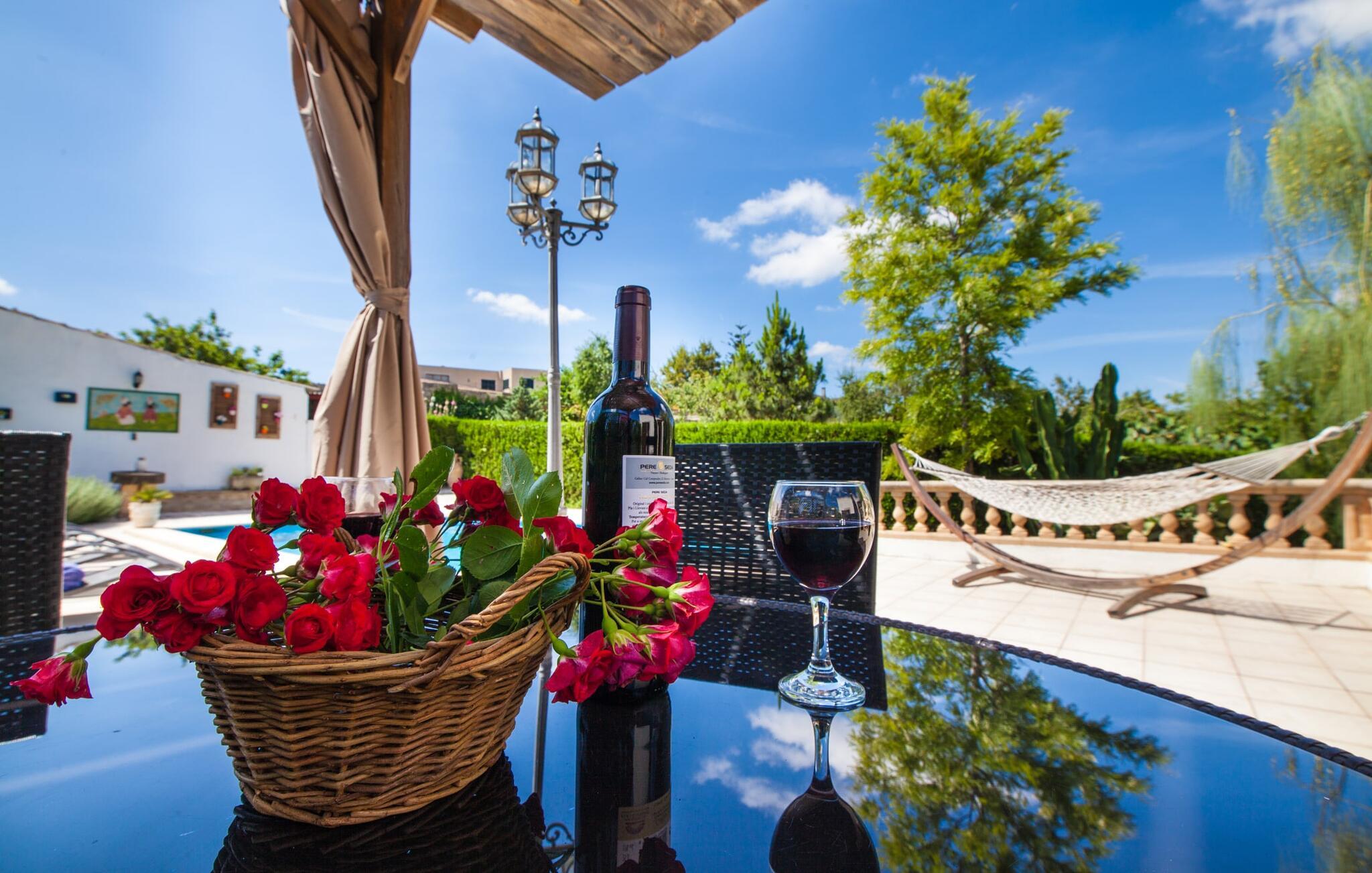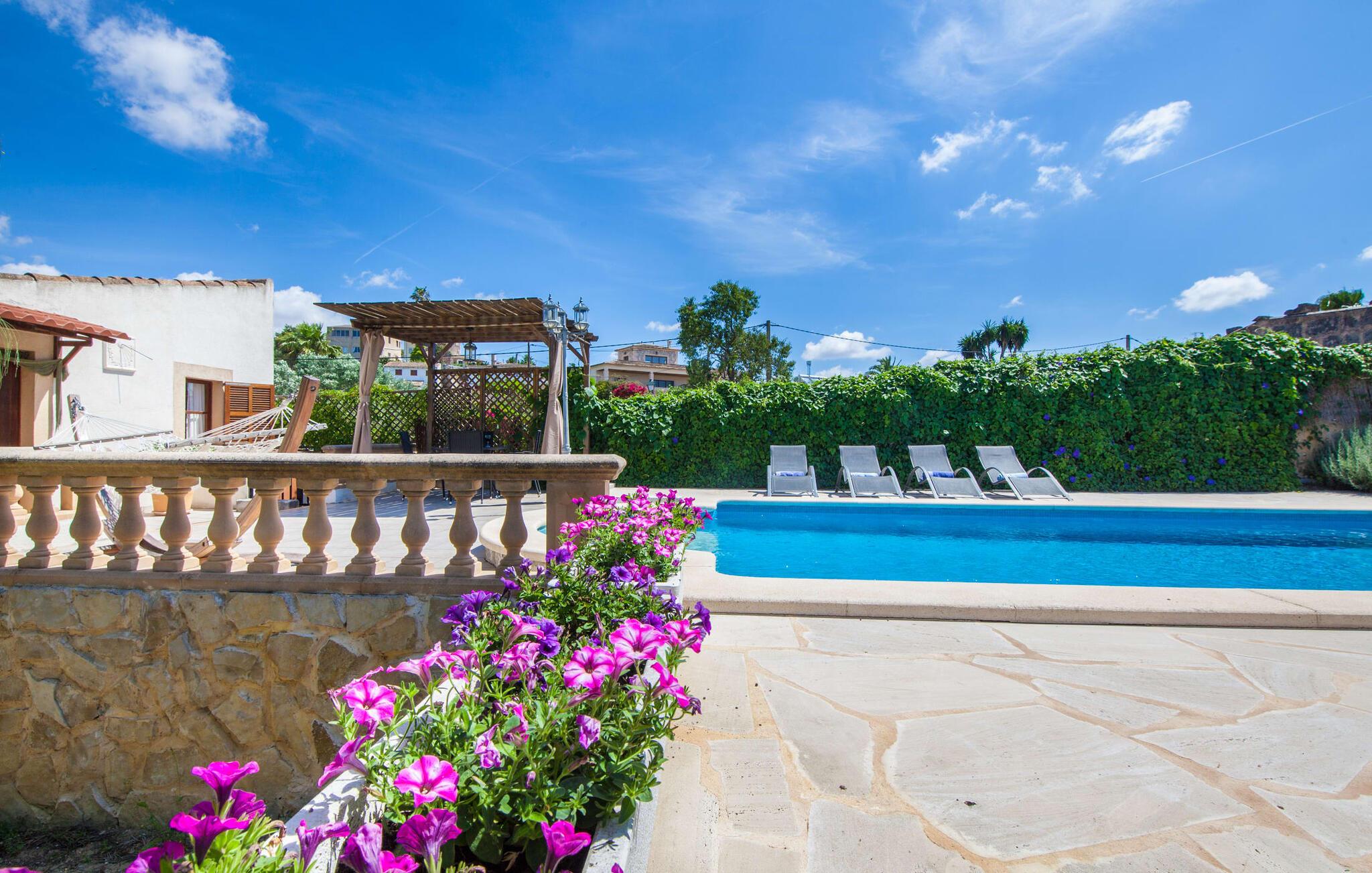 Villaen "Sa Caseta den Tronca" vil glæde jer med sit storslåede udeareal. Alt er smukt plantet, hver centimeter er grøn og blomstrer. Selv udefra giver villaen et rustikt og autentisk indtryk. Nogle af vandområderne er dekoreret med farverige mosaikker og har natursten overalt. Foran huset er der overdækket terrasse og grillplads, hvor I kan tilberede lækre delikatesser. Et andet højdepunkt ved udendørsområdet er den vidunderlige pool. Et spring i det kolde vand er en sikker forfriskning på varme sommerdage. Derudover er der masser af muligheder tilgængelige i og omkring villaen, når det kommer til at finde et sted at slappe af. I kan læne jer tilbage på liggestolene, slappe af i chill-out loungen eller lade jeres bekymringer ligge i hængekøjen. Foretrækker I skygge, er der også en lille overdækket terrasse med opholdsområde ved poolen. Og med vores egen legeplads med gynger og rutsjebaner bliver der også taget godt hensyn til de små, der rejser med os. Det indre af villaen "Sa Caseta den Tronca" er meget rustikt indrettet. I stuen er der en behagelig lædersofa og en gammel brændeovn, som i kombination med den indbyggede varmeovn giver hyggelig varme og en behagelig atmosfære i vintermånederne. Møblerne i dette rum er også overvejende traditionel. Fra stuen fører en dør ind til køkkenet, som er udstyret med en åben naturstensvæg og et lille spisebord. I stueetagen finder I også et soveværelse med dobbeltseng og et badeværelse. De synlige træbjælkelofter og de klassiske møbler giver en masse mallorcansk flair. På øverste etage er der yderligere to soveværelser med dobbeltsenge og et badeværelse med en synlig naturstensvæg, en dobbelt vask og et badekar. Herfra er der også adgang til husets altan. Der finder I et opholdsområde, hvorfra I kan skue ud over trætoppene og nyde omgivelserne i jeres sommerhus i fulde drag. Denne villa ligger midt på øen, nær Sant Joan. Hvis I slentrer gennem byens gader, vil I opdage endnu mere af det autentiske Mallorca. Placeringen af villaen er ideel til udflugter i alle retninger. Med jeres lejebil kan I nå de smukke strande, som kan nås via den tydeligt hørbare vej lige foran huset. Disse strande, herunder den lange sandstrand Can Picafort i Alcúdia-bugten, ligger omkring 30 km fra ejendommen. Palma, Mallorcas hovedstad, ligger cirka 37 km væk. Der vil I opdage masser af interessante seværdigheder, gode restauranter og varierede stier og vandrestier. Efter ca. 6 km kørsel kommer I til Sineu kommune. Hver onsdag er der markedsdag der. Det siges, at dette er det smukkeste bondemarked på hele Mallorca. Typiske mallorcanske delikatesser og tøj, lædervarer og fantastiske julesouvenirs kan købes på markedet. Tro os: I kan simpelthen ikke gå glip af en tur dertil. Den autentiske villa "Sa Caseta den Tronca" ligger midt på øen, nær Sant Joan kommune. Udeområdet omkring feriehuset er virkelig idyllisk. Der er et supermarked ca. 3,2 km væk, hvor I kan gøre jeres daglige indkøb. Der er også en række hyggelige restauranter i byen Sant Joan og i Sineu, ca. 6 km væk, finder Mallorcas smukkeste bondemarked sted hver onsdag.