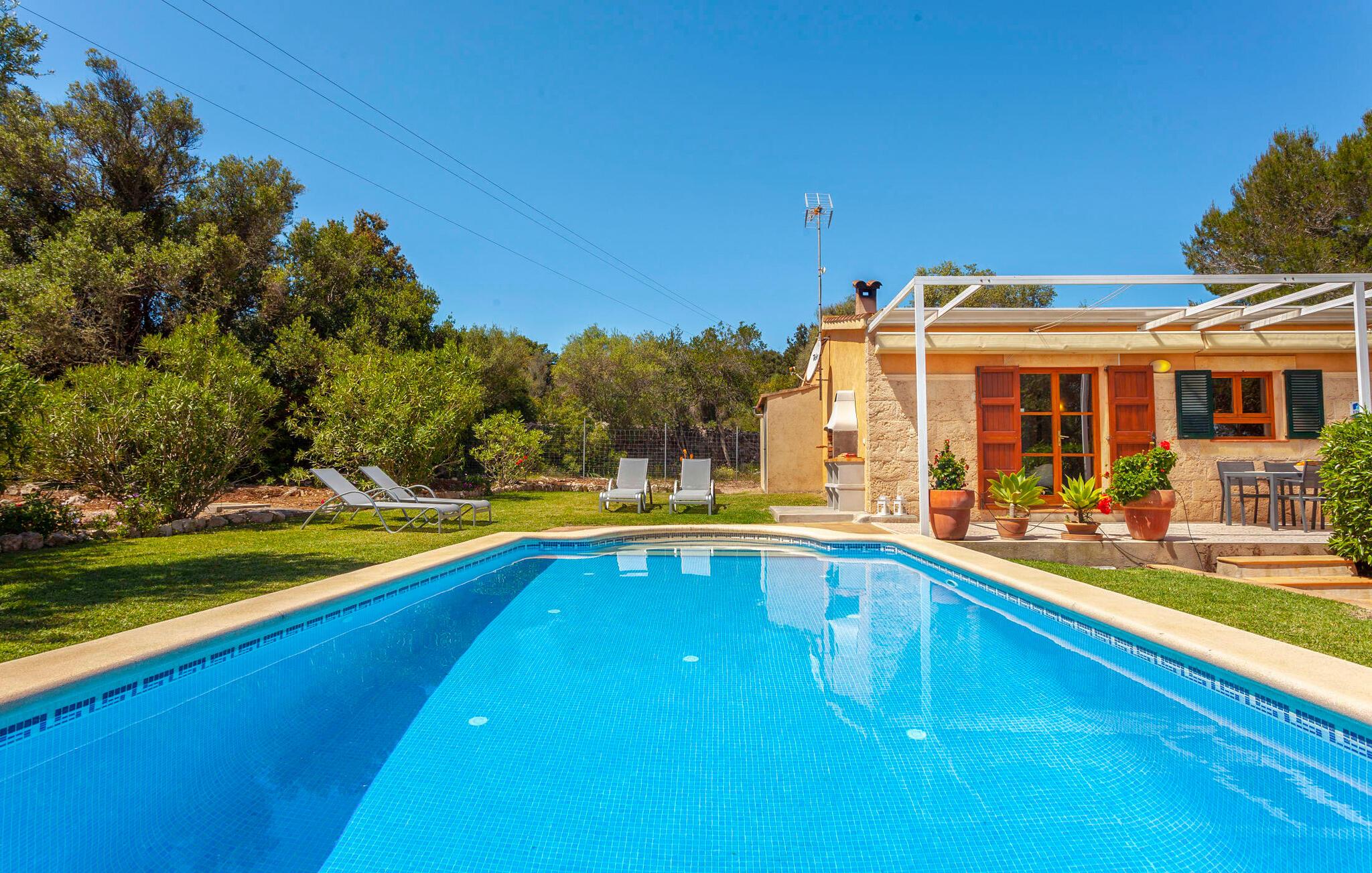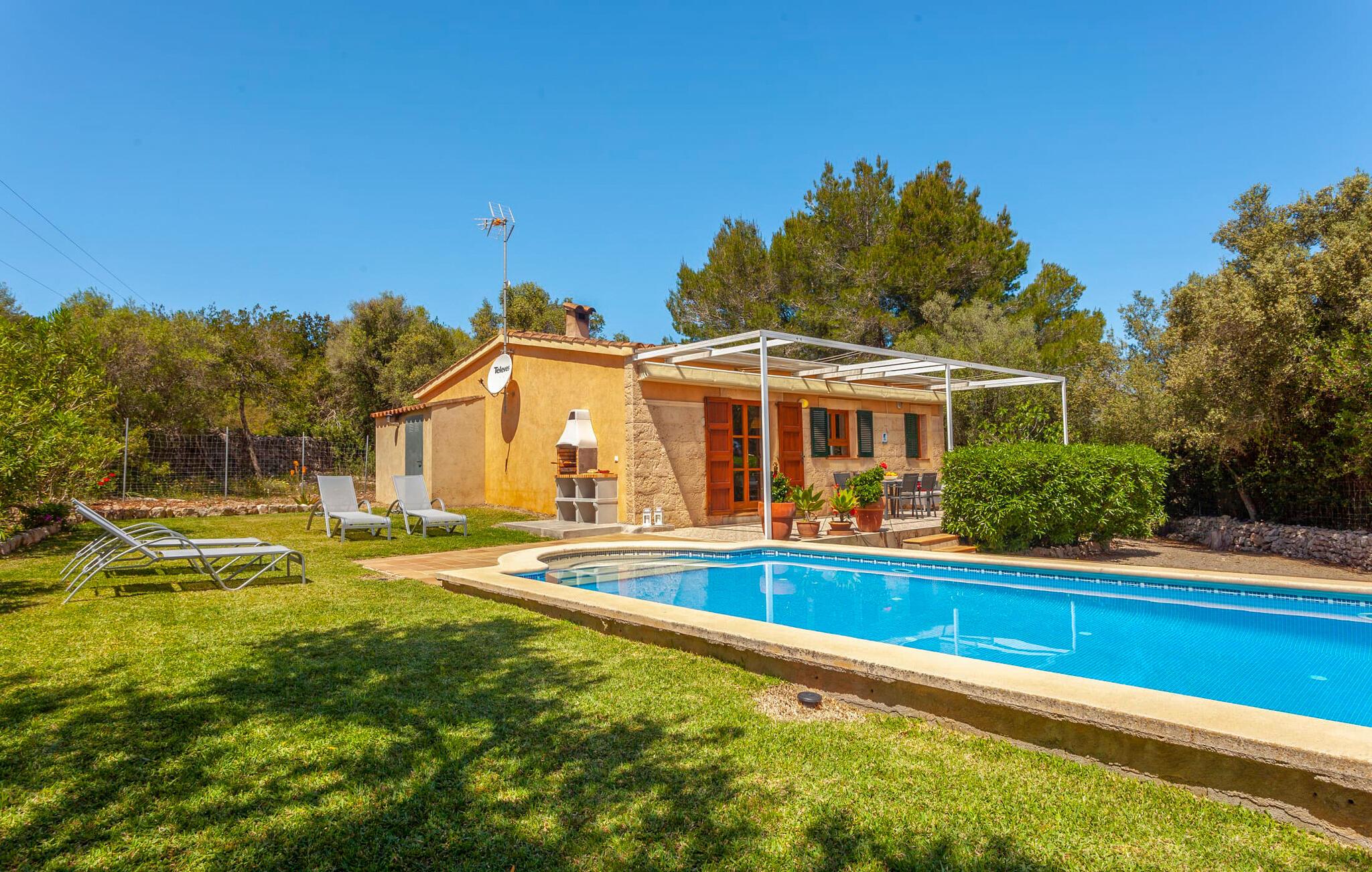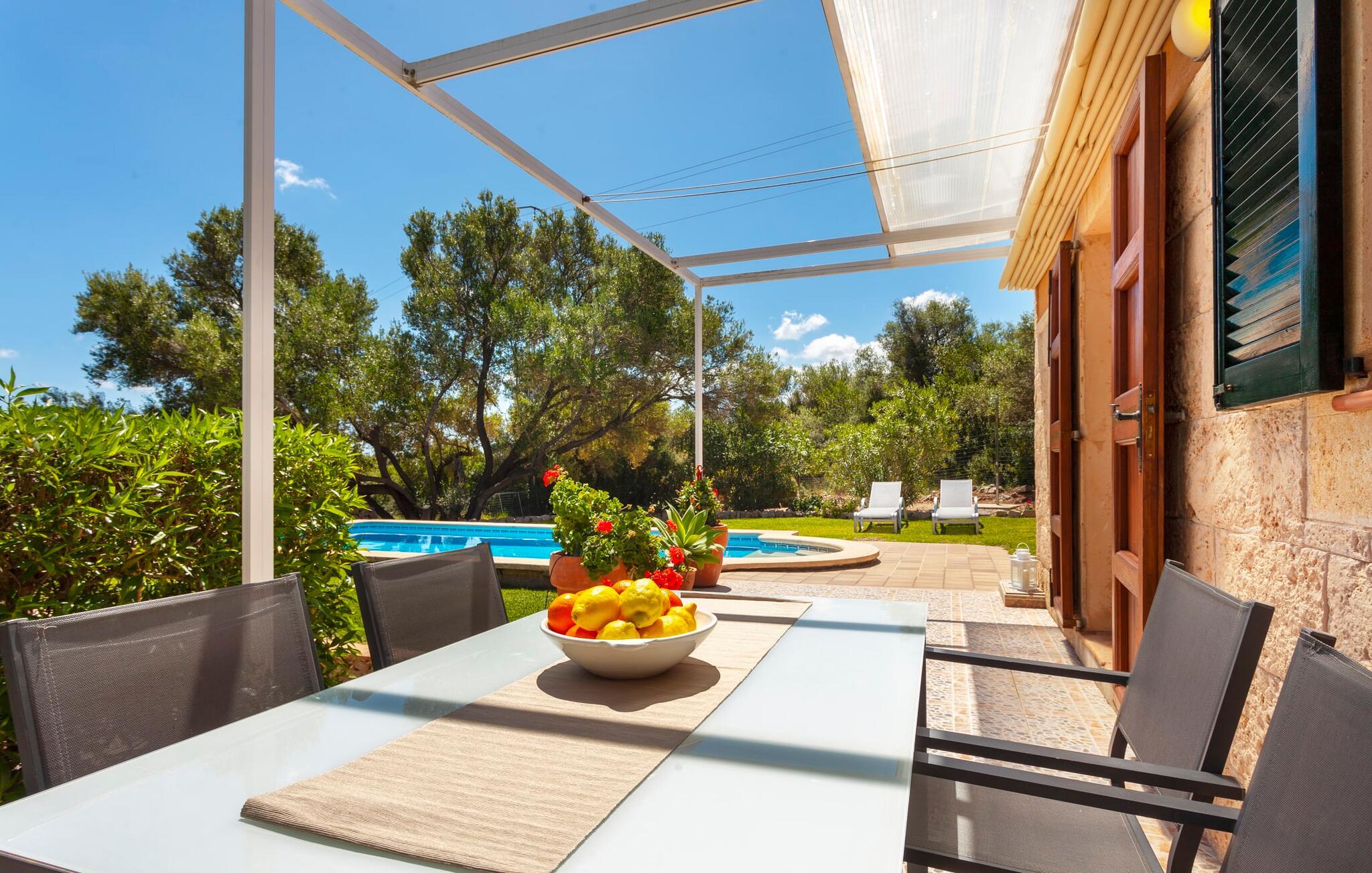 Ved jeres ankomst til "Sa Caseta" vil I blive betaget af de idylliske omgivelser med deres betagende udsigt over den charmerende by Artà. Til venstre er der en lille parkeringsplads og en solterrasse med bord og stole, det perfekte sted til en morgenkaffe På højre side fører en anden terrasse til en frodig græsplæne med liggestole, ideel til solbadning i skyggen af gamle træer. buet kant til at køle af på varme sommerdage Indenfor udstråler villaen varme og komfort og har 80 m² moderne boligareal. Den åbne stue har pejs og byder på smukke rammer for hyggelige aftener, mens det fuldt udstyrede køkken med spiseplads Bordet er ideelt til indendørs spisning. Med to hyggelige soveværelser og et rummeligt badeværelse forstærker lyse vægge og høje bjælkelofter den luftige atmosfære. "Sa Caseta" er ofte valgt af par, der ønsker at tilbringe en romantisk ferie og nyde den rolige beliggenhed. Om natten giver det oplyste San Salvador-kloster jeres ferie et magisk præg afsondret beliggenhed på en lille bakker omkring 4 km vest for Artà. Her bor I midt i vild, romantisk natur med ældgamle træer. Cypresser, mandler, baobab og oliventræer præger det blide bakkelandskab. En utrolig vidtrækkende udsigt over byen Artà er et højdepunkt ved dette feriehus. Den smukke, naturlige sandstrand i Cala Torta ligger kun 15 km væk, andre strande er endnu tættere på huset.