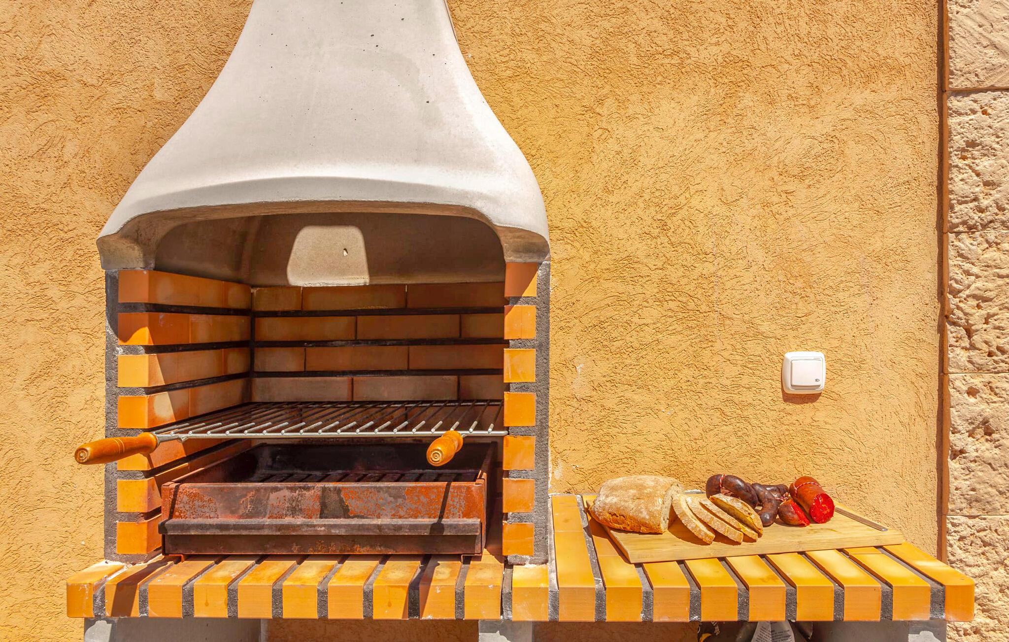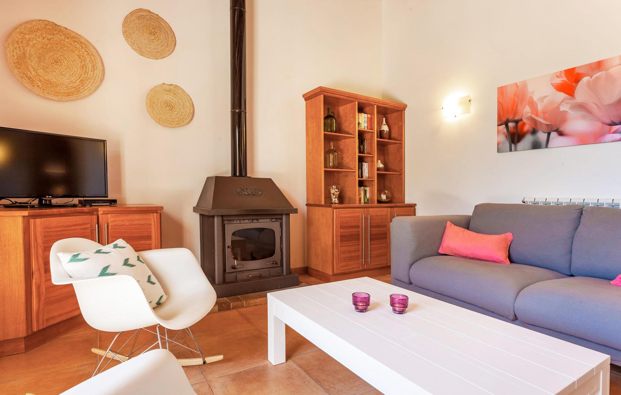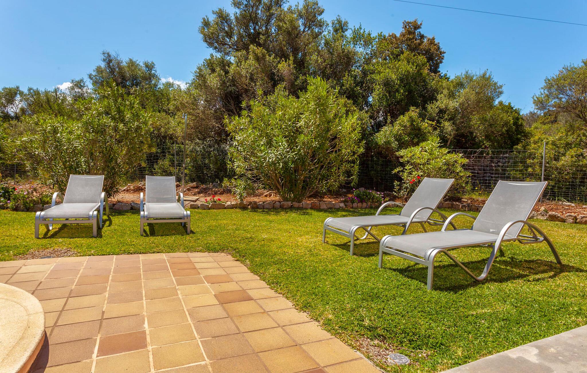Ved jeres ankomst til "Sa Caseta" vil I blive betaget af de idylliske omgivelser med deres betagende udsigt over den charmerende by Artà. Til venstre er der en lille parkeringsplads og en solterrasse med bord og stole, det perfekte sted til en morgenkaffe På højre side fører en anden terrasse til en frodig græsplæne med liggestole, ideel til solbadning i skyggen af gamle træer. buet kant til at køle af på varme sommerdage Indenfor udstråler villaen varme og komfort og har 80 m² moderne boligareal. Den åbne stue har pejs og byder på smukke rammer for hyggelige aftener, mens det fuldt udstyrede køkken med spiseplads Bordet er ideelt til indendørs spisning. Med to hyggelige soveværelser og et rummeligt badeværelse forstærker lyse vægge og høje bjælkelofter den luftige atmosfære. "Sa Caseta" er ofte valgt af par, der ønsker at tilbringe en romantisk ferie og nyde den rolige beliggenhed. Om natten giver det oplyste San Salvador-kloster jeres ferie et magisk præg afsondret beliggenhed på en lille bakker omkring 4 km vest for Artà. Her bor I midt i vild, romantisk natur med ældgamle træer. Cypresser, mandler, baobab og oliventræer præger det blide bakkelandskab. En utrolig vidtrækkende udsigt over byen Artà er et højdepunkt ved dette feriehus. Den smukke, naturlige sandstrand i Cala Torta ligger kun 15 km væk, andre strande er endnu tættere på huset.