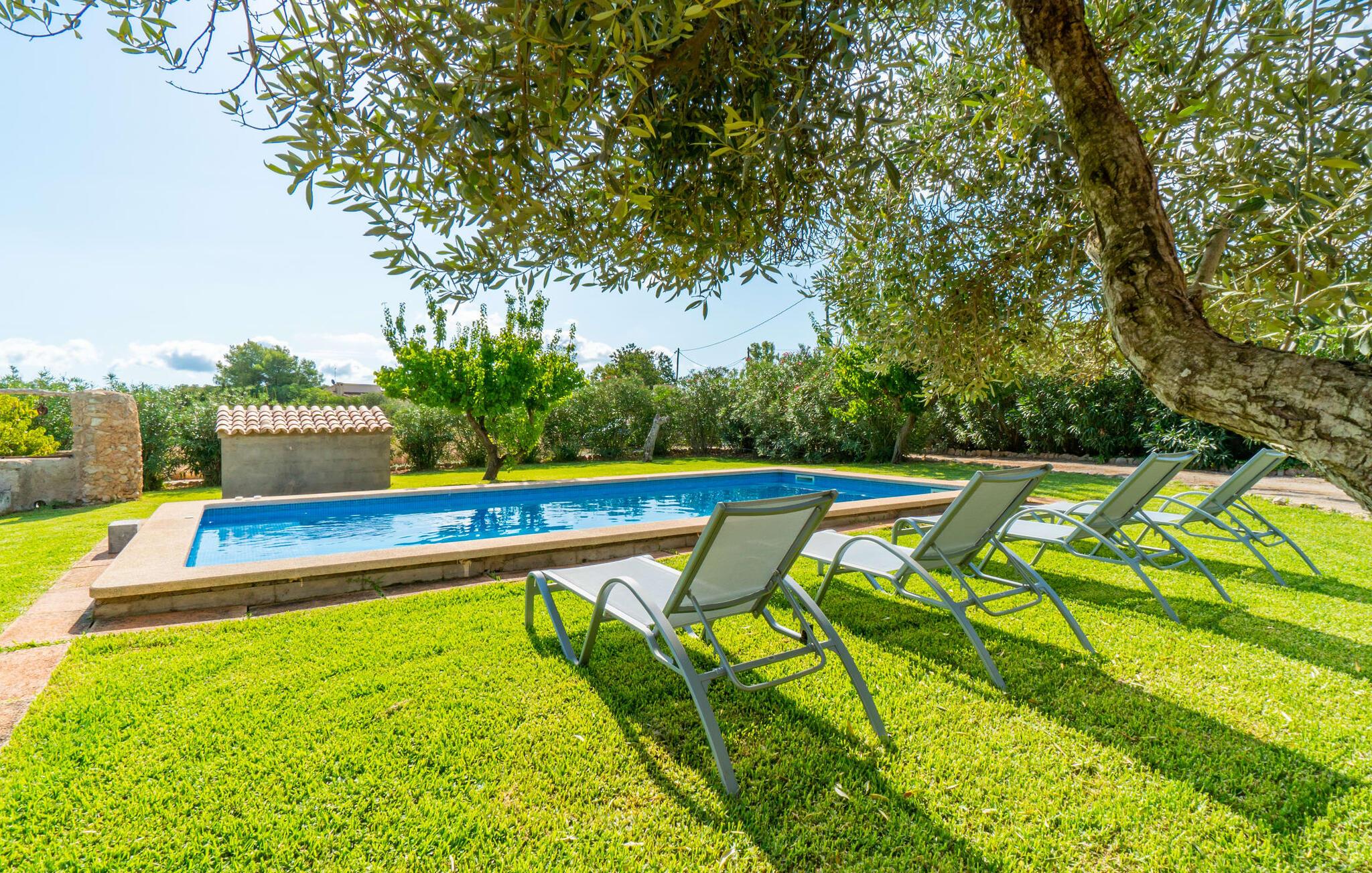Villaen "Sa Clova" byder sine gæster velkommen i en vidunderlig landlig beliggenhed nær Artà og kombinerer forskellige ferieønsker på en absolut tiltalende måde. Ønsker I privatliv og afsondrethed, men værdsætter også den umiddelbare nærhed til godt forbundne byer og vil stadig gerne hurtigt kunne nå forskellige strande? Så er dette feriehus lige noget for jer! Faciliteterne her suppleres af en smagfuld flair, der kendetegner husets ydre og indre. Smukke græsplæner, dekoreret med oliventræer og andre middelhavstræer, omgiver bygningen og inviterer jer til at blive hængende udendørs. Find jeres plads på en af de komfortable liggestole og døs i solen, læs en bog eller nyd blot de maleriske omgivelser. Måske vil I på varme mallorcanske dage gerne gå frem og tilbage mellem jeres yndlingssted og poolen og nyde poolens behagelige forfriskning. I kan ikke kun svømme længder i poolen dekoreret med blå mosaiksten, men også slappe af i det lavvandede spabad med karbad. Der er flere attraktive siddepladser direkte ved huset. I kan slappe af enten direkte under middelhavshimlen eller under bambusloftet, for eksempel på den komfortable polyrattan sofa med en drink eller ved træbordet, mens I spiser sammen. Mens I sidder her, kan I også nyde den smukke udsigt over haven og videre - ren ferie! Opholds-/spiseområdet, der er direkte tilgængeligt fra terrassen, byder jer velkommen med en lyse atmosfære, der imponerer med sin smagfulde indretning og nøje afstemte farver, former og dekorative stykker. Dette er en attraktiv mulighed for indendørs spisning, nydes sammen omkring bordet med de lyse stole. I den anden halvdel af rummet er der en hyggelig sofa, hvor I kan slappe af, hvorfra I kan se tv eller blot kigge ind i den knitrende pejs på kølige aftener. Herfra kan I nå det rummelige køkken gennem en bred bue, som er fuldt udstyret med keramisk kogeplade, ovn, emhætte, stort køleskab, elkedel, opvaskemaskine og kaffemaskine og tilbyder jer de bedste forudsætninger for selvforsyning. Måske har I lyst til at prøve en typisk spansk opskrift og så spise kreationen ved terrassebordet? To enkle og æstetisk tiltalende soveværelser giver en perfekt base for flere siestaer og selvfølgelig jeres nattesøvn. I kan slappe af i kombinationssengene, der måler 0,90 x 1,90 m. To moderne, luksuriøse en-suite badeværelser giver plads nok til alle gæster og har installationer af høj kvalitet. Hvis I gerne vil rejse med et andet par, men værdsætter privatlivets fred, så er dette smukke soveværelse-badeværelseslayout perfekt. Hver tirsdag er der et ugentligt marked i centrum af Artà, som I ikke bør gå glip af. Her finder I regionale kulinariske specialiteter samt smukke mallorcanske kunsthåndværk. På grund af nærheden (ca. 250 m) til motorvejen, der forbinder Artà med Colonia de Sant Pere og Son Serra de Marina, er I ideelt forbundet og kan hurtigt nå forskellige destinationer. De nærliggende hvide sandstrande inviterer jer til at tilbringe lange dage ved havet og betragtes stadig som et insidertip. I Cala Millor (16 km) er der nogle fremragende restauranter og attraktive indkøbsmuligheder. Den imponerende villa "Sa Clova" præsenterer sig selv som et venligt hjem for fire personer, der gerne vil tilbringe deres tid i landlige omgivelser. Det ligger kun 3 km vest for Artà og er omgivet af en stor grund. Det tager kun omkring 20 minutter i bil til Cala Ratjada med sin smukke strand og havnepromenade; 15 minutter til Colonia de Sant Pere. Smukke strande som Cala Moll og Cala Agulla ligger også kun henholdsvis 13 og 14 km væk.
