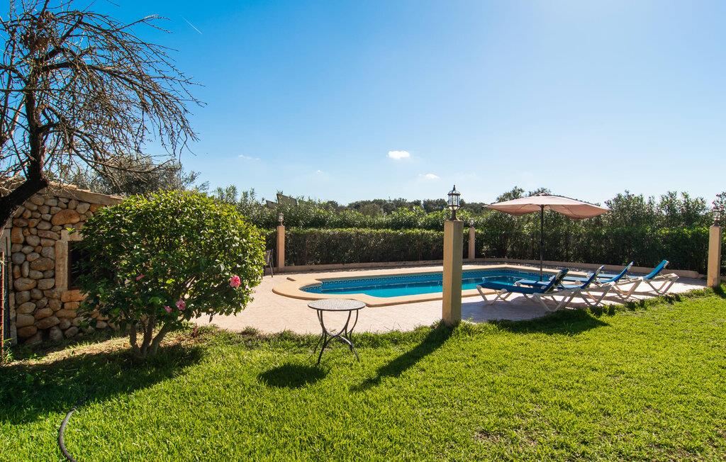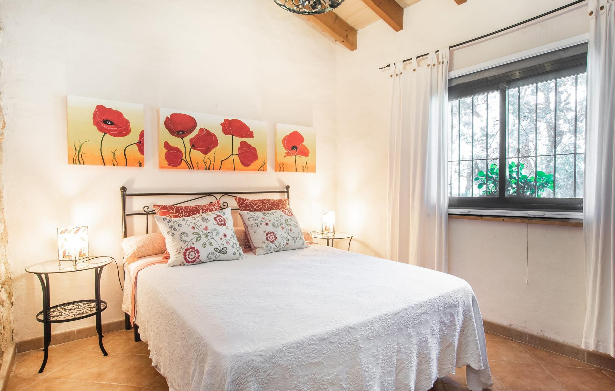 Omgivelserne omkring denne bondegård på Mallorca er særdeles indbydende og hyggelige takket være den frodige middelhavsvegetation. Gamle træer understreger denne flair. Poolområdet er omgivet af oleandere og grønne hække, så I kan føle jer særligt privat her. En romersk trappe giver nem adgang til den 8 m lange pool. Liggestolene på den omkringliggende terrasse er også komfortable. I kan placere dem direkte under middelhavshimlen eller under en parasol og slappe af derfra. Der er også et opholdsområde og en praktisk udendørs bruser. For dem, der ønsker at slappe af i skyggen, er der forskellige muligheder på terrassen lige ved siden af huset: verandagyngen, loungen, spisebordet. Dette smukt dekorerede område kan bruges som udendørs stue på varme dage. En muret kulgrill er tilgængelig til solide grillaftener. I lokalerne finder de små ikke kun masser af plads at løbe rundt i, men også en lille legeplads. Terrassen fører direkte ind i den hyggelige opholds- og spisestue med pejs. Terracotta-fliser, naturstenselementer og synlige bjælkelofter indrammer de typiske mallorcanske møbler og tilbehør. Det er indlysende, at ejerne værdsætter at bevare den klassiske charme af et landsted. Det rustikke køkken er integreret i rummet og er fuldt udstyret med alt hvad I behøver til selvforplejning på ferien. To soveværelser med dobbeltsenge, et med dobbeltseng og et med to enkeltsenge, lover en afslappende søvn. Et brusebad fuldender udstyret på denne bondegård i det nordlige Mallorca. Vi anbefaler især stuehuset "Sa Figuera Blanca" til et eller to par eller en lille familie. Dette meget hyggelige bondehus ligger på en meget stor grund ca. 2 km vest for Búger på det nordlige Mallorca. For at handle kan I blot køre ind til byen, som byder på små supermarkeder samt barer, restauranter mv. Strandene i nord, især dem i den lange bugt Alcúdia, kan nås efter omkring 20 km.