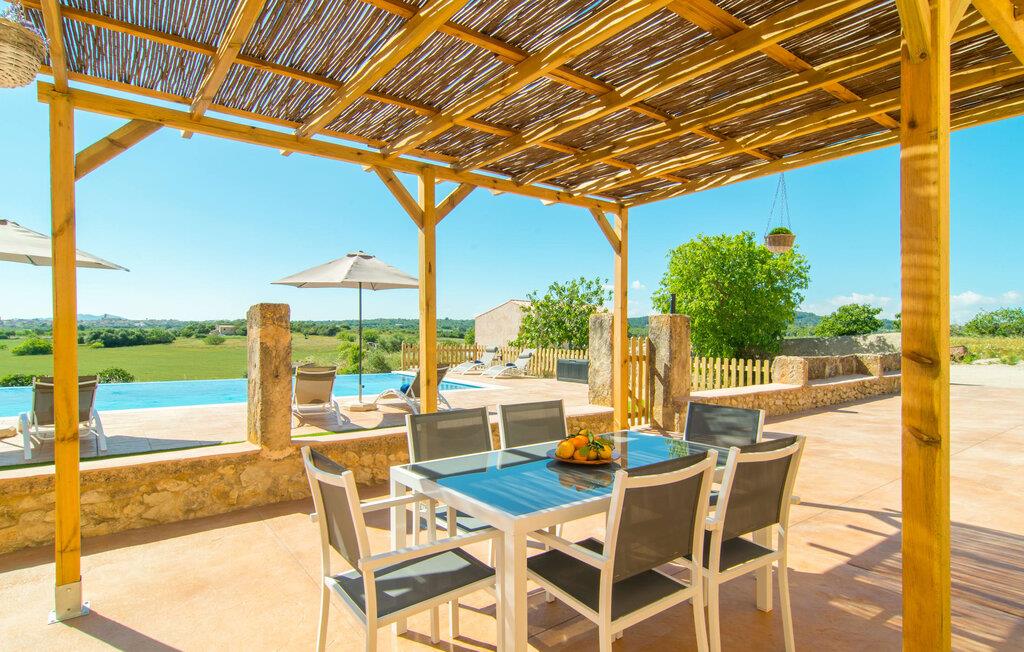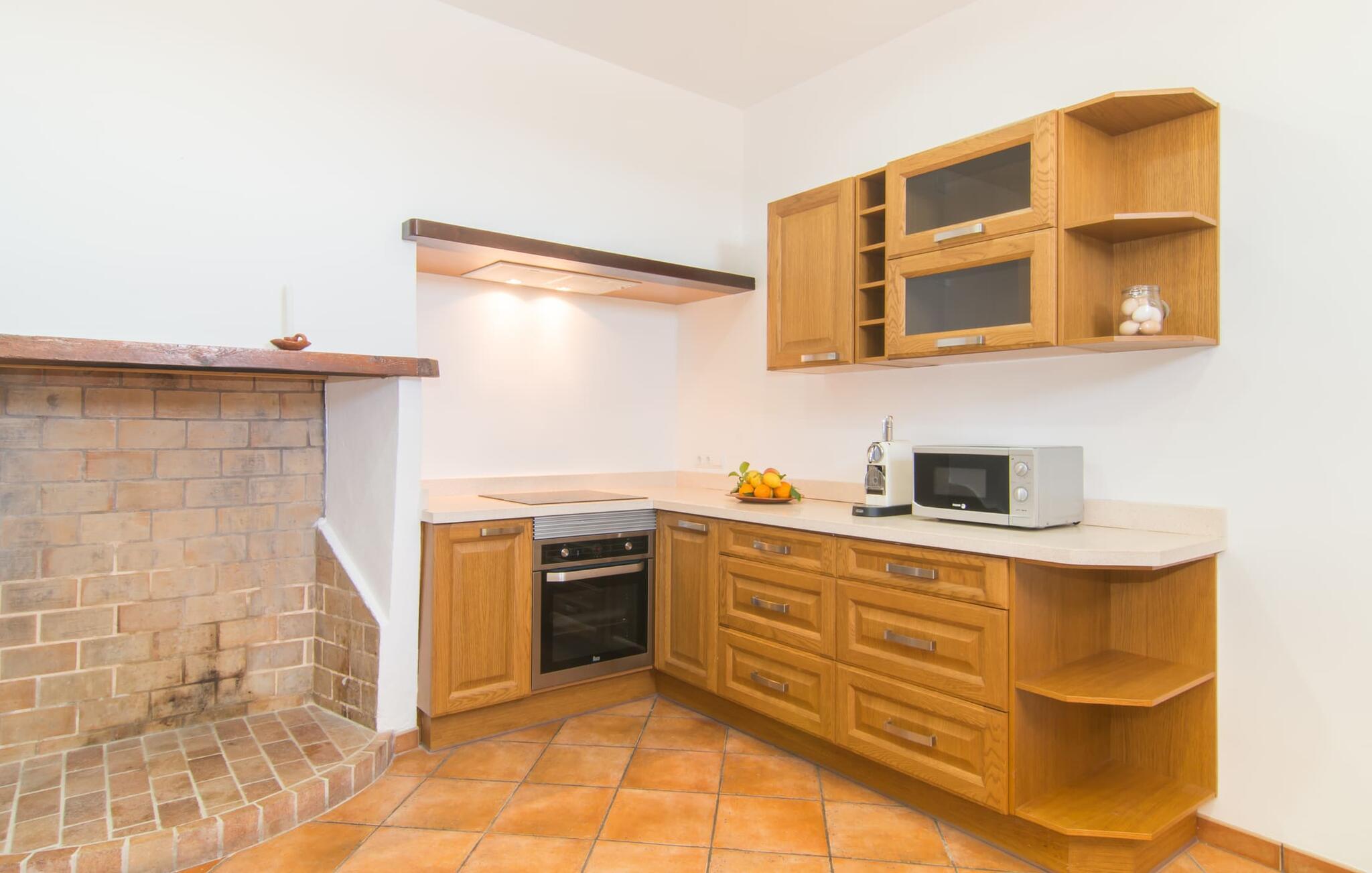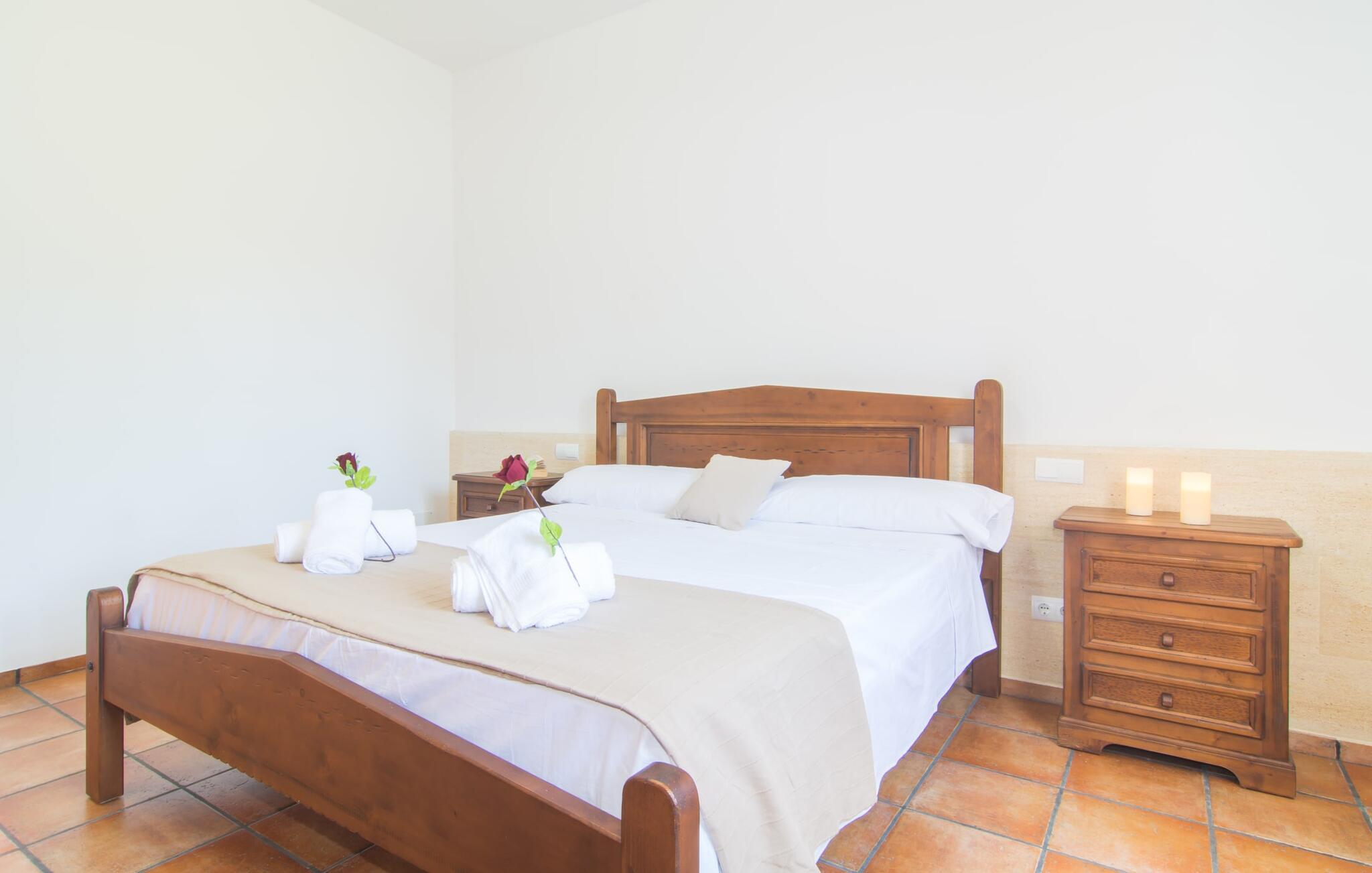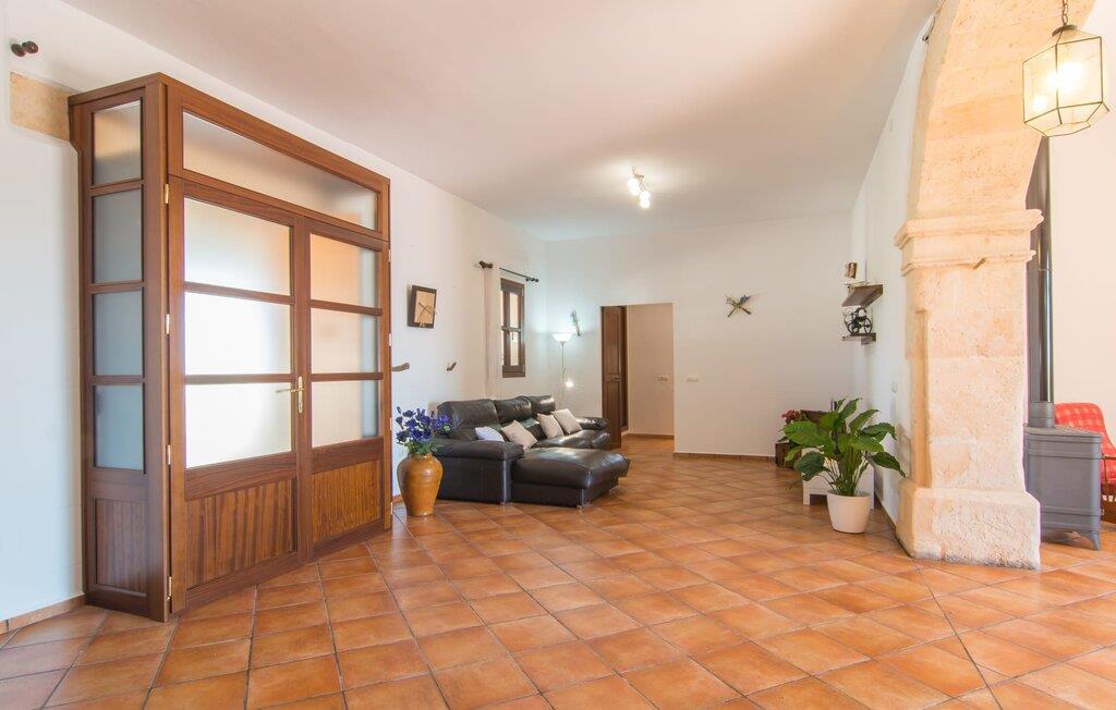 Som noget fra en billedbog hæver "Sa Font Authentic" sig over sletten i trekanten mellem Ariany, Petra og Sineu. Det byder på en betagende udsigt over det omkringliggende landskab - jeres ferie begynder i det øjeblik, I ankommer og får jeres første glimt af den fantastiske natur, der omgiver jer. Ejendommen er dejlig rummelig, men byder samtidig på idylliske områder lige ved siden af huset, der blot udstråler en følelse af hygge, så alle, der holder af meget plads omkring sig, bliver lige så tilfredse som dem, der elsker en hyggelig rede. atmosfære. Den 10 meter lange infinity-pool er den største udendørsattraktion. Bygget i 2017, er det dekoreret med blå mosaiksten og har en trappet indgang og en dyb ende. Mens I glider ubesværet hen over poolen, vil I også nyde en betagende udsigt, der normalt ikke er tilgængelig, når I svømmer. Lignende panoramaoplevelser kan nydes fra udendørsbruseren og på terrassearealerne på begge etager. Om I nyder udsigten fra liggestolen eller spisebordet, direkte under den mallorcanske sol eller under en markise - I bestemmer! Og der er også masser af pusterum indeni. Selvom I rejser med seks personer og yderligere to babyer, vil I finde plads nok til alle på den nederste etage, hvor I bor, som I ikke vil gå glip af, især på ferien. Stedets luftige indre charme er kendetegnet ved lyse vægge, terracotta gulvfliser og bevidst reserveret møblering og dekoration. Stue og spisestue er forbundet med en imponerende buegang og det fuldt udstyrede køkken med delvist frilagte murstenselementer skaber en behagelig kølig atmosfære, som kommer til udtryk i det luksuriøse køle/fryseskab. Brændeovnen giver sammen med nogle smukke ternepolstrede stole endnu en meget vellykket kontrast. Med så meget fred og ro omkring jer, vil I sove skønt i de to soveværelser med dobbeltsenge og soveværelset med to enkeltsenge. Der er plads nok til brusere mm i de to eksisterende badeværelser med dagslys, hvoraf det ene er bekvemt placeret i annekset ved poolen, hvor der også er en anden stor spiseplads, så når vejret er godt kan I slappe af her og nyd at feste indendørs og udendørs. Enhver, der holder ferie her, nyder fremragende forbindelser til den smukke mallorcanske by Petra, mens huset samtidig er omgivet af landskabets ro. Denne del af øen er stadig temmelig stille, med en del villaturisme og ugentlige markeder. For længere gåture gennem byen kan I tage til Manacor, omkring 15 km væk. Den historiske bymidte med sine mange små gader inviterer jer til at shoppe eller bare slappe af. Det lille samfund Sant Joan ligger mindre end 10 km væk og er hjemsted for den store gamle kirke Sant Joan Baptista, som har et storslået interiør. Flere sandstrande kan også hurtigt nås: den brede og ubebyggede naturstrand Son Serra de Marina ligger cirka 25 minutter nordøst, og i øst og sydøst er der flere smukke små bugter, de såkaldte Calas de Mallorca. Den vidunderligt luftige villa "Sa Font Authentic" er perfekt placeret og tilbyder en utrolig fjern udsigt. Udsigten strækker sig så langt som til Petra, kun 1,6 km væk, og de charmerende små gader og gyldenbrune stenhuse udgør en fremragende kulisse for jeres daglige ærinder. De smukke sandstrande i Alcúdia-bugten samt naturlige strande længere mod øst, herunder Cala Varques, kan nemt nås med lejebil.
