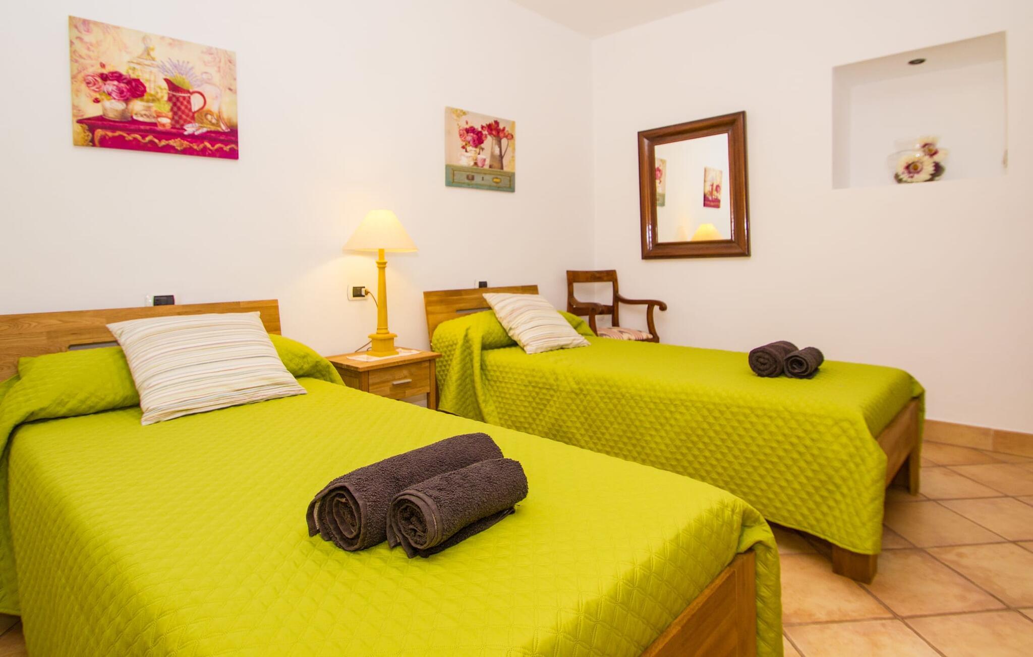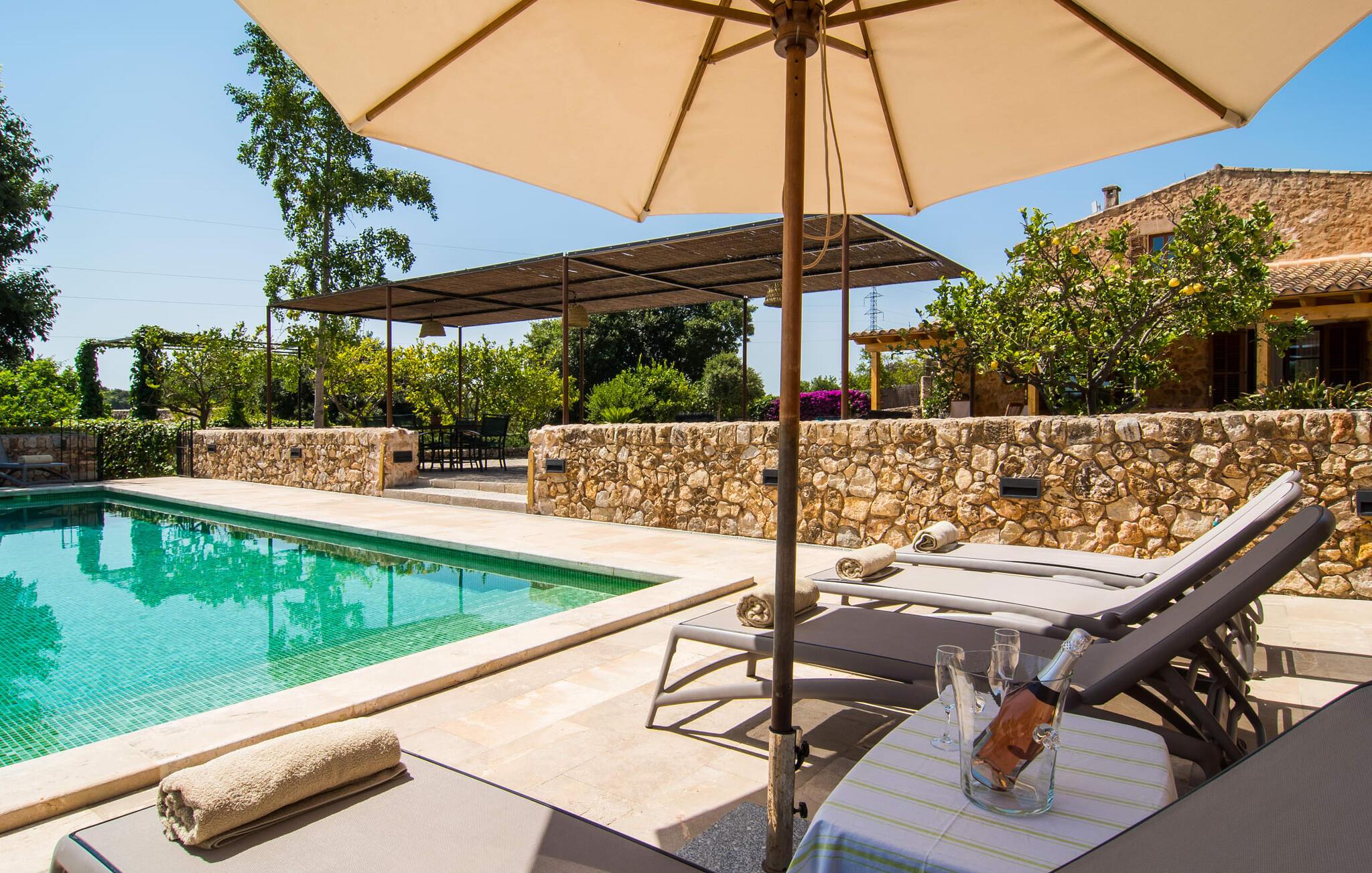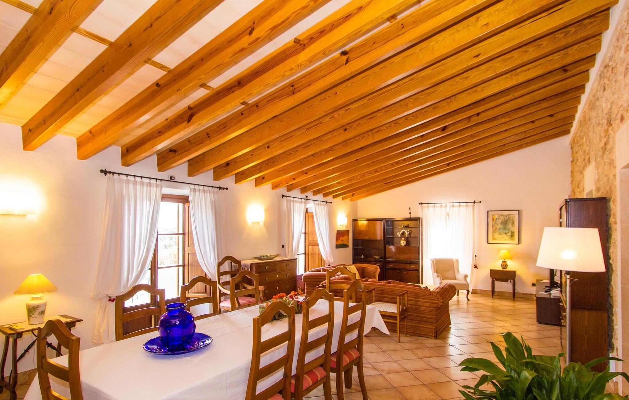 Beliggende på en stille bjergskråning tilbyder den smukt restaurerede finca "Sa Mata Grossa" en betagende udsigt over den anlagte ejendom og det omkringliggende landskab. Villaens arkitektoniske design blander sig problemfrit med omgivelserne og har natursten, bambusmarkiser og flere udendørs siddepladser. Den børnesikre saltvandspool med generøs trinadgang er omgivet af frodige grønne områder og suppleres af en solterrasse med liggestole samt et udendørs køkken og grillplads, perfekt til gruppesammenkomster. Indvendigt åbner det rummelige køkken med stort spisebord ud i en hyggelig stue med antik charme. Villaen har fem komfortable soveværelser, fire badeværelser og aircondition. Med adskillige områder til afslapning og underholdende, både indendørs og udendørs, er denne villa ideel til familier eller grupper, der søger privatliv, komfort og et strejf af tradition. Denne villa ligger vidunderligt afsondret i den nordlige del af øen mellem Búger, med sine små supermarjets, barer og restauranter, og Sa Pobla. Om søndagen kan I besøge det ugentlige marked i Sa Pobla. De populære strande i Alcúdia-bugten, herunder Can Picafort og Platja de Muro, ligger kun en kort køretur derfra. Bemærk venligst, at denne ejendom ikke accepterer ungdomsgrupper eller polterabender. En ungdomsgruppe på denne ejendom består af personer under 25 år. Book ikke denne ejendom, hvis I er en ungdomsgruppe eller polterabend, da jeres reservation vil blive afvist, når den er booket, hvilket kan være ved ankomsten til ejendommen eller under jeres ophold, og I vil ikke modtage en refusion.