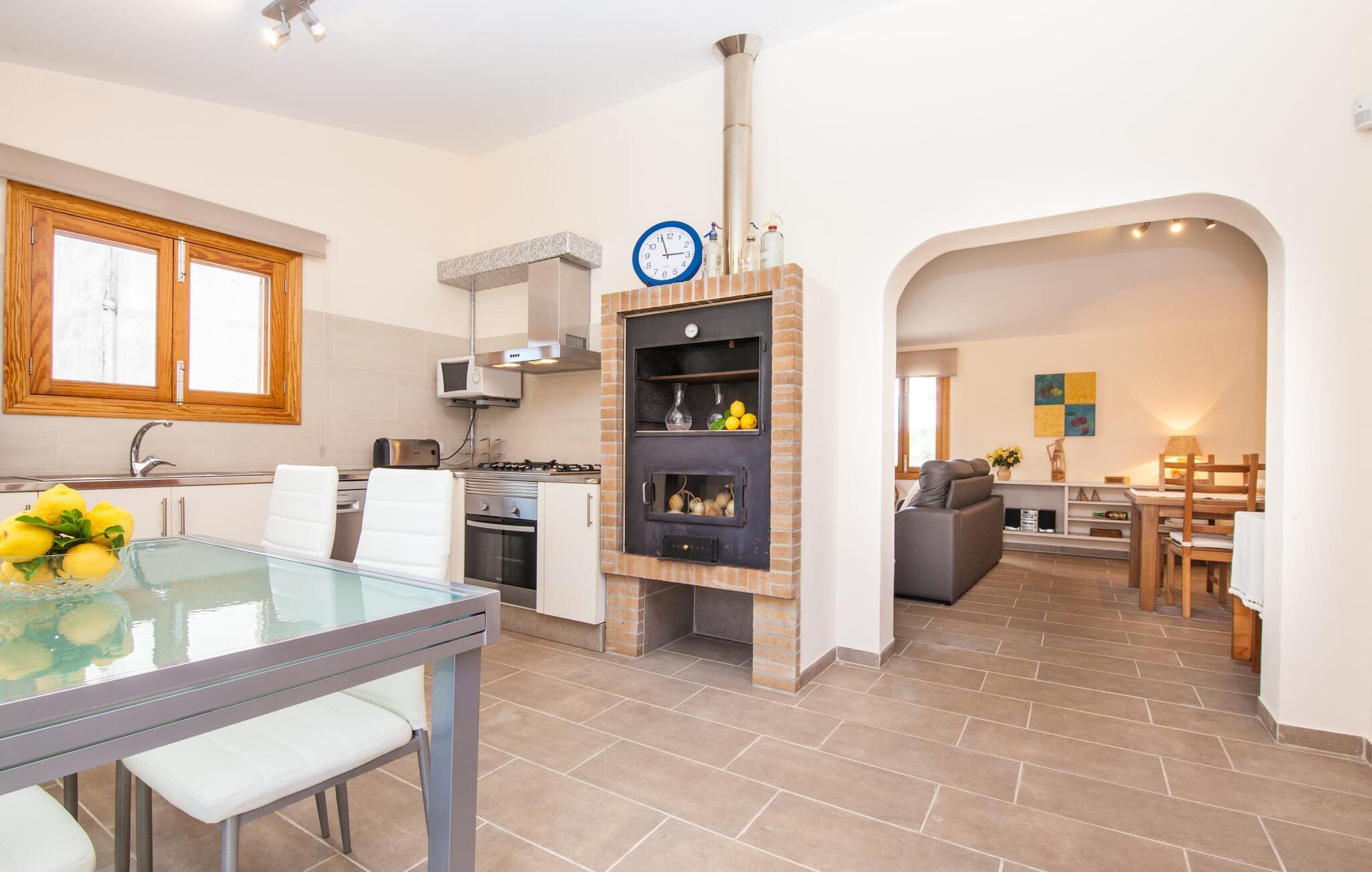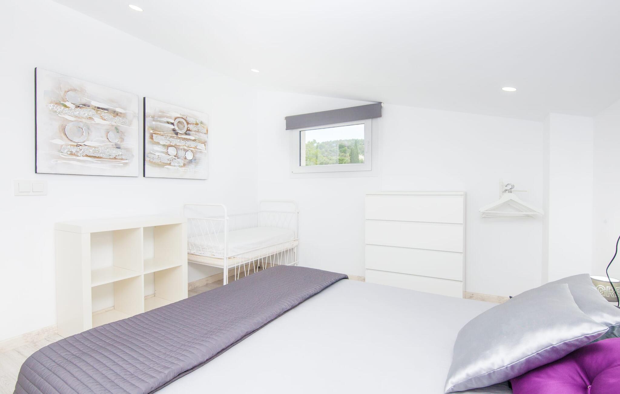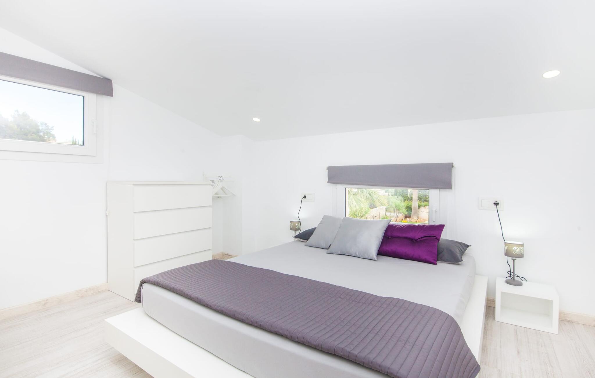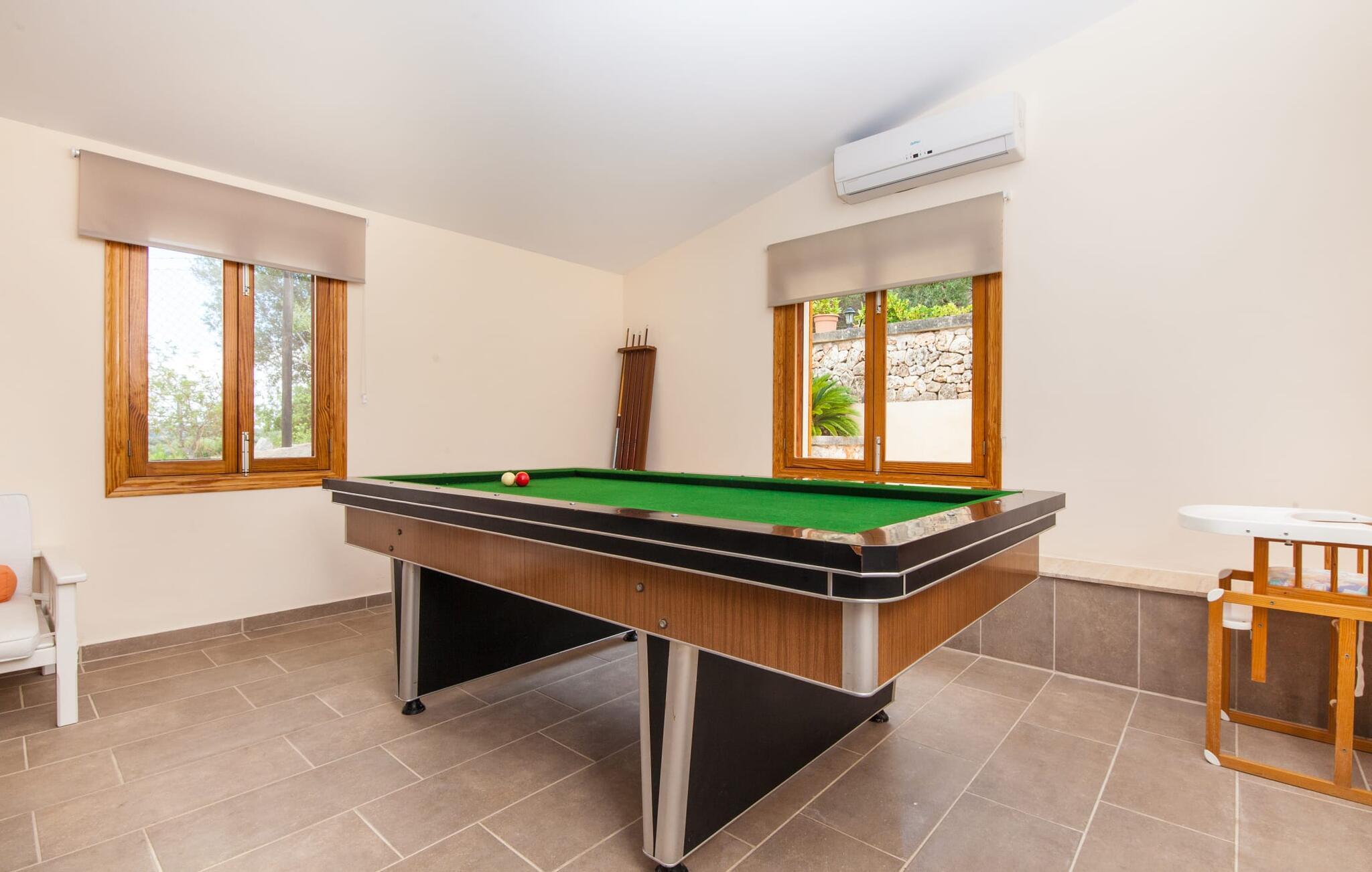 For dem af jer, der foretrækker det forrevne bjerglandskab og traditionelle landsbyer på Mallorca, er denne villa perfekt placeret: vandreområdet omkring Llucs helligdom er let at nå, der er god udsigt over den slående gotiske kirke, der har udsigt over Selva, og biler, der venter på parkeringspladsen, som ligger lidt under jorden, er altid klar til at springe i gang. Med jeres bagage i hånden fører en bred trappe jer direkte op til den velholdte pool. Dette danner den "gyldne middelvej" - den perfekte position mellem de to bygninger, der udgør ejendommen. Her finder I klapstole og liggestole til et lille pusterum i skyggen. Under soveafdelingens rummelige flade tag kan I (og jeres familie) nemt finde jer tilpas på den velpolstrede rattansofa, med ryggen beskyttet mod vinden og udsigt til det frodige grønne område foran jer. Grillen kan fyres sikkert op over i udekøkkenet. Med sine knudrede oliventræer, plantekasser, bougainvillea og chamaerops er haven virkelig en fryd for øjet. Det giver også masser af plads til hyggelige aftener udendørs, et roligt tilflugtssted med en god bog og masser af bordtennisspil. En vigtig bemærkning til dem med børn: Det dekorative metaltårn på stedet er en rest af minedrift og ikke et klatrestativ. I mellemtiden kan I spille et spil billard indendørs, som tilbyder et legende alternativ til en aften med fjernsyn foran pejsen. Takket være poolbordets placering kan konkurrencer foregå langt ud på natten uden frygt for at forstyrre andres søvn. Det specielle ved denne villa er, at den består af to helt adskilte områder: Stuen med gennemgang til det moderne køkken gør det at grille udendørs til et overdækket eventyr. Overfor finder I ejendomsområdet med de tre puristisk designede soveværelser. Bag loungen fører en glasdør til en trappe, som igen fører jer ind i et forværelse med siddepladser. Bagved venter to dobbeltsenge og to enkeltsenge på at blive redt op. Hver af sengene vil med garanti få jer til at drømme helt i hvidt. Tre komfortable badeværelser med vaskemaskiner og brusere eller brusekar kan deles mellem jer - et i højre og et i husets venstre fløj samt et udendørs badeværelse, så I ikke skal vente længe, hvis I har brug for at høre bjergene kalde jeres navn en morgen. Selva er (stadig) et sted med en masse karakter! Hvis I har lyst til at shoppe, vil I være tæt nok på centrum til enten at gå ind til byen eller tage den lille forbindelsesvej, der fører dertil. Vejene snor sig op ad bakke og vejene snor sig ned ad bakke - en fantastisk måde at varme musklerne op og forberede sig på længere ture. Med urtelikør, brød og olivenolie i rygsækken er det næsten som en træning i sig selv. Det gælder uanset om I i første omgang blot vil valfarte til Sankt Lawrence Kirke, hvorfra I kan nyde en spektakulær udsigt over Artà og Alcúdia-bugten, eller om I tager den 12 km lange tur herfra Caimari til helligdommen Lluc. Når det kommer til væsker til jeres rejse, bør jeres første anløbshavn være en smagning af de varer, der tilbydes i Binissalem, centrum for mallorcansk vinproduktion. I Inca, øens shoppingparadis, er der også et rustikt kælderhus – og nok restauranter til at give byen et solidt fundament. Men hvis I synes, at I smelter i varmen, skal I bare starte med en tur til Playa de Muro, 30 km væk. I udkanten af den charmerende by Selva, kun 5 km nord for Inca, byder den sommerlige "Sa Mina de San Cayetano" på optimale betingelser for en vellykket (vandre)ferie og fordybelse i mallorcinsk landsbyliv. Ud over supermarkedet Aprop, kun 1 km væk, er der flere restauranter og cykeludlejning i byen. Serra del Norte med det berømte Lluc-kloster ligger kun 14 km væk, mens Badia d'Alcúdia ligger omkring 30 km fra villaen; En dag med svømning i Playa de Muro eller i Can Picafort er en fantastisk måde at runde jeres ferie af på en forfriskende måde. Bemærk venligst, at denne ejendom ikke accepterer ungdomsgrupper eller polterabender. En ungdomsgruppe på denne ejendom består af personer under 30 år. Book ikke denne ejendom, hvis I er en ungdomsgruppe eller en polterabendgruppe, da jeres reservation vil blive afvist, når den er booket, hvilket også kan være tilfældet ved ankomst til ejendommen eller under jeres ophold, og I vil ikke modtage en refusion.