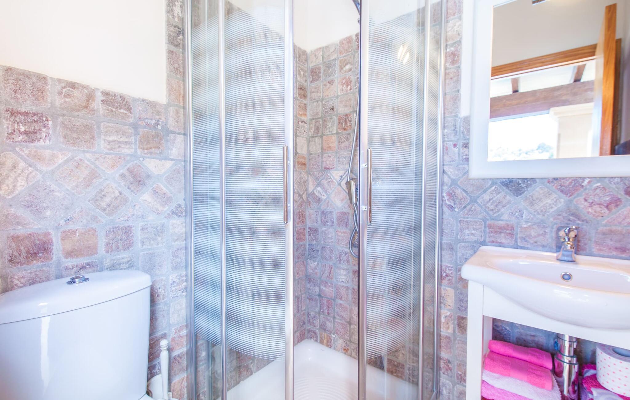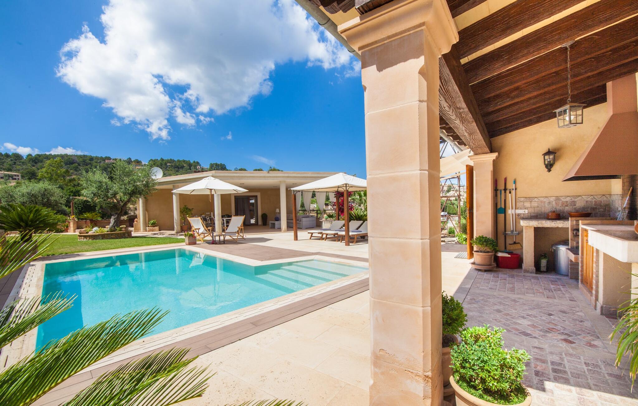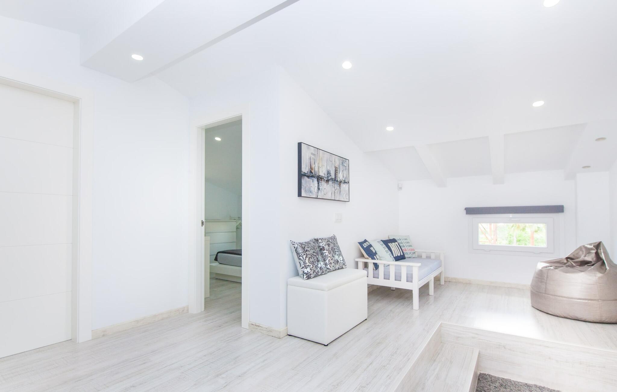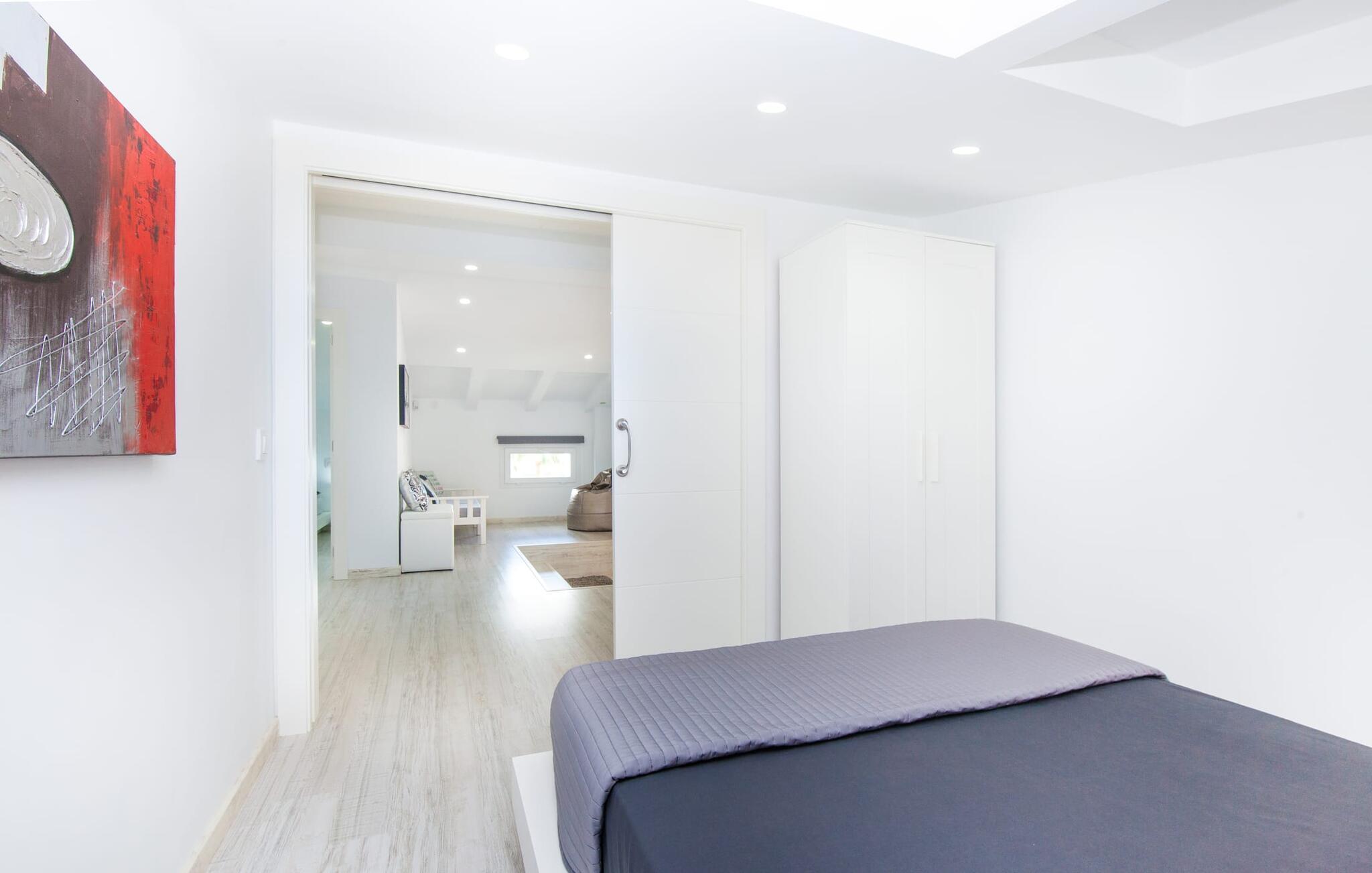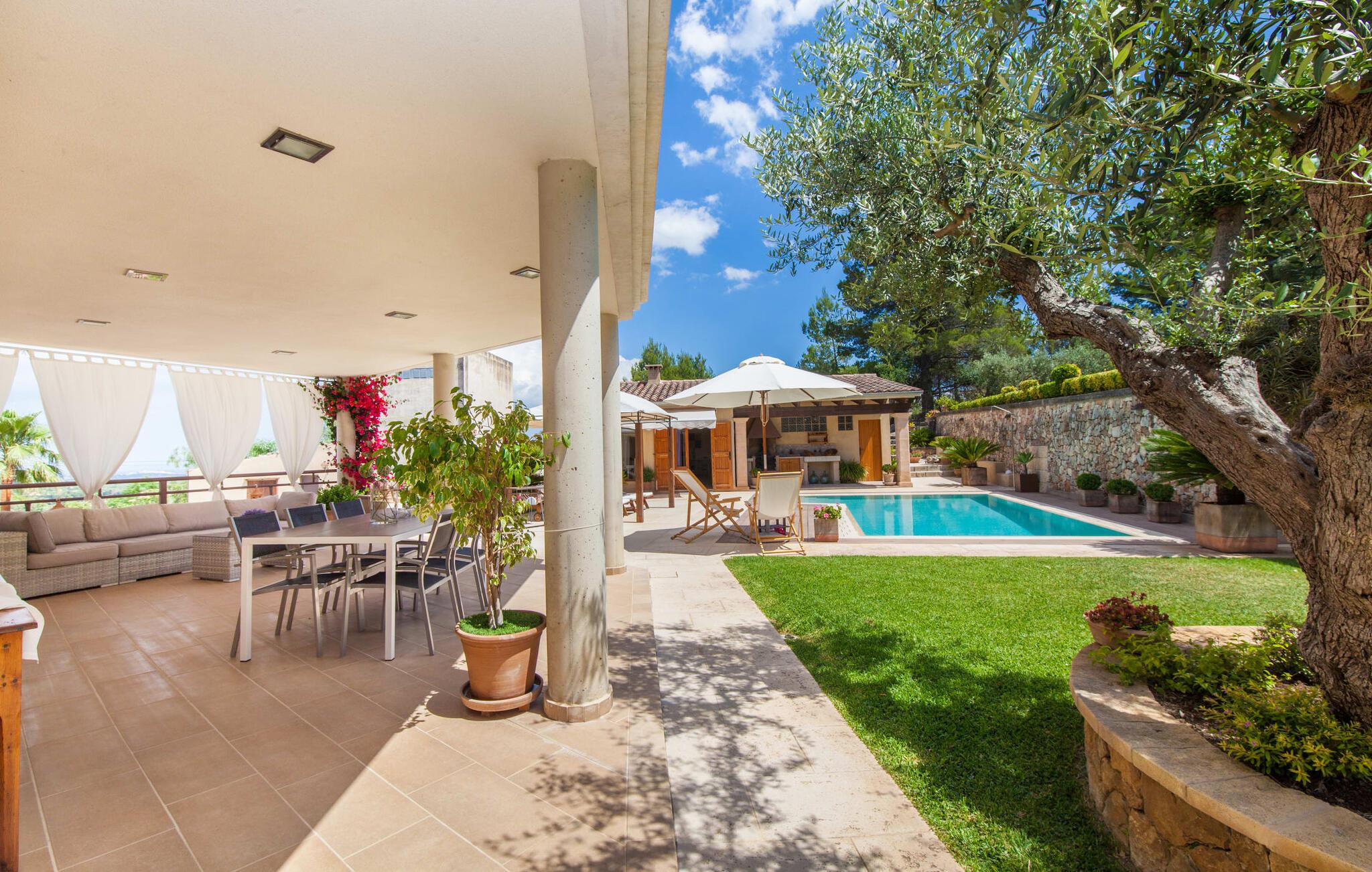 For dem af jer, der foretrækker det forrevne bjerglandskab og traditionelle landsbyer på Mallorca, er denne villa perfekt placeret: vandreområdet omkring Llucs helligdom er let at nå, der er god udsigt over den slående gotiske kirke, der har udsigt over Selva, og biler, der venter på parkeringspladsen, som ligger lidt under jorden, er altid klar til at springe i gang. Med jeres bagage i hånden fører en bred trappe jer direkte op til den velholdte pool. Dette danner den "gyldne middelvej" - den perfekte position mellem de to bygninger, der udgør ejendommen. Her finder I klapstole og liggestole til et lille pusterum i skyggen. Under soveafdelingens rummelige flade tag kan I (og jeres familie) nemt finde jer tilpas på den velpolstrede rattansofa, med ryggen beskyttet mod vinden og udsigt til det frodige grønne område foran jer. Grillen kan fyres sikkert op over i udekøkkenet. Med sine knudrede oliventræer, plantekasser, bougainvillea og chamaerops er haven virkelig en fryd for øjet. Det giver også masser af plads til hyggelige aftener udendørs, et roligt tilflugtssted med en god bog og masser af bordtennisspil. En vigtig bemærkning til dem med børn: Det dekorative metaltårn på stedet er en rest af minedrift og ikke et klatrestativ. I mellemtiden kan I spille et spil billard indendørs, som tilbyder et legende alternativ til en aften med fjernsyn foran pejsen. Takket være poolbordets placering kan konkurrencer foregå langt ud på natten uden frygt for at forstyrre andres søvn. Det specielle ved denne villa er, at den består af to helt adskilte områder: Stuen med gennemgang til det moderne køkken gør det at grille udendørs til et overdækket eventyr. Overfor finder I ejendomsområdet med de tre puristisk designede soveværelser. Bag loungen fører en glasdør til en trappe, som igen fører jer ind i et forværelse med siddepladser. Bagved venter to dobbeltsenge og to enkeltsenge på at blive redt op. Hver af sengene vil med garanti få jer til at drømme helt i hvidt. Tre komfortable badeværelser med vaskemaskiner og brusere eller brusekar kan deles mellem jer - et i højre og et i husets venstre fløj samt et udendørs badeværelse, så I ikke skal vente længe, hvis I har brug for at høre bjergene kalde jeres navn en morgen. Selva er (stadig) et sted med en masse karakter! Hvis I har lyst til at shoppe, vil I være tæt nok på centrum til enten at gå ind til byen eller tage den lille forbindelsesvej, der fører dertil. Vejene snor sig op ad bakke og vejene snor sig ned ad bakke - en fantastisk måde at varme musklerne op og forberede sig på længere ture. Med urtelikør, brød og olivenolie i rygsækken er det næsten som en træning i sig selv. Det gælder uanset om I i første omgang blot vil valfarte til Sankt Lawrence Kirke, hvorfra I kan nyde en spektakulær udsigt over Artà og Alcúdia-bugten, eller om I tager den 12 km lange tur herfra Caimari til helligdommen Lluc. Når det kommer til væsker til jeres rejse, bør jeres første anløbshavn være en smagning af de varer, der tilbydes i Binissalem, centrum for mallorcansk vinproduktion. I Inca, øens shoppingparadis, er der også et rustikt kælderhus – og nok restauranter til at give byen et solidt fundament. Men hvis I synes, at I smelter i varmen, skal I bare starte med en tur til Playa de Muro, 30 km væk. I udkanten af den charmerende by Selva, kun 5 km nord for Inca, byder den sommerlige "Sa Mina de San Cayetano" på optimale betingelser for en vellykket (vandre)ferie og fordybelse i mallorcinsk landsbyliv. Ud over supermarkedet Aprop, kun 1 km væk, er der flere restauranter og cykeludlejning i byen. Serra del Norte med det berømte Lluc-kloster ligger kun 14 km væk, mens Badia d'Alcúdia ligger omkring 30 km fra villaen; En dag med svømning i Playa de Muro eller i Can Picafort er en fantastisk måde at runde jeres ferie af på en forfriskende måde. Bemærk venligst, at denne ejendom ikke accepterer ungdomsgrupper eller polterabender. En ungdomsgruppe på denne ejendom består af personer under 30 år. Book ikke denne ejendom, hvis I er en ungdomsgruppe eller en polterabendgruppe, da jeres reservation vil blive afvist, når den er booket, hvilket også kan være tilfældet ved ankomst til ejendommen eller under jeres ophold, og I vil ikke modtage en refusion.
