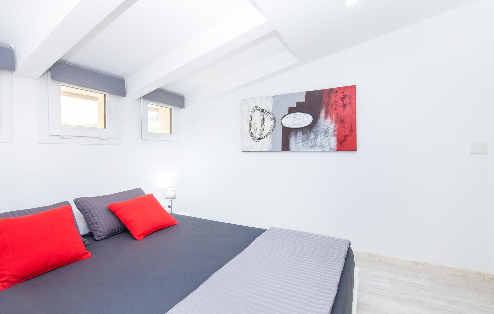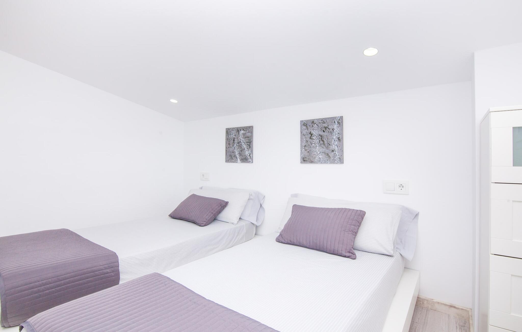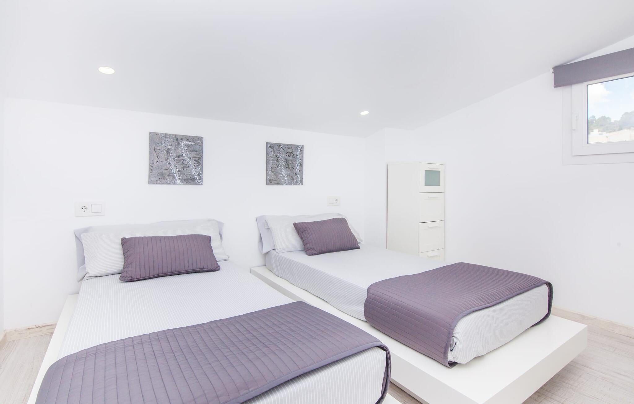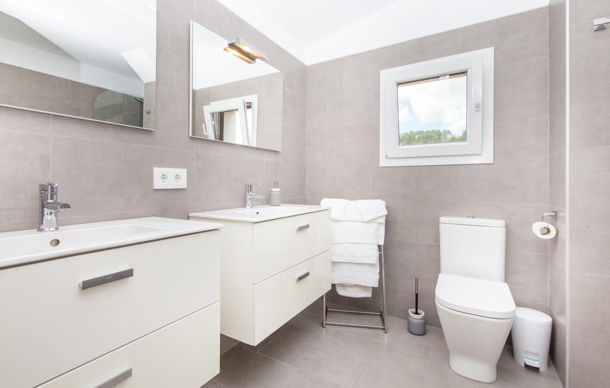 For dem af jer, der foretrækker det forrevne bjerglandskab og traditionelle landsbyer på Mallorca, er denne villa perfekt placeret: vandreområdet omkring Llucs helligdom er let at nå, der er god udsigt over den slående gotiske kirke, der har udsigt over Selva, og biler, der venter på parkeringspladsen, som ligger lidt under jorden, er altid klar til at springe i gang. Med jeres bagage i hånden fører en bred trappe jer direkte op til den velholdte pool. Dette danner den "gyldne middelvej" - den perfekte position mellem de to bygninger, der udgør ejendommen. Her finder I klapstole og liggestole til et lille pusterum i skyggen. Under soveafdelingens rummelige flade tag kan I (og jeres familie) nemt finde jer tilpas på den velpolstrede rattansofa, med ryggen beskyttet mod vinden og udsigt til det frodige grønne område foran jer. Grillen kan fyres sikkert op over i udekøkkenet. Med sine knudrede oliventræer, plantekasser, bougainvillea og chamaerops er haven virkelig en fryd for øjet. Det giver også masser af plads til hyggelige aftener udendørs, et roligt tilflugtssted med en god bog og masser af bordtennisspil. En vigtig bemærkning til dem med børn: Det dekorative metaltårn på stedet er en rest af minedrift og ikke et klatrestativ. I mellemtiden kan I spille et spil billard indendørs, som tilbyder et legende alternativ til en aften med fjernsyn foran pejsen. Takket være poolbordets placering kan konkurrencer foregå langt ud på natten uden frygt for at forstyrre andres søvn. Det specielle ved denne villa er, at den består af to helt adskilte områder: Stuen med gennemgang til det moderne køkken gør det at grille udendørs til et overdækket eventyr. Overfor finder I ejendomsområdet med de tre puristisk designede soveværelser. Bag loungen fører en glasdør til en trappe, som igen fører jer ind i et forværelse med siddepladser. Bagved venter to dobbeltsenge og to enkeltsenge på at blive redt op. Hver af sengene vil med garanti få jer til at drømme helt i hvidt. Tre komfortable badeværelser med vaskemaskiner og brusere eller brusekar kan deles mellem jer - et i højre og et i husets venstre fløj samt et udendørs badeværelse, så I ikke skal vente længe, hvis I har brug for at høre bjergene kalde jeres navn en morgen. Selva er (stadig) et sted med en masse karakter! Hvis I har lyst til at shoppe, vil I være tæt nok på centrum til enten at gå ind til byen eller tage den lille forbindelsesvej, der fører dertil. Vejene snor sig op ad bakke og vejene snor sig ned ad bakke - en fantastisk måde at varme musklerne op og forberede sig på længere ture. Med urtelikør, brød og olivenolie i rygsækken er det næsten som en træning i sig selv. Det gælder uanset om I i første omgang blot vil valfarte til Sankt Lawrence Kirke, hvorfra I kan nyde en spektakulær udsigt over Artà og Alcúdia-bugten, eller om I tager den 12 km lange tur herfra Caimari til helligdommen Lluc. Når det kommer til væsker til jeres rejse, bør jeres første anløbshavn være en smagning af de varer, der tilbydes i Binissalem, centrum for mallorcansk vinproduktion. I Inca, øens shoppingparadis, er der også et rustikt kælderhus – og nok restauranter til at give byen et solidt fundament. Men hvis I synes, at I smelter i varmen, skal I bare starte med en tur til Playa de Muro, 30 km væk. I udkanten af den charmerende by Selva, kun 5 km nord for Inca, byder den sommerlige "Sa Mina de San Cayetano" på optimale betingelser for en vellykket (vandre)ferie og fordybelse i mallorcinsk landsbyliv. Ud over supermarkedet Aprop, kun 1 km væk, er der flere restauranter og cykeludlejning i byen. Serra del Norte med det berømte Lluc-kloster ligger kun 14 km væk, mens Badia d'Alcúdia ligger omkring 30 km fra villaen; En dag med svømning i Playa de Muro eller i Can Picafort er en fantastisk måde at runde jeres ferie af på en forfriskende måde. Bemærk venligst, at denne ejendom ikke accepterer ungdomsgrupper eller polterabender. En ungdomsgruppe på denne ejendom består af personer under 30 år. Book ikke denne ejendom, hvis I er en ungdomsgruppe eller en polterabendgruppe, da jeres reservation vil blive afvist, når den er booket, hvilket også kan være tilfældet ved ankomst til ejendommen eller under jeres ophold, og I vil ikke modtage en refusion.