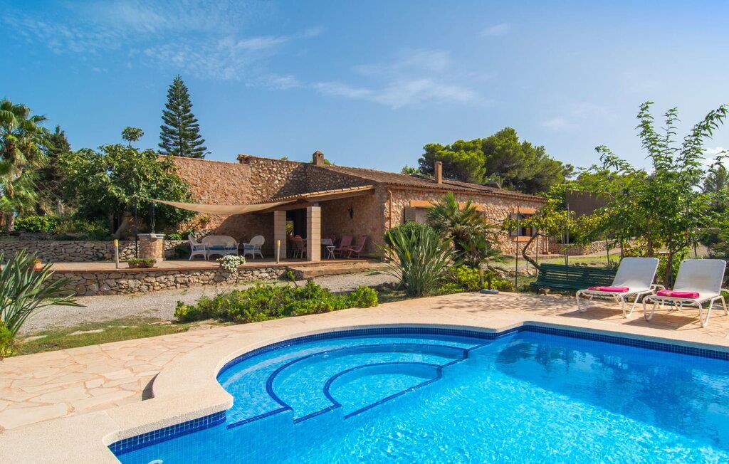 Denne hyggelige, absolut familievenlige villa "Sa Plana Port Nou" ligger i det smukke landskab på Mallorcas nordøstkyst, kun omkring 200 m fra den fristende sandstrand Es Port Verd. Den cirka 6.000 m² store ejendom ligger mellem bugterne Cala Bona og Costa de los Pinos, så der blæser altid en let havbrise ind i næsen på jer. På ydersiden af huset er der en overdækket og møbleret terrasse, som munder ud i poolområdet, i midten af dette ligger den 11,5 m lange pool, som kan tilgås via romerske trappetrin. Selvom havet næsten er lige uden for døren, vil I opleve, at især børn af og til vil bede om en dag ved poolen. Det er meget indbydende her, især når der skal grilles med hele holdet om aftenen. For at slappe af, find et ideelt sted til jeres liggestol udendørs eller under taget og nyd Middelhavets forfriskende lys. Vent, glem det ikke! Medbring en kølig drink til jeres yndlingssted! Der er også en stilfuld atmosfære inde i villaen. Terracotta fliser, synlige loftsbjælker, bløde vægfarver, smagfulde møbler og nøje udvalgt indretning skaber en virkelig hyggelig boligatmosfære. Det er bestemt nemt at vænne sig til! Der er tre komfortable dobbeltværelser (to med hver en dobbeltseng og det andet med to enkeltsenge) og to badeværelser, et med bruser og et med badekar. Der er også en stor stue med sofa, gyngestole og fjernsyn, samt en tilstødende spisestue, hvor I kan få et dejligt måltid mad. Det åbne køkken, kun adskilt af en disk, har alle moderne bekvemmeligheder. Det betyder, at I kan tilberede måltider, ligesom I ville gøre derhjemme, selvom I rejser med to familier og børn. Og i modsætning til en hotelferie har I ikke en tidsplan og kan planlægge jeres ophold helt frit. Bliver det for koldt om efteråret eller vinteren, er der elvarmere i huset, og den åbne pejs giver ekstra hyggelig varme. En lille gangsti fører hurtigt og nemt til den nærliggende kyst. Havet viser her sin naturlige skønhed med isolerede vejrafhængige strandenge, en sandet, blid skråning i vandet og fyrreskove i baglandet. Villaen "Sa Plana Port Nou" er bekvemt placeret på vejen, der forbinder de to bugter Cala Bona og Costa de los Pinos. Inden for 2-3 minutter i bil kan I også nå fantastiske strande som Sa Marjal. Det nærmeste supermarked og nogle restauranter ligger kun 2 km væk. Ikke langt væk ligger de tre golfbaner Costa de los Pinos (2 km), Sera de Pula (4 km) og Canyamel (8 km). Villaen "Sa Plana Port Nou" er et moderne feriehus, der ligger kun en kort gåtur (kun 200 m) fra den naturlige sandstrand i Es Port Verd og er derfor ideel for familier med børn. De små fiskerbyer Cala Bona og Son Servera ligger kun få minutter væk i bil. Her kan I gøre jeres daglige indkøb. I kan også hurtigt komme til stranden ved Costa de los Pinos i bil, hvor der er flere gode fiskerestauranter.