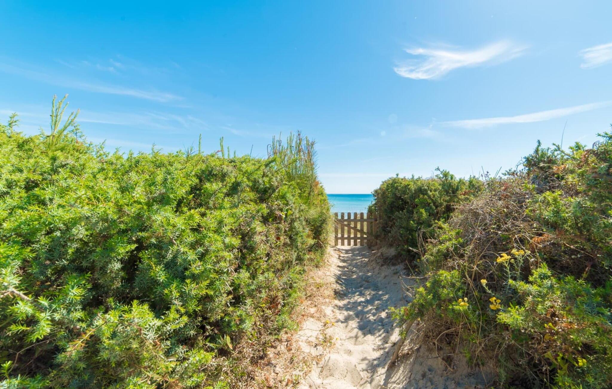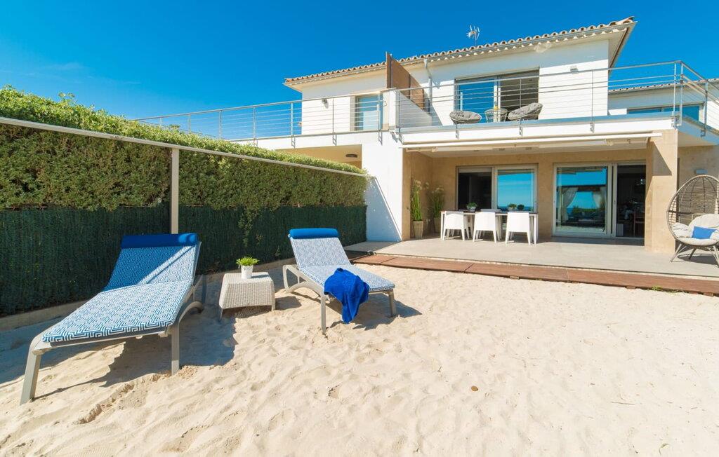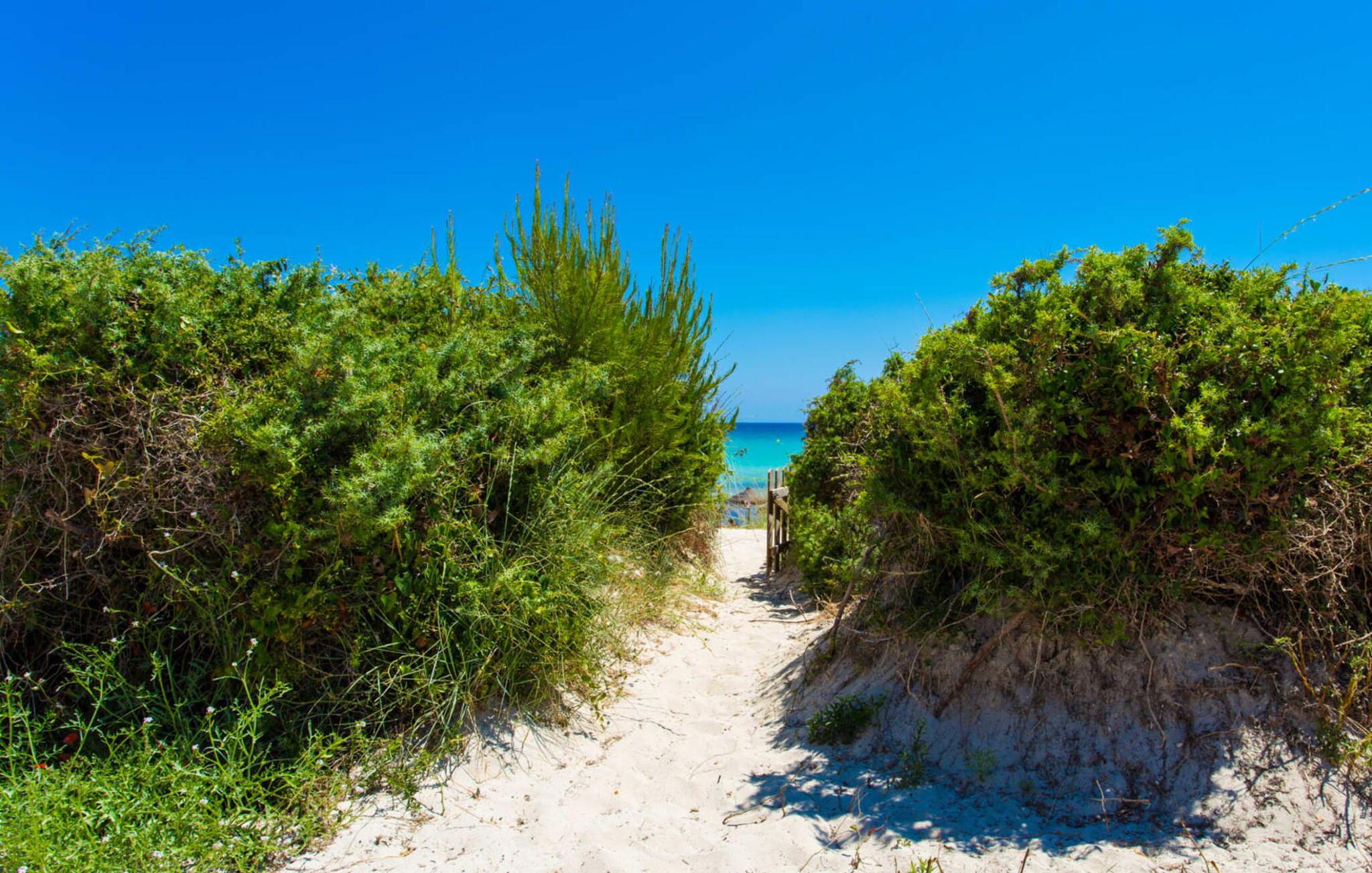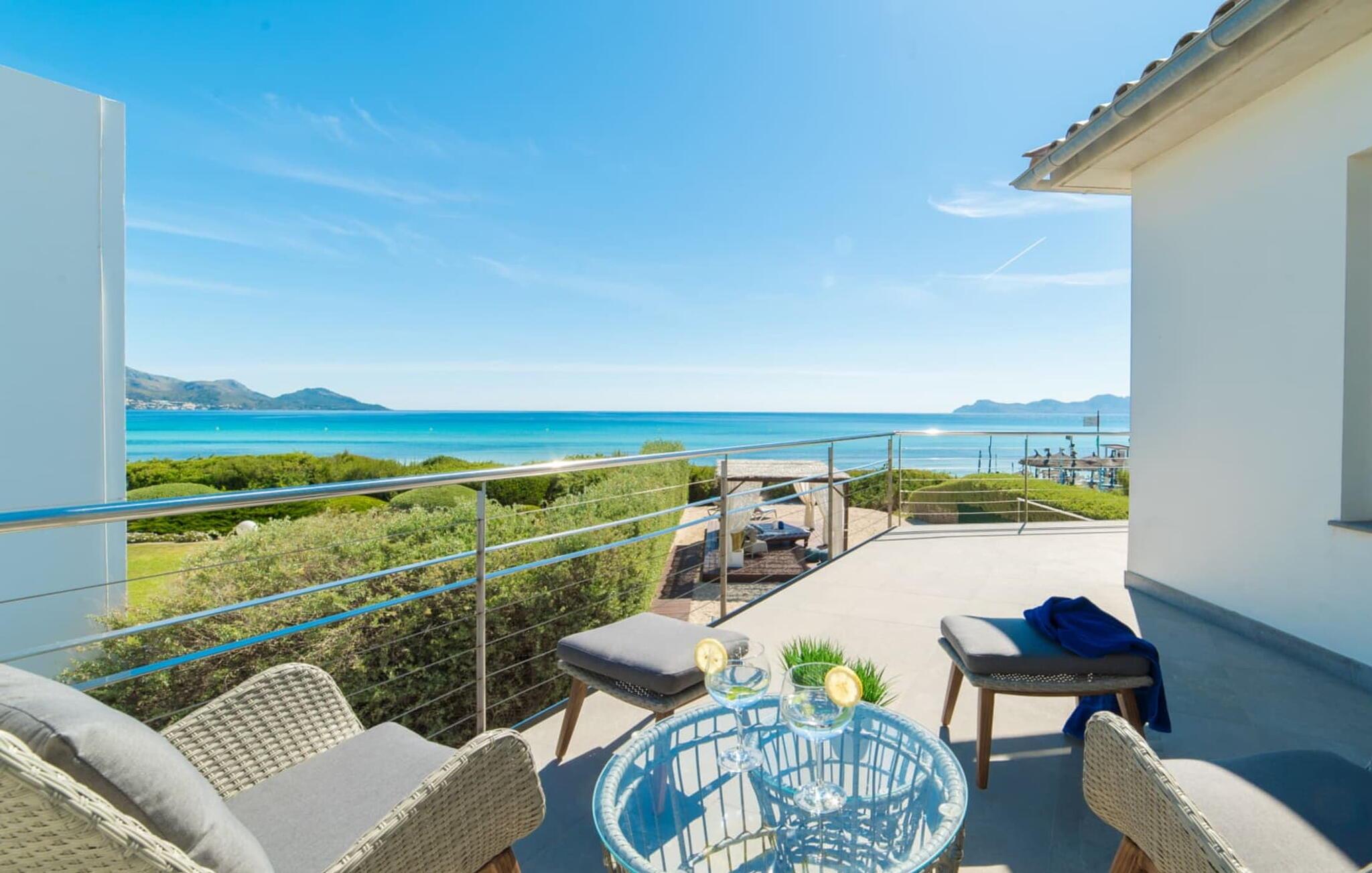 Du kan ikke være tættere på stranden på Mallorca end i villaen "Sa Platja". Den hvide sandstrand er bogstaveligt talt en del af jeres baghave. Herfra fører en kort sti over klitterne direkte til det flade, turkise vand i Playa de Muro på østkysten. I kan nyde de smukke solopgange enten fra jeres seng eller fra den storslåede liggestol i jeres strandhave. Nyd jeres måltider på den overdækkede terrasse ved huset. Det tilbyder en sensationel havudsigt. Om nødvendigt kan skyggeområdet udvides med en markise. Fra terrassen fører glasdøre ind til ferievillaens smagfulde og højkvalitets interiør. En lys, venlig stue venter jer i stueetagen. Det er åbent til spisestuen og luksuriøst udstyret køkken med ø og morgenmadsbar. Et af de tre hyggelige soveværelser og et badeværelse er også placeret på dette niveau. Ovenpå er der yderligere et soveværelse med dobbeltseng med en-suite badeværelse og et elegant master bedroom. Begge værelser har udgang til en solterrasse med smuk havudsigt. Huset er fuldt udstyret med aircondition og varme. I er også velkommen til at lave hjemmekontorarbejde, hvis det er nødvendigt. Der er en stabil WiFi-forbindelse og et fiberoptisk netværk. Fra villaen "Sa Platja" fører en kort sti over klitterne direkte til det flade, turkise vand i Playa de Muro på østkysten. Villaen ligger tæt på den 10 km lange sandbugt Alcúdia. Det er en del af et velholdt boligområde og byder på gode indkøbsmuligheder samt cocktailbarer og restauranter i umiddelbar nærhed.