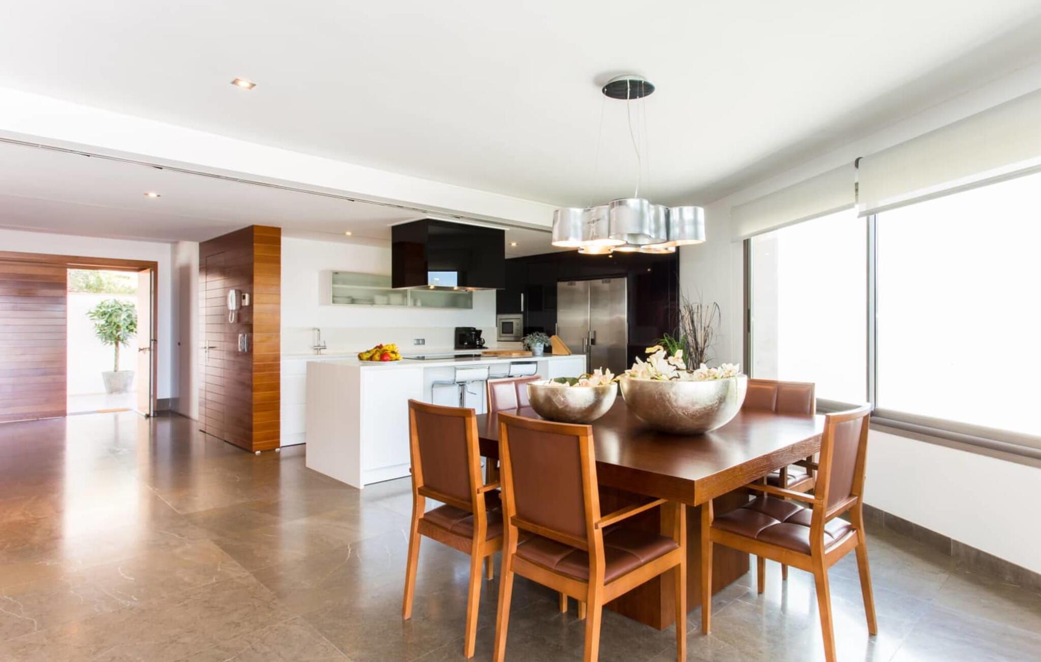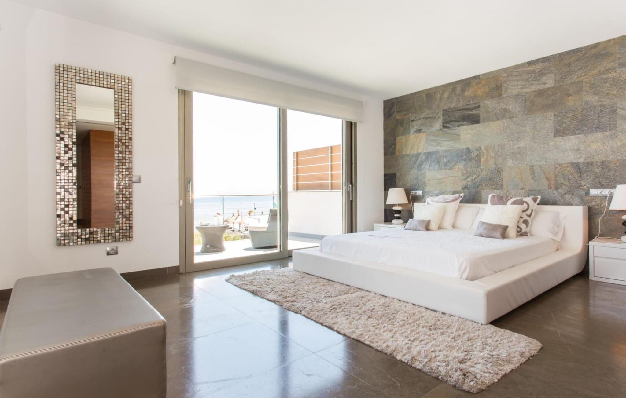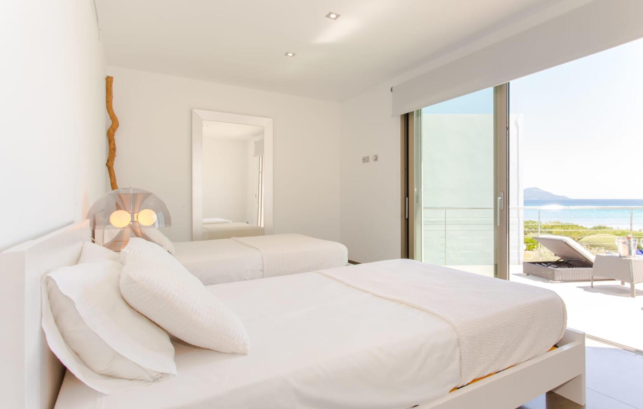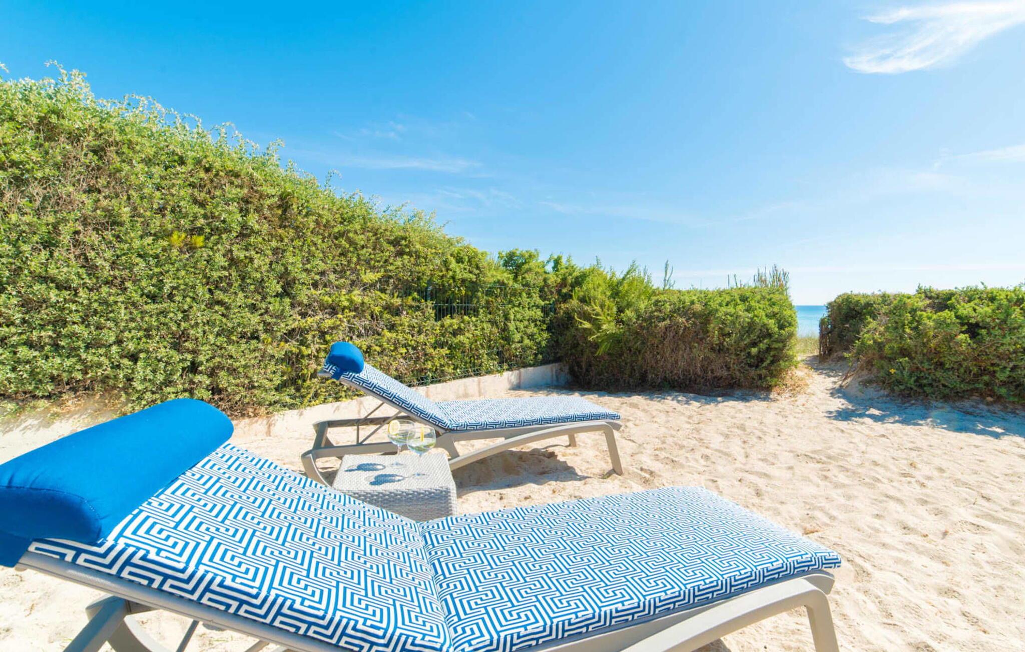 Du kan ikke være tættere på stranden på Mallorca end i villaen "Sa Platja". Den hvide sandstrand er bogstaveligt talt en del af jeres baghave. Herfra fører en kort sti over klitterne direkte til det flade, turkise vand i Playa de Muro på østkysten. I kan nyde de smukke solopgange enten fra jeres seng eller fra den storslåede liggestol i jeres strandhave. Nyd jeres måltider på den overdækkede terrasse ved huset. Det tilbyder en sensationel havudsigt. Om nødvendigt kan skyggeområdet udvides med en markise. Fra terrassen fører glasdøre ind til ferievillaens smagfulde og højkvalitets interiør. En lys, venlig stue venter jer i stueetagen. Det er åbent til spisestuen og luksuriøst udstyret køkken med ø og morgenmadsbar. Et af de tre hyggelige soveværelser og et badeværelse er også placeret på dette niveau. Ovenpå er der yderligere et soveværelse med dobbeltseng med en-suite badeværelse og et elegant master bedroom. Begge værelser har udgang til en solterrasse med smuk havudsigt. Huset er fuldt udstyret med aircondition og varme. I er også velkommen til at lave hjemmekontorarbejde, hvis det er nødvendigt. Der er en stabil WiFi-forbindelse og et fiberoptisk netværk. Fra villaen "Sa Platja" fører en kort sti over klitterne direkte til det flade, turkise vand i Playa de Muro på østkysten. Villaen ligger tæt på den 10 km lange sandbugt Alcúdia. Det er en del af et velholdt boligområde og byder på gode indkøbsmuligheder samt cocktailbarer og restauranter i umiddelbar nærhed.