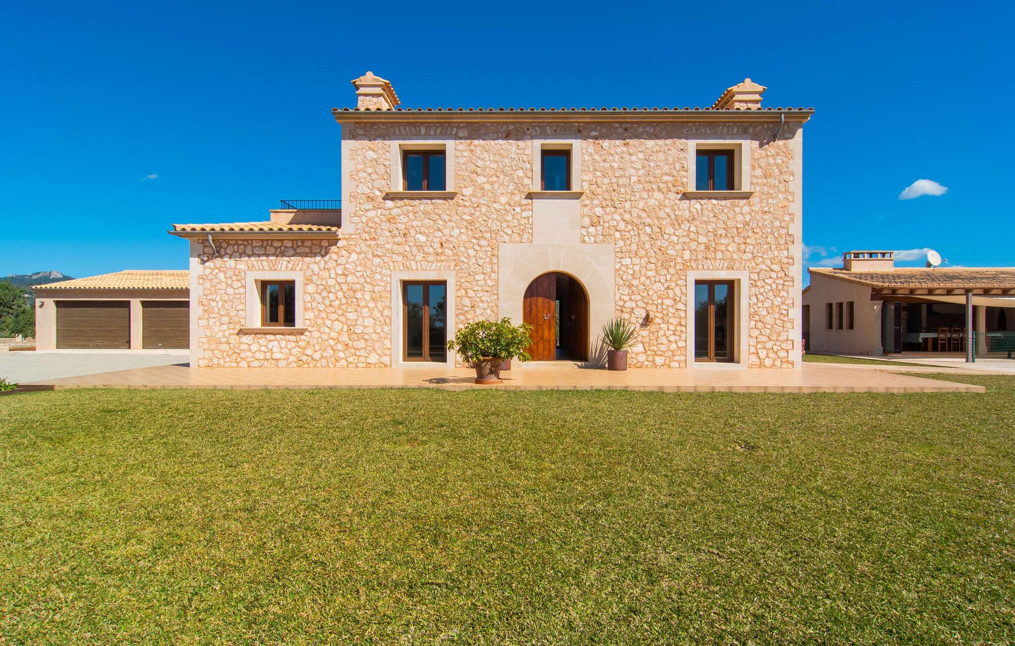 Dette rummelige og komfortable feriehus "Sa Pletassa" på Mallorca er perfekt til familier på udkig efter et afslappende og indbydende miljø. Når I ankommer, vil I bemærke en velholdt grus parkeringsplads og et bordtennis område for jer at have det sjovt. Huset er omgivet af smukt velplejede græsplæner og terrasser med et fantastisk poolområde med et sikkert lukket svømmeområde og liggestole til solbadning. Det tilstødende poolhus har et skyggefuldt udendørs køkken, grill og endda et fjernsyn. Forteltet inviterer jer til at slappe af, mens en klippehave og middelhavsplanter bidrager til den rolige atmosfære. Et komfortabelt udendørs badeværelse gør livet udendørs på ferien særligt behageligt. Indenfor har fincaen en indbydende opholdsstue med pejs, synlige bjælkelofter og store gulvfliser. Det rummelige spisekøkken med stort spisebord og veludstyret kogeø er ideel til at tilberede måltider sammen. Der er også et komfortabelt soveværelse med badeværelse på dette niveau. På øverste etage er der yderligere tre soveværelser og tre moderne badeværelser, heraf et en suite. Fincaen "Sa Pletassa" ligger mindre end 3 km fra landsbyen S'Horta. Beliggende i det smukke landskab på den sydlige del af øen, kan I tilbringe en afslappende ferie med familie eller venner her. Der er heller ikke langt til den smukke havn Portocolom, som kun ligger 5 minutter væk i bil. Enhver, der kan lide at spille golf, vil være glad for nærheden (4,7 km) til Vall d'Or Golf Club.