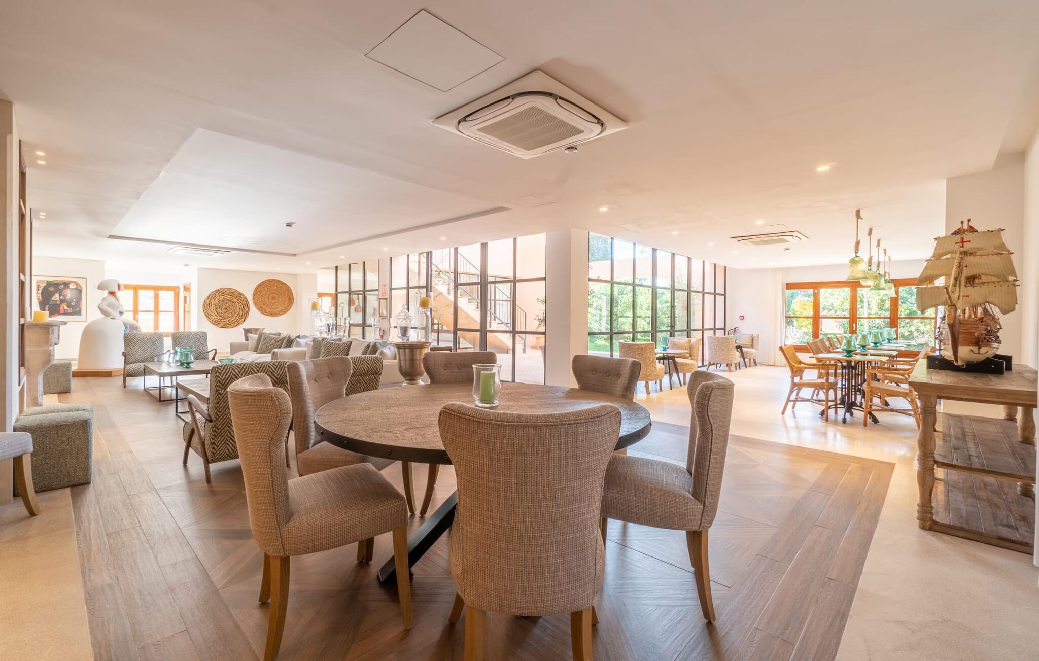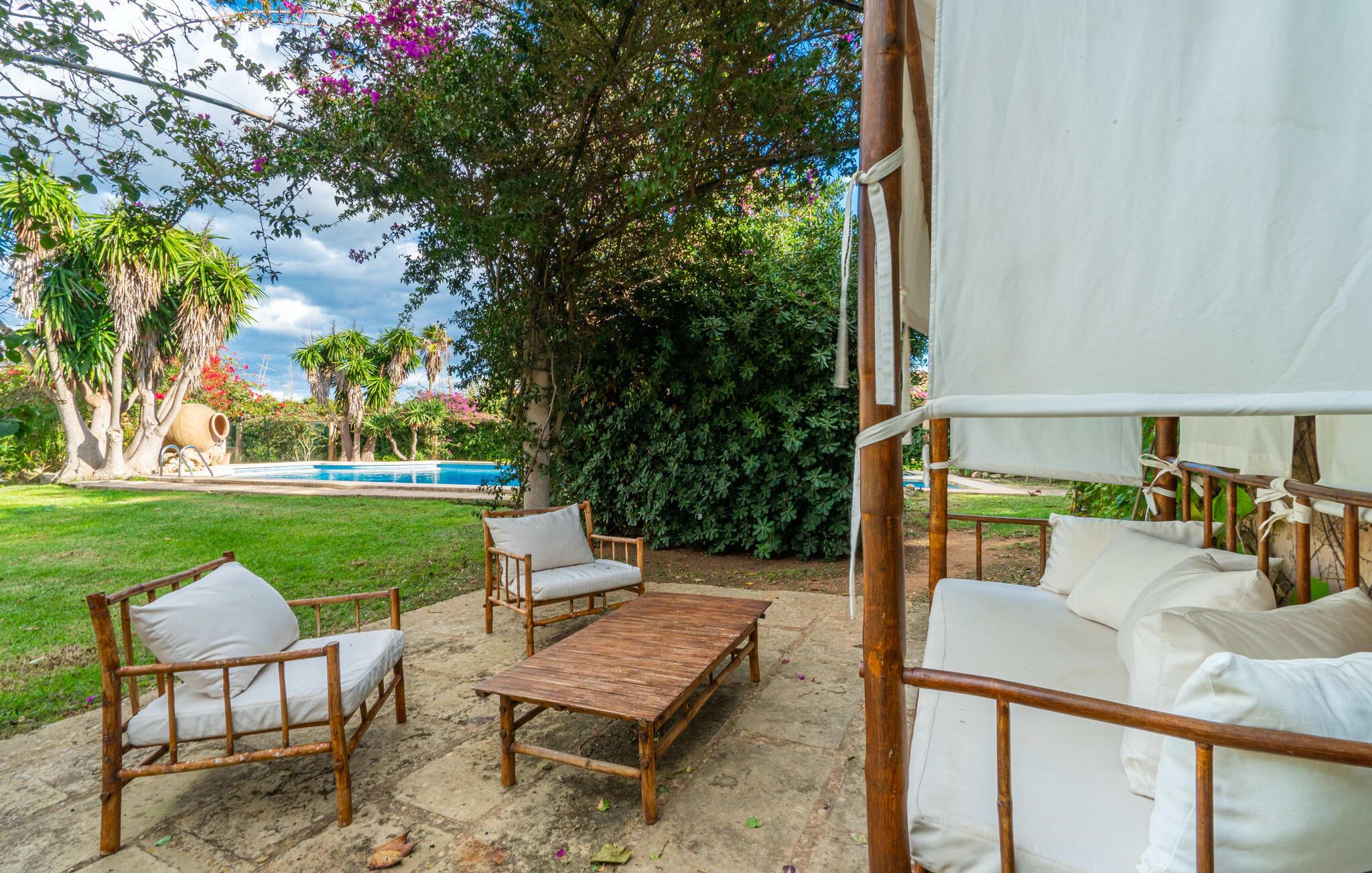 En unik ro omgiver ejendommen, hvor lejligheden "Sa Posada d'Aumallia 15" ligger. Græsplæner, små stier og masser af middelhavsplanter, herunder århundredgamle træer, præger området og giver altid luftig naturlig skygge. Denne rummelige lejlighed i stueetagen med privat have og stor overdækket terrasse tilbyder komforten af et bondehus og samtidig alle de bekvemmeligheder, som et SPA-hotel tilbyder. Hyggen hersker i stuen med hyggelig siddeplads og tv, køkken lige ved siden af, to hyggelige soveværelser og rummeligt badeværelse med kar og bruser og egen vaskemaskine lader intet tilbage at ønske. Denne smukke lejlighed på det sydlige Mallorca er ideel til et roligt wellness-ophold for to. Forskellige områder inviterer jer til at tilbringe afslappende timer udendørs: komfortable daybeds, lounge, spisebord og hyggelige siddepladser. Fra alle steder kan I nyde en vidunderlig udsigt over landskabet. Den over 18 m lange pool, som er omgivet af dekorative planter og områder til solbadning, lover en behagelig forfriskning. Hvis I kan lide sport, kan I bruge tennisbanen eller fitnesscentret. Til wellness-øjeblikke er der en omfattende spa med sauna og tyrkisk bad. Derudover er et alsidigt mødelokale tilgængeligt efter aftale. Lejligheden "Sa Posada d'Aumallia 15" er en del af "Aumallia Hotel & Spa", et unikt, roligt beliggende landhotel. Det er tæt på Porto Colom og golfbanen Vall d'Or. Det store område fuld af charme er ideelt til en afslappende ferie på Mallorca. Porto Colom-stranden og de berømte Dragon Caves kan nås på 10 minutter i bil.