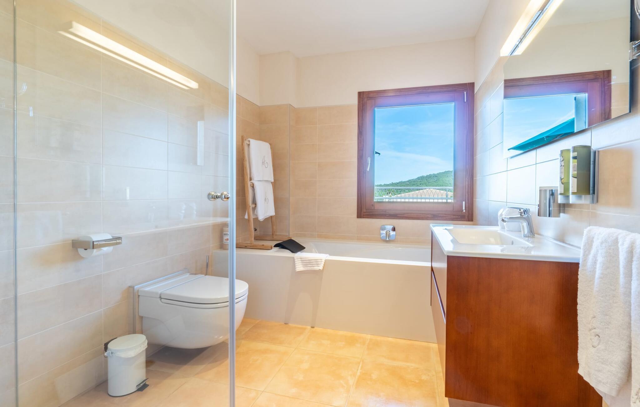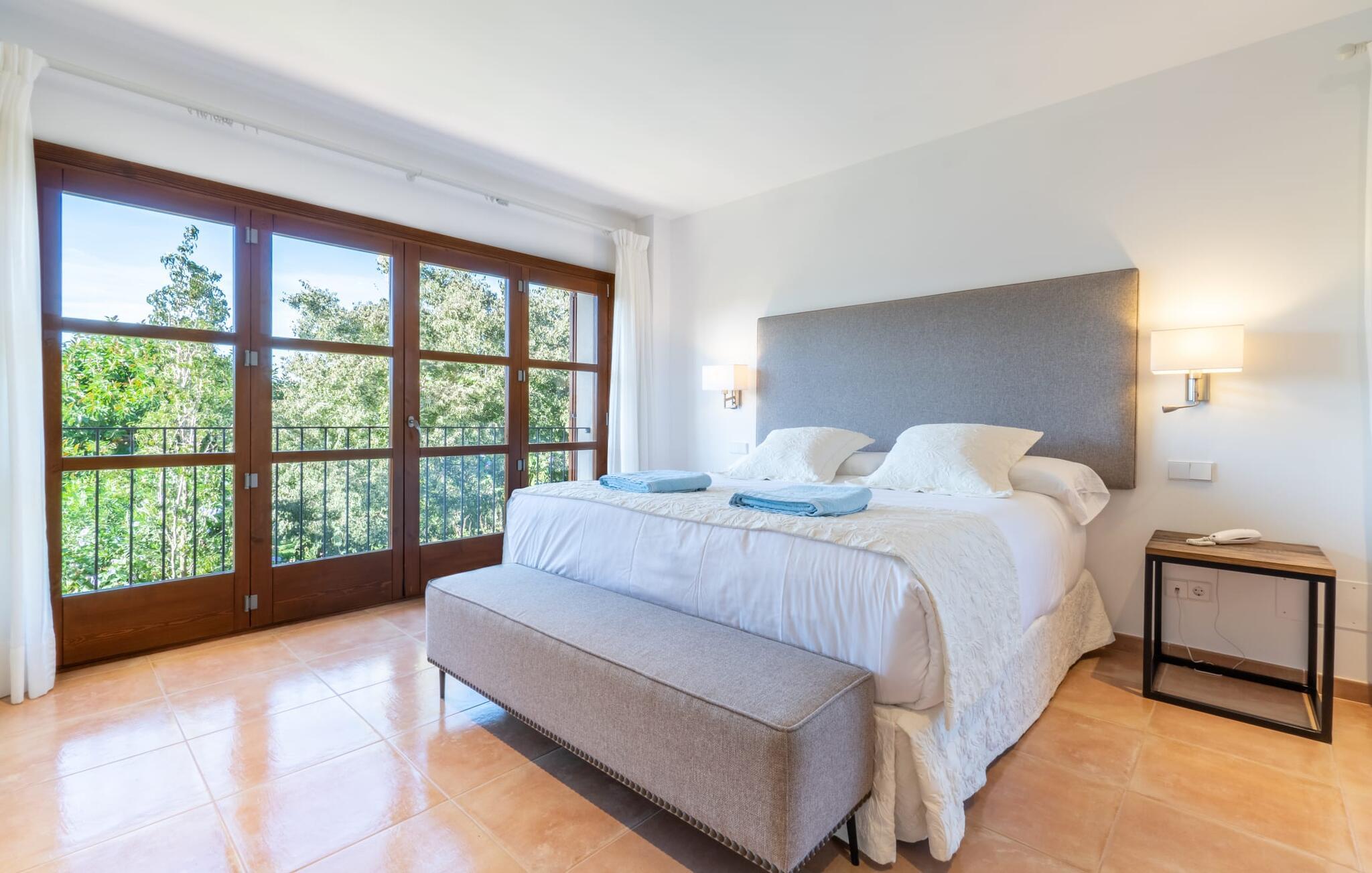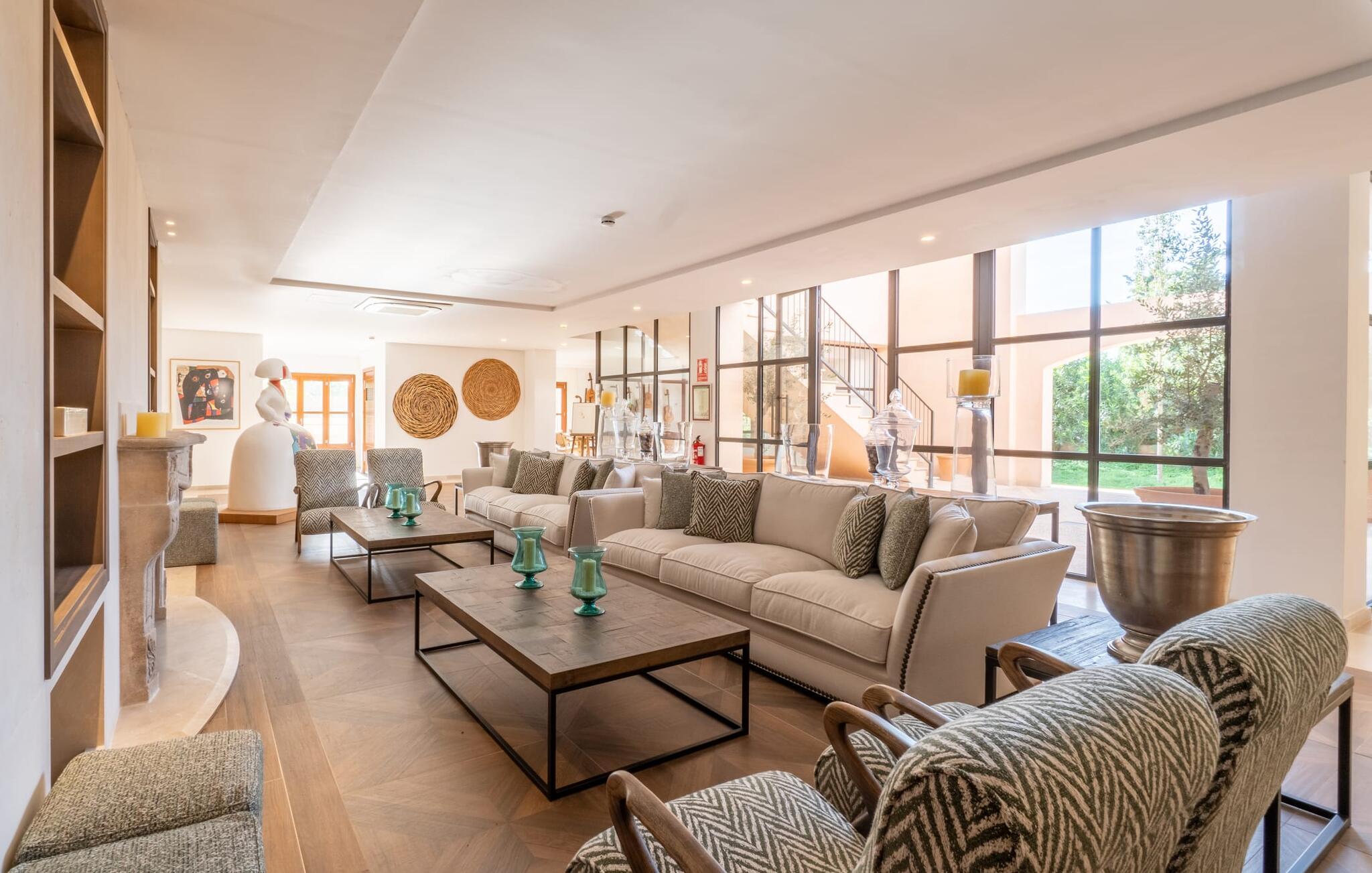 En unik ro omgiver ejendommen, hvor lejligheden "Sa Posada d'Aumallia 34" ligger. Græsplæner, små stier og mange middelhavsplanter, herunder århundredgamle træer, præger området og giver altid luftig, naturlig skygge. Forskellige områder inviterer jer til at tilbringe afslappende timer udendørs: komfortable liggestole, lounge, spisebord og hyggelige siddepladser. Fra alle steder kan I nyde en vidunderlig udsigt over landskabet. Den 18 meter lange pool, som er omgivet af prydplanter og solbadeområder, lover en behagelig forfriskning. Hvis I kan lide sport, kan I bruge tennisbanen eller fitnesscentret. Til wellness-øjeblikke er der en omfattende spa med sauna og tyrkisk bad. I kan også bruge et alsidigt mødelokale efter aftale. Den rummelige lejlighed med en stor panoramaterrasse imponerer med sin klassiske elegance. En hyggelig opholdsstue med komfortable siddepladser, tv og spisebord samt et moderne tekøkken og selvfølgelig en stor seng og et tilhørende badeværelse med badekar og bruser. Denne lejlighed på det sydlige Mallorca er ideel til et roligt wellness-ophold for to. Lejligheden "Sa Posada d'Aumallia 34" er en del af "Aumallia Hotel & Spa", et charmerende landhotel med en rolig beliggenhed. Det er tæt på Porto Colom og golfbanen Vall d'Or. Det store område fuld af flair er ideelt til en afslappende ferie på Mallorca. Porto Colom-stranden og de berømte Dragon Caves kan nås på 10 minutter i bil.