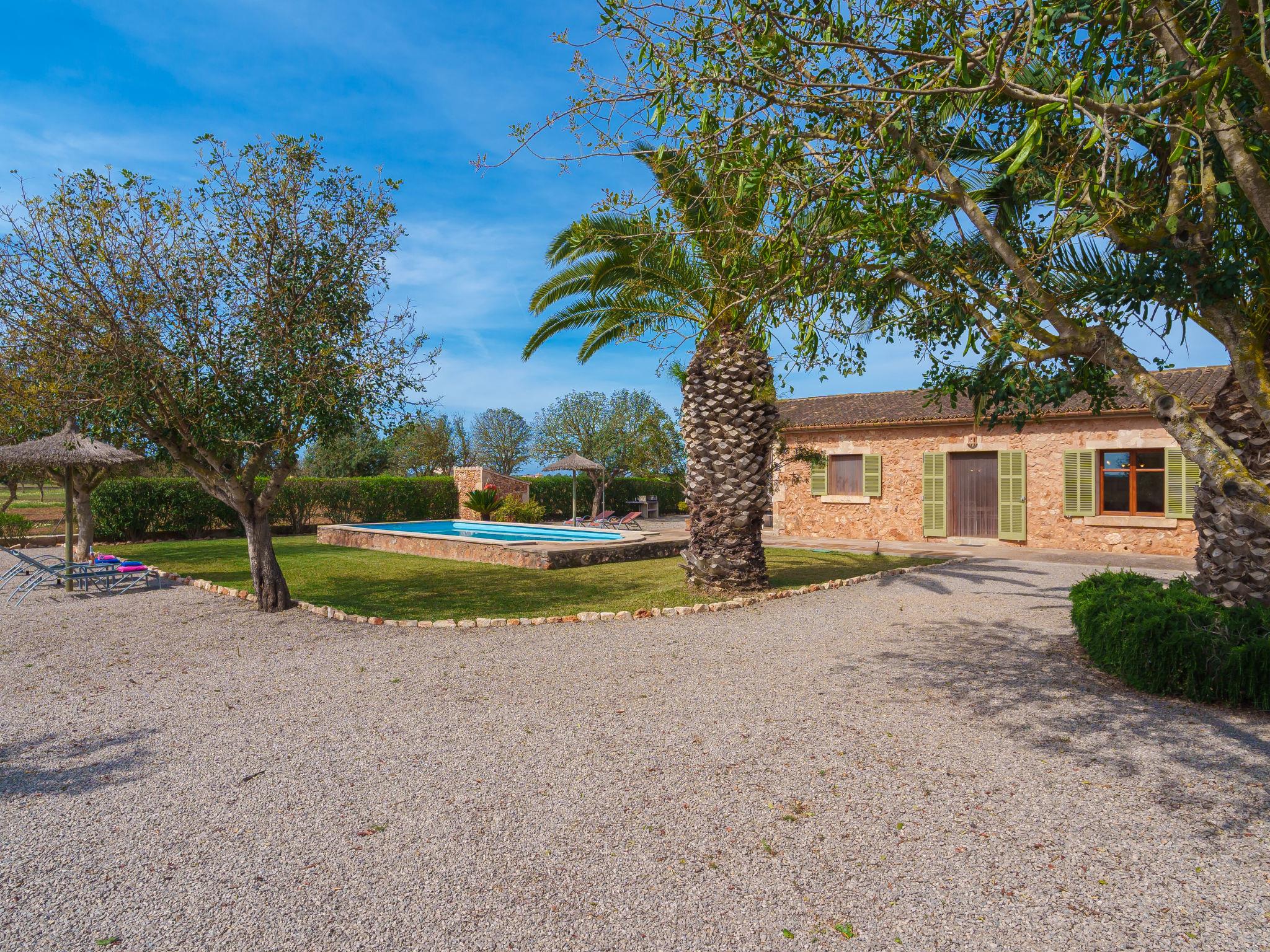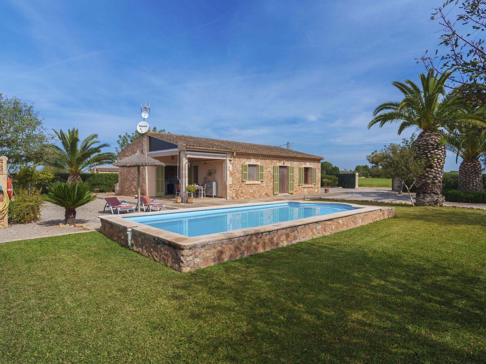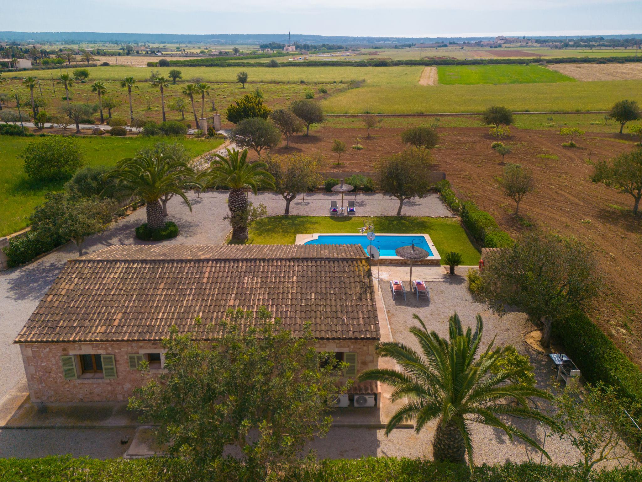 Beautiful farm estate "Marina", surrounded by fields. 5 km from the centre of Sa Rápita, 9 km from the centre of Campos, 46 km from the centre of Palma, 3 km from the sea. Private: property 18'000 m2, garden 1'000 m2 (fenced) with lawn and wildlife garden, swimming pool (7 x 3 m, seasonal availability: 01.Jan. - 31.Dec.). Outdoor shower, roofed, parking on the premises. Shop 5 km, supermarket 9 km, bus stop "Sa Rapita" 4 km, sandy beach "Es Trenc" 3 km. Please note: car recommended.