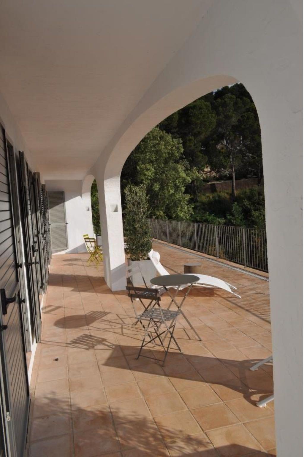 High-standard detached villa, completely renovated in 2012, in the charming and peaceful Mas Mato district, 5 minutes' walk from Sa Riera beach and 3 km from the pretty medieval village of Begur. It offers excellent accommodation for 12 people and has a 5x12m private swimming pool, a garden with landscaped area, numerous terraces and an awning; ideal for holidays with family or friends. The 3-storey villa is set in beautifully landscaped grounds. - The ground floor comprises a living room with fireplace, a dining room and an open-plan kitchen, which open onto a large terrace with magnificent sea views. - The lower floor comprises 5 bedrooms: a master suite with its own bathroom (walk-in shower, bath and WC), 3 bedrooms each with 2 single beds that can be converted into double beds. These bedrooms open onto a large terrace with sea views. They are completed by a children's bedroom with 2 beds. There are 3 shower rooms and 2 separate WCs on this level. - The pool level floor comprises a double bedroom with shower room and separate WC and a large lounge with open-plan kitchen, opening onto a large teak terrace by the pool. This level also includes a large open awning housing garden furniture and a pool table. - The 5 x 12 m swimming pool, protected by an automatic cover, is surrounded by lawns and offers a large space for relaxation. - On the roof of the house, a vast solarium offers a breathtaking view over the bay of Sa Riera.