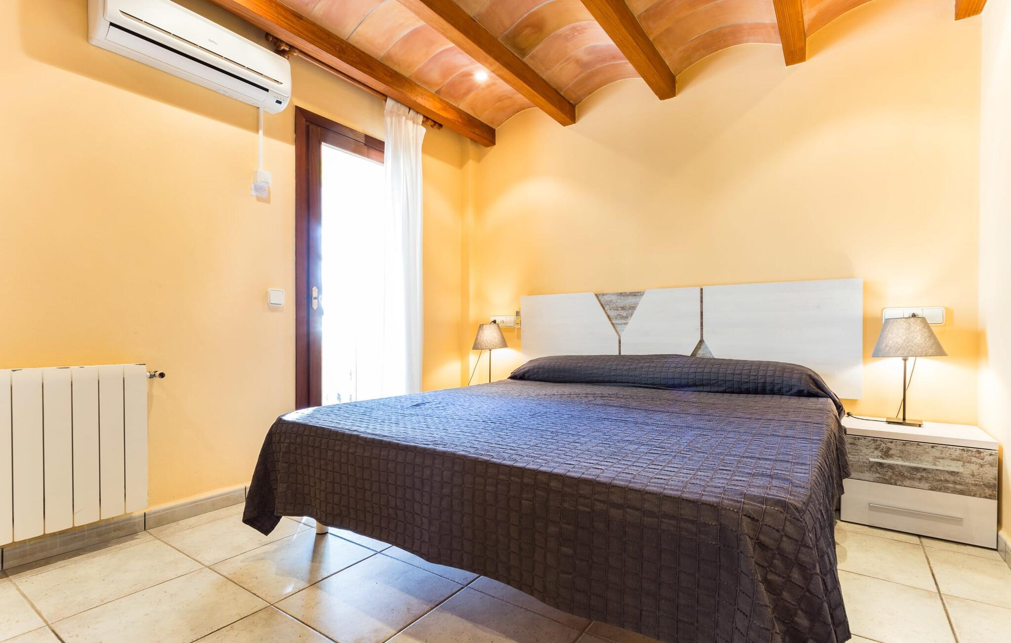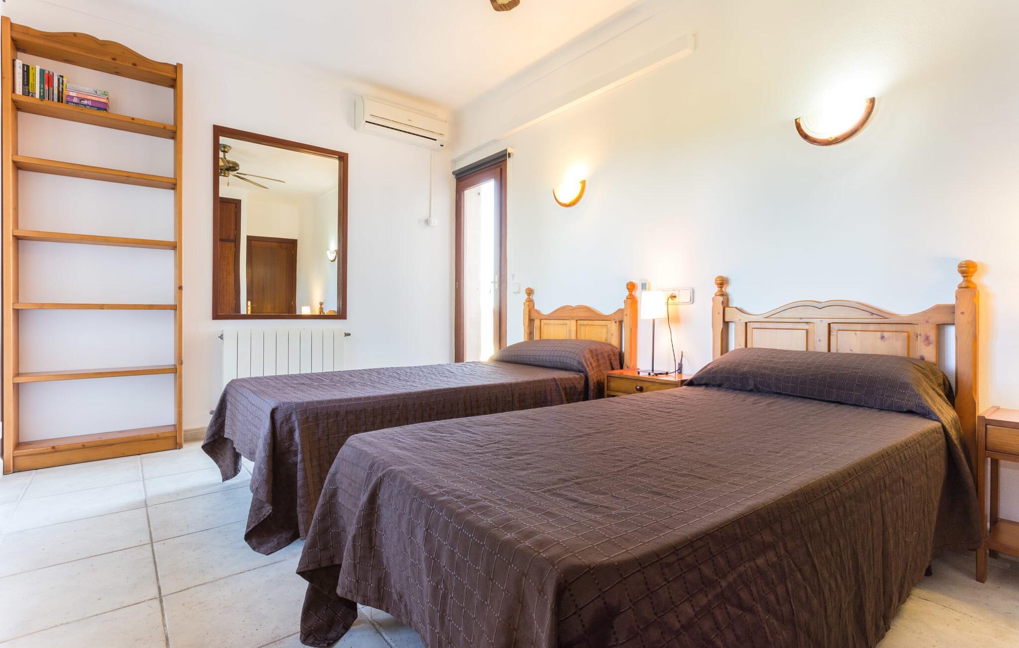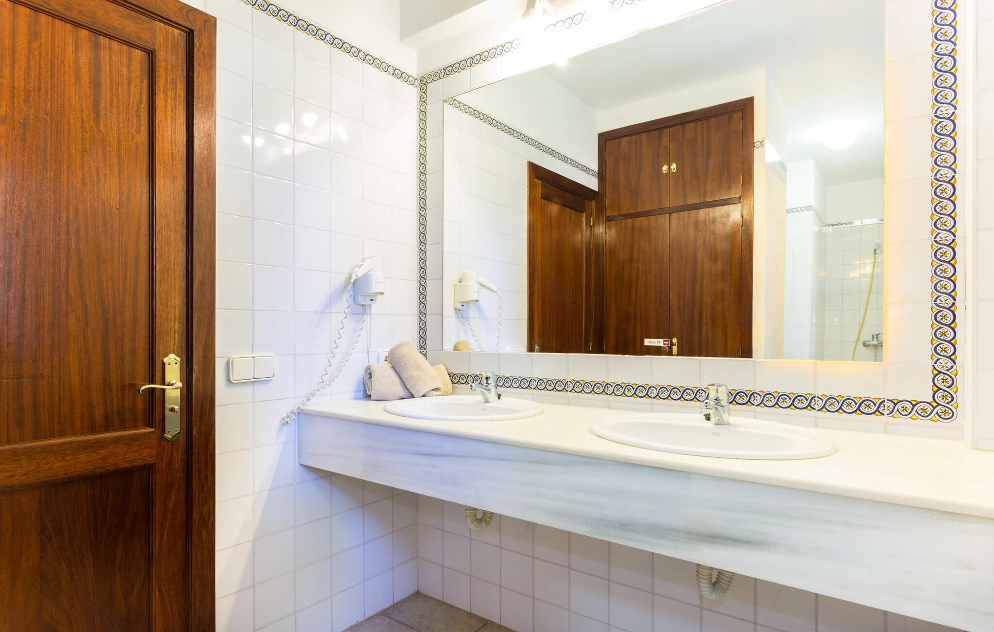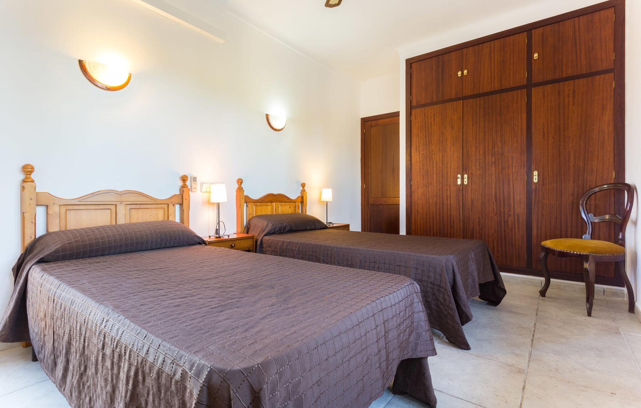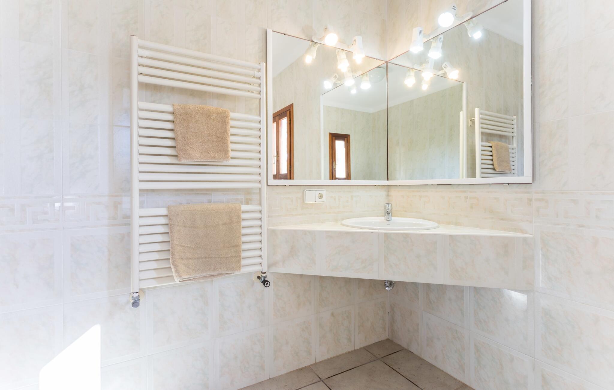 Her kan I virkelig nyde livet på landet: i den fremragende vedligeholdte, rummelige villa "Sa Tanca Nova" på en stor ejendom med imponerende palmer og et kærligt designet poolområde, der kan måle sig med et stjernehotel. Det sandfarvede hus med den særligt smukke overdækkede terrasse, hvorfra I har en fantastisk udsigt over haven, vil imponere jer i enhver henseende. Går I ned et par trin fra terrassen, befinder I jer ved den let skrånende pool, som glimter turkis i solen - og denne pool er alt andet end et kedeligt rektangel. Det har ikke kun et udendørs spabad, men det har også en cirkulær grundplan med en smuk lille ø i midten, samt en bro som et ekstra højdepunkt. Det er ikke kun børnene, der vil elske at svømme en omgang eller to her! Og hvis I ikke har lyst til en kølig forfriskning, kan I enten slappe af på en af de komfortable liggestole – eller spille en omgang bordtennis med jeres medrejsende ved husets bord. Så nyd frisklavede delikatesser fra murstensgrillen og en godnatdrink på de komfortable kurvestole på terrassen - og det er den perfekte afslutning på jeres dag! En rustik stil, smagfuldt kombineret med moderne elementer, indbydende, høj kvalitet - sådan kan hele interiøret i denne villa opsummeres. Lyse farver blev brugt i alle rum, suppleret med accenter af natursten og stilfuldt placeret kunst på væggene. Nogle smukke mørke træbjælker kan også ses på lofterne. I stueplan finder I udover entré og badeværelse det åbne køkken, der fører til spise- og opholdsafdelingen med god plads samt et hyggeligt diskret indrettet dobbeltværelse med et smart badeværelse. I stuen kan I nyde pejsens behagelige knitren fra den store sofa og se en spændende krimi om aftenen med et glas rødvin. Yderligere tre soveværelser, hver med deres eget moderne badeværelse, tilbyder retreater på øverste etage. "Sa Tanca Nova" er indlejret i det smukke middelhavslandskab i den sydlige del af øen. Dette gør jeres sommerhus til det perfekte udgangspunkt for lange gåture, vandreture eller cykelture gennem naturen. Vil I løbe ærinder eller bare slappe af på en hyggelig café, er det bedst at køre til den smukke naboby S'Horta, som kun ligger 3,4 km væk og har kun 1.000 indbyggere. Her er altid dejligt stille og afslappet – det bliver kun lidt livligere om lørdagen, hvor de lokale sælger frisk lokal frugt og grønt på det ugentlige marked. Der sker helt sikkert mere i Cala d'Or, kun 3,7 km væk, et typisk mallorcansk, charmerende feriested omkring "Golden Bay", der har givet den sit navn. Udover fantastiske strande for enhver smag - mange mindre bugter ligger meget tæt på hinanden - er der også masser af barer, restauranter, shoppingmuligheder og et pulserende natteliv. Et landsted lige ud af en billedbog: Villaen "Sa Tanca Nova" blev bygget midt i et smukt middelhavslandskab, der inviterer jer til at slappe af og slappe af. Den klassiske bygning med overdækket terrasse er placeret på en rummelig ejendom, hvor det specielle poolområde især skiller sig ud: det kølige vand strømmer her i cirkler, herunder en lille bro og et spabad. Den idylliske landsby S'Horta ligger kun 3,4 km væk, og stranden i Cala d'Or ligger kun 3,7 km væk. Bemærk venligst, at denne ejendom ikke accepterer ungdomsgrupper eller polterabender. En ungdomsgruppe på denne ejendom består af personer på 25 år eller derunder. Book ikke denne ejendom, hvis I er en ungdomsgruppe eller polterabend, da jeres reservation vil blive afvist, når den er booket, hvilket også kan være tilfældet ved ankomst til ejendommen eller under jeres ophold, og I vil ikke modtage en refusion. Aircondition er inkluderet i denne ejendom, men brug mellem kl. 20.00 og 8.00 er inkluderet i prisen. Valgfri brug af varme er inkluderet i prisen for 10 timer pr. dag i vintermånederne, hvorefter det betales kontant på stedet.