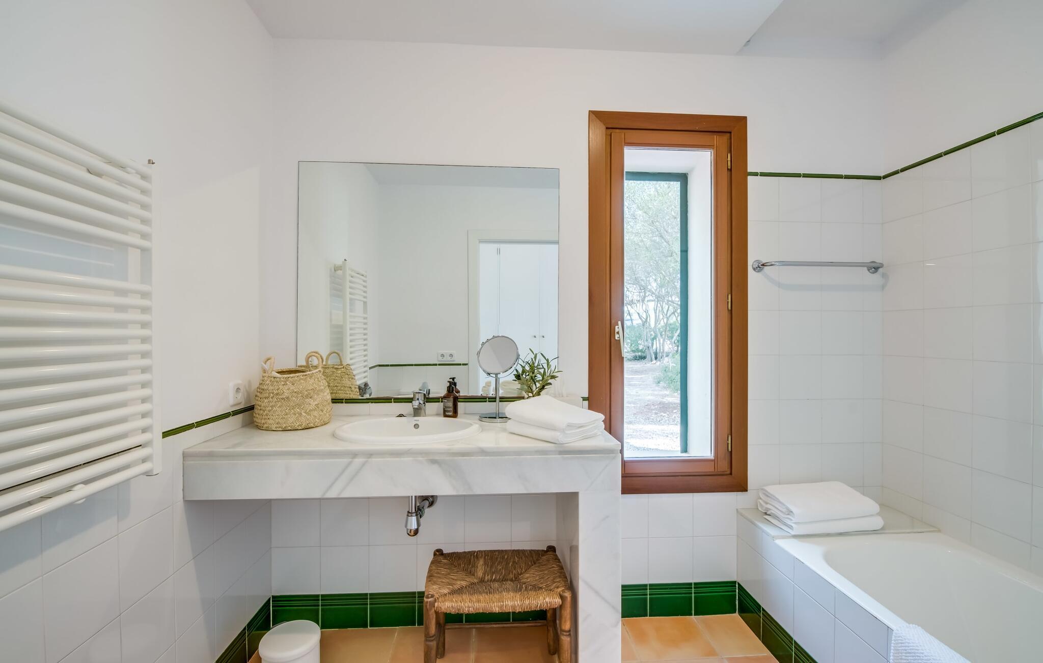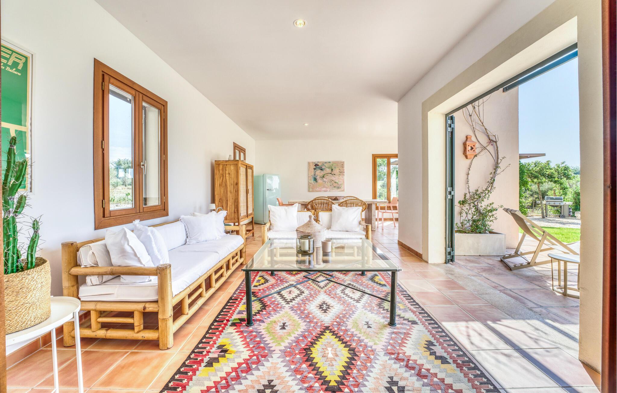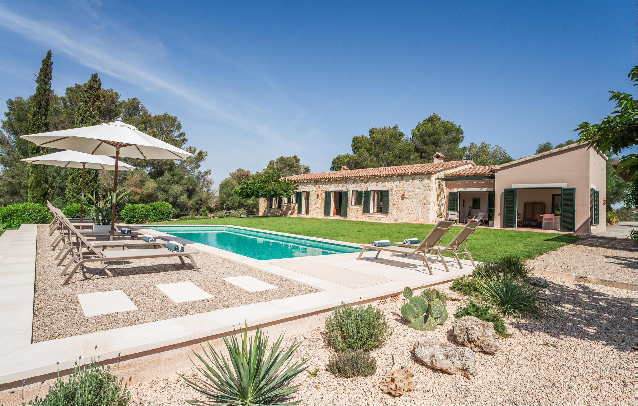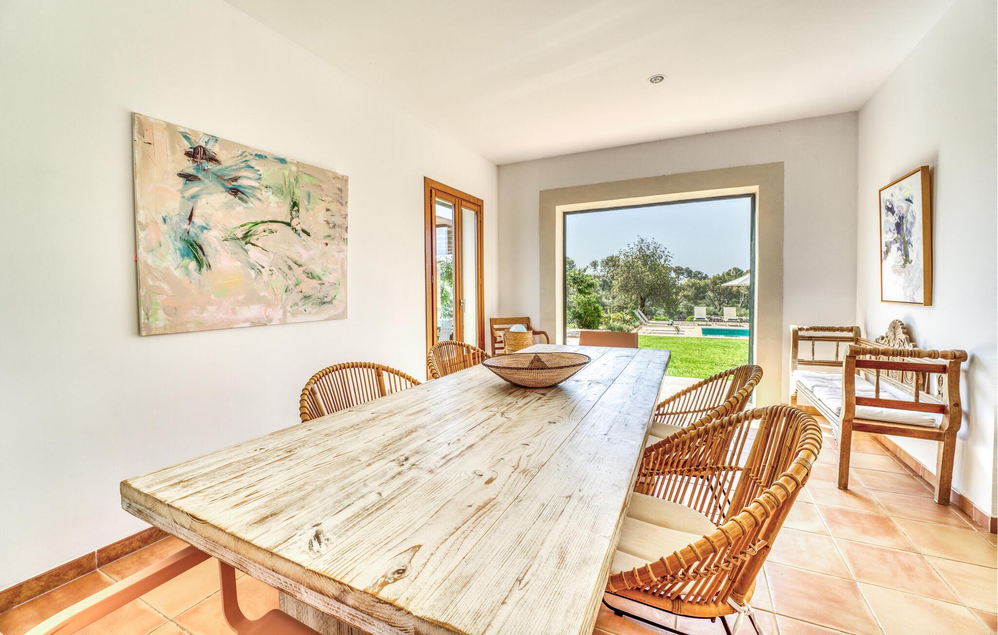 Villaen “Sa Tanca” ligger meget stille og idyllisk i den smukke østlige del af Mallorca, hvor de blidt stigende bakker i Serra Levanten præger et typisk middelhavslandskab, enestående smukt kystlandskab. Her kan I nyde jeres privatliv uden at føle jer begrænset af mure eller hegn. Den lange pool er omgivet af græsplæner, hvor I kan slappe af i solen, og børnene kan løbe rundt og lege. Høje hække giver ekstra komfort og ser attraktive ud på samme tid. Der er en særlig smuk sydvendt siddeplads foran huset. Herfra har I en fantastisk udsigt over haven og kan også fuldt ud nyde Middelhavslyset. Om morgenen eller sent om aftenen – det er et smukt sted med en faktor. I kan slappe af ved det runde spisebord eller nyde et måltid sammen. Om aftenen kan I fejre solide grillfester og tilberede og nyde friske regionale specialiteter på grillen. Poolen er let tilgængelig via en stige. For at beskytte jer, hvis UV-strålingen bliver for stærk, er der to parasoller til rådighed. Uanset tidspunktet på dagen er der altid en luftig, naturlig skygge på ejendommen for at nyde de smukke omgivelser. Der er en parkeringsplads til jeres bil foran huset. I husets lysfyldte interiør kan I forvente et boligareal på 302 m². Lyse vægge harmonerer med terracotta fliserne samt trævinduer og møbler med deres smukke, farverige stoffer. Udvalgte billeder på væggene forskønner rummene. Denne dygtige sammensætning skaber en særlig smagfuld og hyggelig stemning, hvor I hurtigt føler jer hjemme. En stor kombineret stue/spisestue med lille bibliotek og pejs opfylder alle jeres indendørs afslapningsbehov. Et andet indbydende sted at sidde og nyde er en slags vinterhave, som helt kan åbnes til en overdækket terrasse i de varmere måneder og er udstyret med en ekstra sofa og spisebord. Det rummelige, moderne køkken er fuldt udstyret og byder på alt det nødvendige til jeres ferie. Faciliteterne omfatter en opvaskemaskine, en kedel, en italiensk kaffemaskine og en filterkaffemaskine. Fire slående renoverede og klimatiserede soveværelser, hver med sit eget badeværelse, fuldender de afslappende funktioner i dette feriehus. Badeværelserne er lyse og venlige. For nemheds skyld er strygejern og hårtørrer tilgængelige. Fra villaen "Sa Tanca" er der mindre end 4 km til den nærmeste kystby Portocristo, med sin egen fejende havn og strandbugter, over hvilken der er en smuk promenade med butikker, caféer, barer og restauranter. Der er også et ugentligt marked, der er værd at se, og flere store, velassorterede supermarkeder til jeres daglige behov. En udflugt, som I bestemt bør tage på i Portocristo, er de såkaldte Caves of Drac, en unik drypstensgrotte med Europas største underjordiske sø. Ud over denne lille by er der også adskillige fantastiske strande inden for rækkevidde. De er alle fine hvide sandstrande, og de fleste har lavvandet adgang til havet. Villaen tilbyder et ideelt udgangspunkt for en varieret badeferie. Den smukt beliggende villa "Sa Tanca" ligger mindre end 4 km fra porten til den maleriske havneby Portocristo. Talrige strande, de såkaldte "Calas de Mallorca", er meget nemme at nå. Portocristo ligger kun omkring 5 minutter væk i bil, og her finder I alt, hvad I behøver for at shoppe og tilbringe en aften. Bemærk venligst, at denne ejendom ikke accepterer ungdomsgrupper eller polterabender. En ungdomsgruppe på denne ejendom består af personer under 30 år. Book ikke denne ejendom, hvis I er en ungdomsgruppe eller en polterabendgruppe, da jeres reservation vil blive afvist, når den er booket, hvilket også kan være tilfældet ved ankomst til ejendommen eller under jeres ophold, og I vil ikke modtage en refusion.