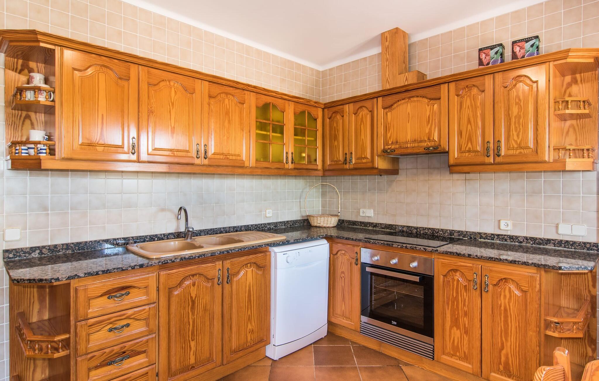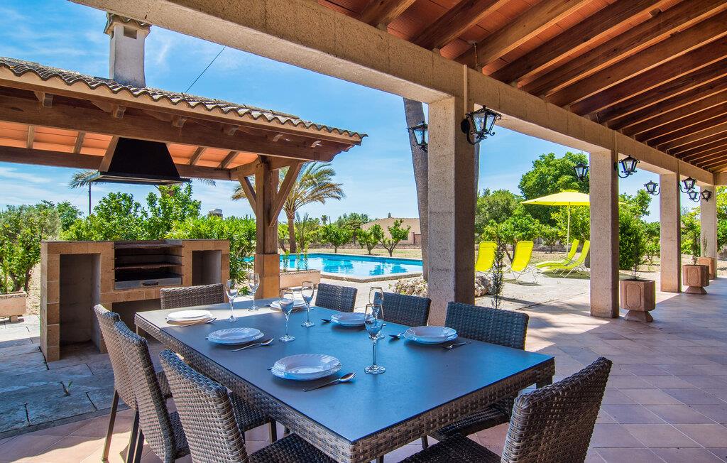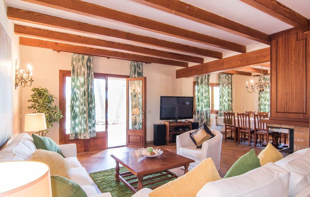 Ferie har en anden tidsramme - det langsommere tempo og den tid, I bruger med familie og venner, hjælper jer med at komme væk fra hverdagens stress. I en landdistrikt, der stort set er uberørt af turisme, kan åbne spørgsmål nogle gange løses blot ved at diskutere dem i en afslappet atmosfære med venner eller familie. Villa “Sa Terra Grosa” er en ejendom, der er det perfekte udgangspunkt for en afslappende ferie af denne type og har endnu mere at byde på takket være sin beliggenhed midt i et smukt landskab med bølgende bakker. Den elfenbensfarvede villa ligger i udkanten af Binissalem og er omgivet af en frugthave og enorme palmer. I vil elske at bruge jeres tid på de rummelige overdækkede terrasser og den solbeskinnede tagterrasse. Landhuset byder på hyggelig privat plads på en ugeneret ejendom og man kan hoppe i poolen næsten direkte fra verandaen og nyde det kølige vand - helt i naturen, hvis man vil. Bagefter kan I solbade på de stilfulde liggestole (eller i skyggen af parasollen om nødvendigt). Hvis en daglig grillaften er en del af en vellykket ferie, vil I blive glad for den indbyggede, overdækkede grill. Det er bekvemt placeret lige i den ene ende af et spisebordssæt i syntetisk rattan af høj kvalitet, hvor I kan servere mad. Når det bliver lidt køligere eller det er tid til at gå i seng, så forlad dette helt afslappende område og træk jer tilbage til jeres indbydende feriehus. Interiøret i den rustikke bygning har gennemgået et ansigtsløft, der kombinerer de traditionelle egenskaber ved mallorcinsk design med en moderne landlig stil – og det er rimeligt at sige, at denne kombination er en succes. Alene den store stue med sin harmoniske farvepalet, højkvalitets træmøbler, mørke keramiske fliser, vægge i lyse, subtile farver og nogle dekorative detaljer i en hjemlig mosgrøn, som afspejles i tekstilerne, gør indtryk. Farvevalget udtrykker nærheden og tilknytningen til naturen – og elsker I pejse, passer den åbne pejs midt i rummet perfekt ind i billedet. Det tilstødende, rustikke landstedskøkken imponerer med autentisk bondehuscharme og har samtidig alle de tekniske faciliteter til en ubekymret ferie med selvforplejning. Værelsesindretningen er også ideel til to familier med i alt op til otte personer. På hver etage er der to dobbeltværelser med aircondition og et badeværelse med badekar. Børnene har deres eget område i de to værelser med enkeltsenge; De to queen-size senge er ideelle som et hyggeligt soveværelse. Da der også er en lille opholdsstue med to sofaer på øverste etage, er det næsten, som om I har to separate overnatningssteder - skønt til en ferie i flere generationer. Ikke at forglemme: Takket være centralvarmen og den hyggelige knitrende pejs mister "Sa Terra Grosa" intet af sin særlige charme, selv i de køligere måneder af året. Hvis I elsker vin og gerne vil tage på en rejse gennem Mallorcas ønologis verden under jeres ferie, er I kommet til det rigtige sted i den smukke villa "Sa Terra Grosa". Binissalem ligger i det frugtbare hjerte af øen, Plà de Mallorca. Det er kendetegnet ved produktion af appelsiner, mandler og vin ved foden af de majestætiske Tramuntana-bjerge. Så det er ikke underligt, at I kan smage direkte i producenternes bodegaer og vinkældre året rundt. Villaen ligger lige uden for landsbyen i et tyndt befolket område. På grund af nærheden til vejen, som man kun kan høre, når vinden er rigtig, kan man sagtens følge den mallorcanske vinrute. Om aftenen, når I vender tilbage fra dagsture, kan I nyde den fulde smag af den medbragte Crianza, mens I sidder i den yderst komfortable lounge og har udsigt over det afslappende landskab. Vi hilser denne vidunderlige finca fra bunden af vores hjerter. Den nænsomt renoverede villa "Sa Terra Grosa" er omgivet af en stor frugthave. Ejendommen er beliggende nord for Binissalem, en rolig lille by i centrum af øen. I kan også gå ind til byen, hvor et farverigt ugentligt marked finder sted om fredagen på kirkepladsen. På grund af sin centrale beliggenhed midt på øen er hovedstaden Palma og dens strande, herunder Passeig del Molinar og Ciutat Jardí, nemme at nå.