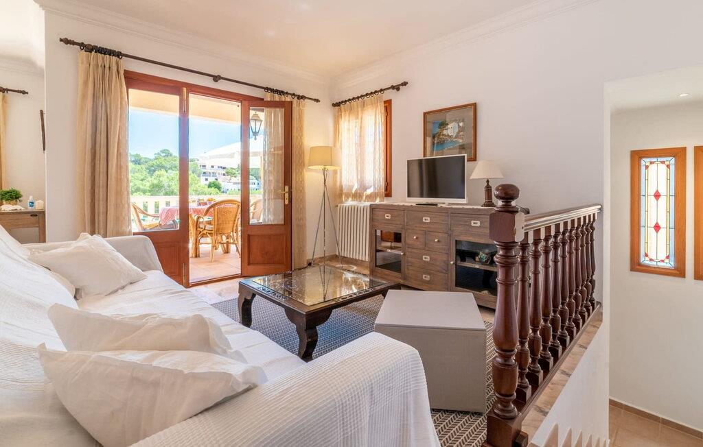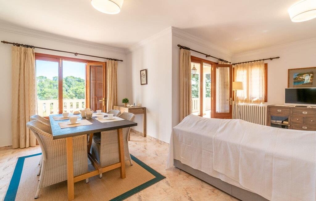 Denne enorme to-etagers villa ligger direkte i bugten Cala Santanyi. Det er bygget midt i bugten. Der skabes et flerlags terrasselandskab på forskellige niveauer. Huset ligger på en ejendom med delikate stenbrud, omgivet af frodig grøn middelhavsflora med fyrre- og oliventræer. Udsigten over det azurblå havvand og den hvide sandstrand er også himmelsk. I behøver virkelig ikke undvære en pool på dette sted, for ejendommen har meget mere at byde på: I kan komme direkte til bugten via en trappe udhugget i sten. På den nederste terrasse er der dog en meget praktisk udendørs bruser med flotte blå mosaikfliser, så I kan gå i bad efter en svømmetur i havet uden at skulle ind. I stedet for at skulle reservere en god plads på stranden, kan I slappe af på en af de mange liggestole på ejendommen. Nok af sol? Snup en god bog og en kølig drink, og tag derefter til skyggen af den overdækkede terrasse. Den elegante hvide bygning har to separate boligenheder med hver sit køkken og stue. Det kan rumme en rejsegruppe på op til 12 personer. I stueetagen er der fire soveværelser med tre badeværelser. Derudover er der her den skønne stue med typisk mallorcansk, letplejet indretning med gulvfliser og en skøn spiseplads med rustikt træbord. I kan slappe af på de komfortable rattanmøbler i opholdsstuen (med tysk satellit-tv-modtagelse). Det fuldt udstyrede køkken med komfur, opvaskemaskine og meget mere inviterer jer til at nyde madlavningen. Antikke sengerammer i soveværelserne med nok opbevaringsplads til ferietøj tilbyder komfortable sovepladser. På øverste etage er der yderligere to soveværelser med badeværelser og et ekstra gæstetoilet. Også her er der en hyggelig stue med åben spiseplads og et fuldt udstyret køkken. Ferien på altanen er også velegnet: Et udendørs opholdsområde og flere liggestole inviterer jer til at solbade grundigt, før I hopper i havet. Et ideelt sommerhus til to familier eller en tur med flere generationer - I har huset helt for jer selv og alligevel let vedligeholdt privatliv selv inden for rejsegruppen. De yderst venlige udlejere tilbyder huset til en meget rimelig pris - vi kan endda anvende en nedsat pris for en gruppe på op til otte personer. Da den absolutte drømmeejendom "Sa Trona" ligger direkte på det populære Cala Santanyi, en lavvandet badebugt 70 m lang og 100 m bred, er paradiset allerede lige uden for døren. Den lavvandede indsejling, de absolut blide bølger og det kølige havvand gør den fjordlignende naturlige bugt så populær og særligt børnevenlig. I slutningen åbner det op til havet og byder på en romantisk udsigt. Det er ikke kun det betagende landskab, der gør dette område unikt. Villaen ligger direkte i den (delvis hørbare) landsby, som har fremragende infrastruktur og stadig er autentisk og genkendelig som en traditionel fiskerby. Fra villaen kan I også hurtigt nå de andre strande på den sydøstlige del af kysten, herunder Cala Figuera (“fignebugten”) eller Cala Llombards. Sidstnævnte er vidunderligt skyggefuldt om morgenen og kan endda nås med en kort vandretur. Sørg for at gå en tur til "Es Pontas", den berømte klippeport foran Cala Santanyi. 5 km øst for villaen, mellem Portopetro og Cala Figuera, ligger Parc natural de Mondrago, som I bestemt ikke bør gå glip af. I denne naturpark kan I se sjældne arter af orkideer og over 70 forskellige fuglearter. Hvis I er heldig, kan I endda støde på den truede skildpadde. Vil I hellere gå en tur? Der er fremragende shoppingmuligheder på markedet i den nærliggende lille by Santanyi. Denne store villa, fortryllende beliggende direkte på Cala Santanyí, hedder "Sa Trona" og har privat adgang til sandstranden lige foran den. Her er havet turkis og sandet under jeres fødder er særligt fint. I kan komme til barer, restauranter og supermarkeder meget hurtigt til fods.