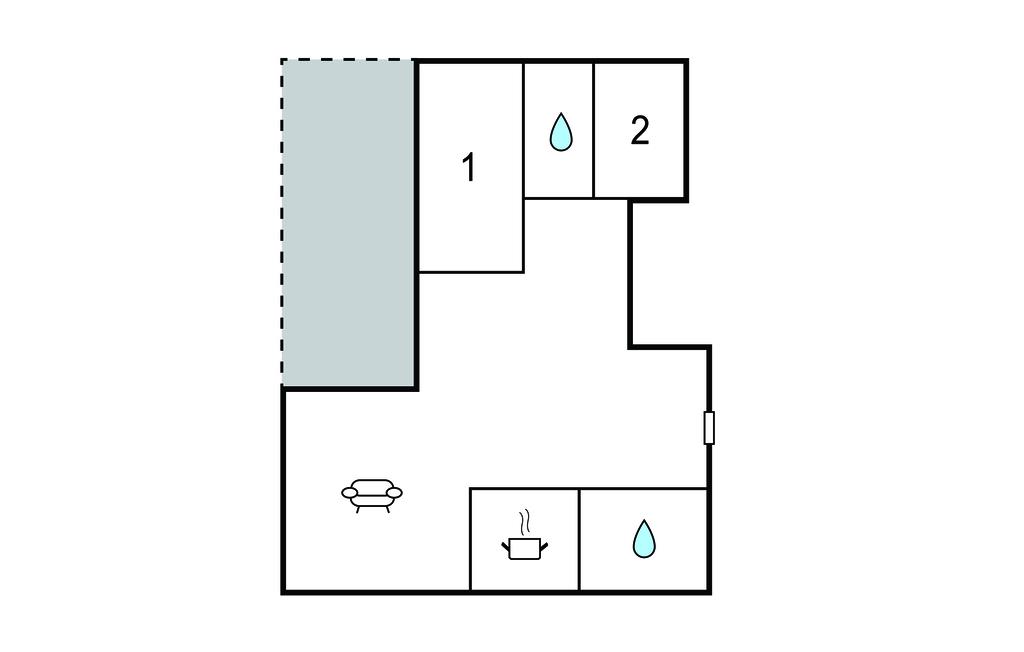 Spisestue - 2 Sovepladser. (Sofa, madras eller lignende).