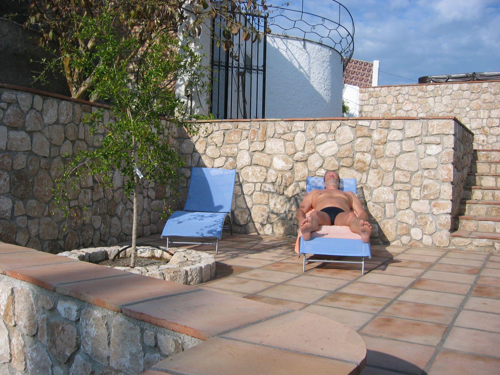 From all bedrooms there is access to the pool area with the completely secluded, heated swimming pool, which has its own surrounding terrace - ideal for lying in the sun and lazing on one of the house's many sunbeds. There is an outdoor shower. In 2011, the entire garden was renovated with numerous beautiful terraces. In the lower part of the garden there is evening sun. There are many old trees, most of which are fruit trees. In addition, we have roses, grapes and trees with grapefruit, avocado, oranges, plums and pomegranates. Around the villa there is a laundry room with washing machine and a small discreet terrace where you can dry your clothes naturally with Mediterranean breeze and sunshine. There is a closed garage with automatic gate and at street level there is a private off-road parking for another car.