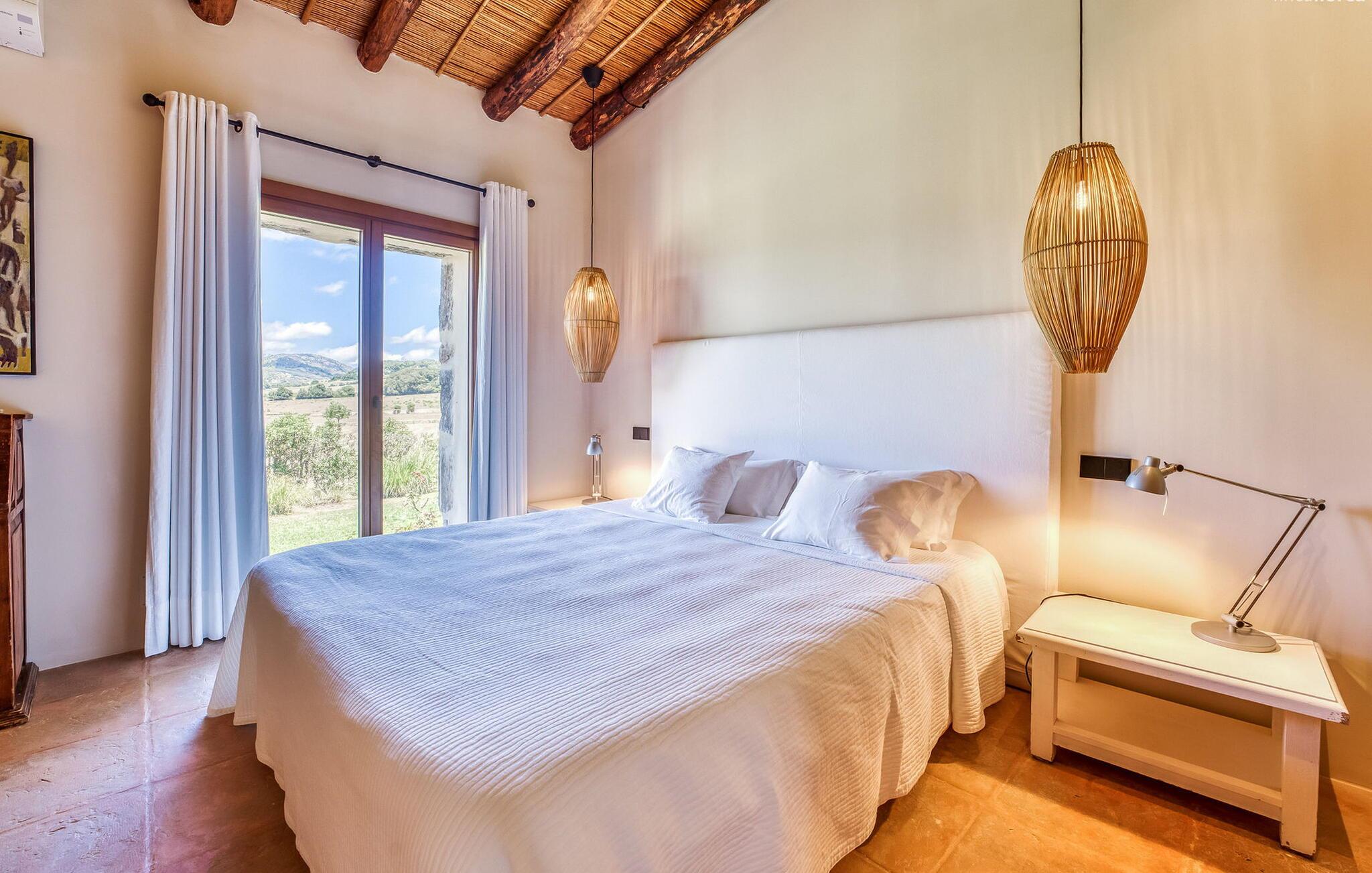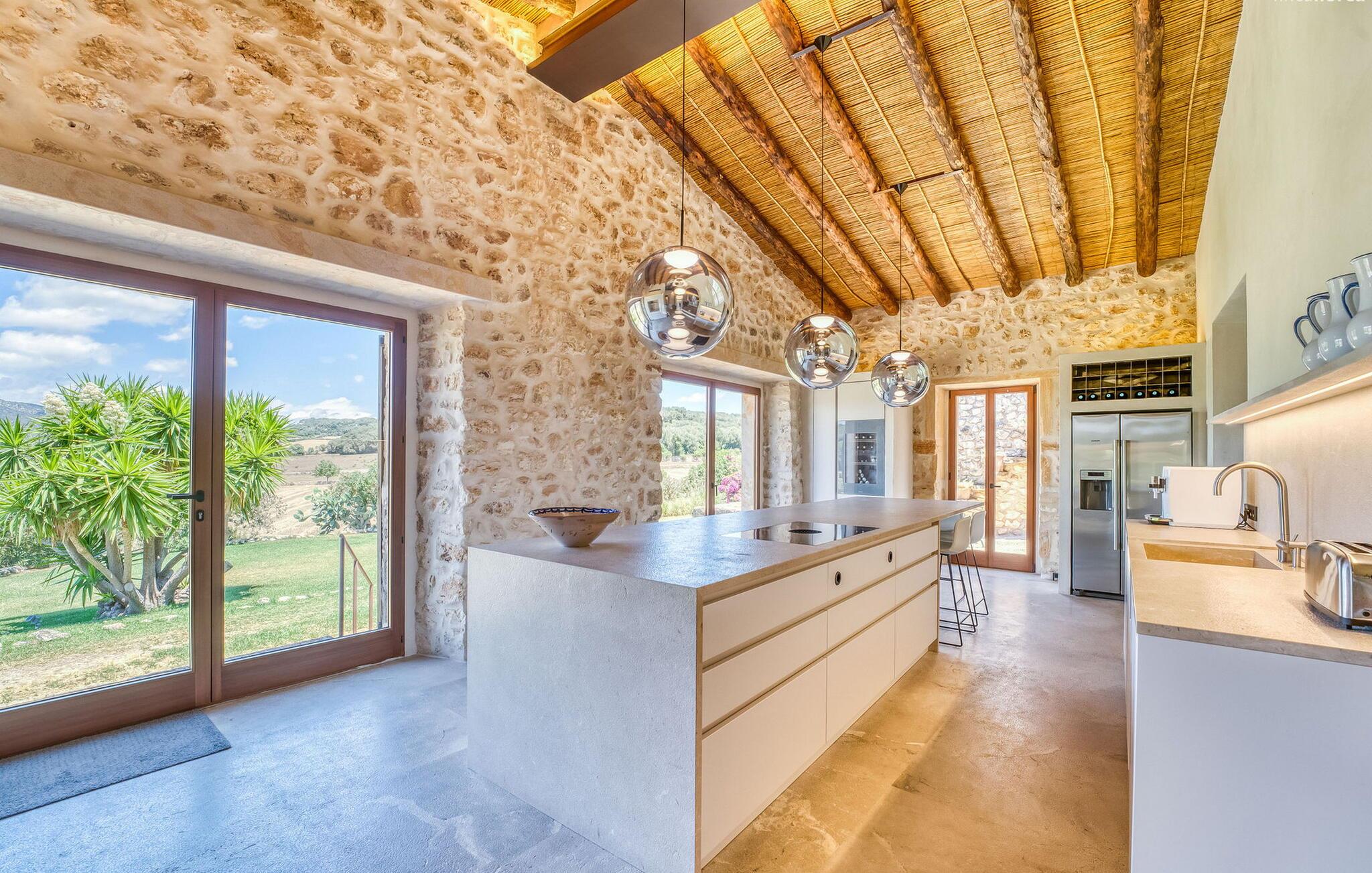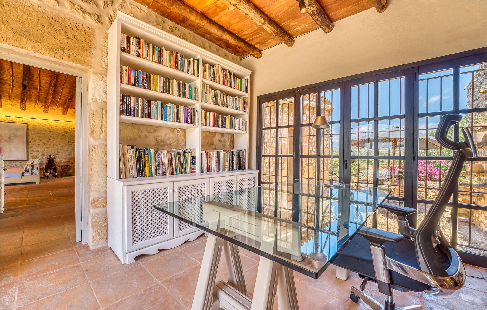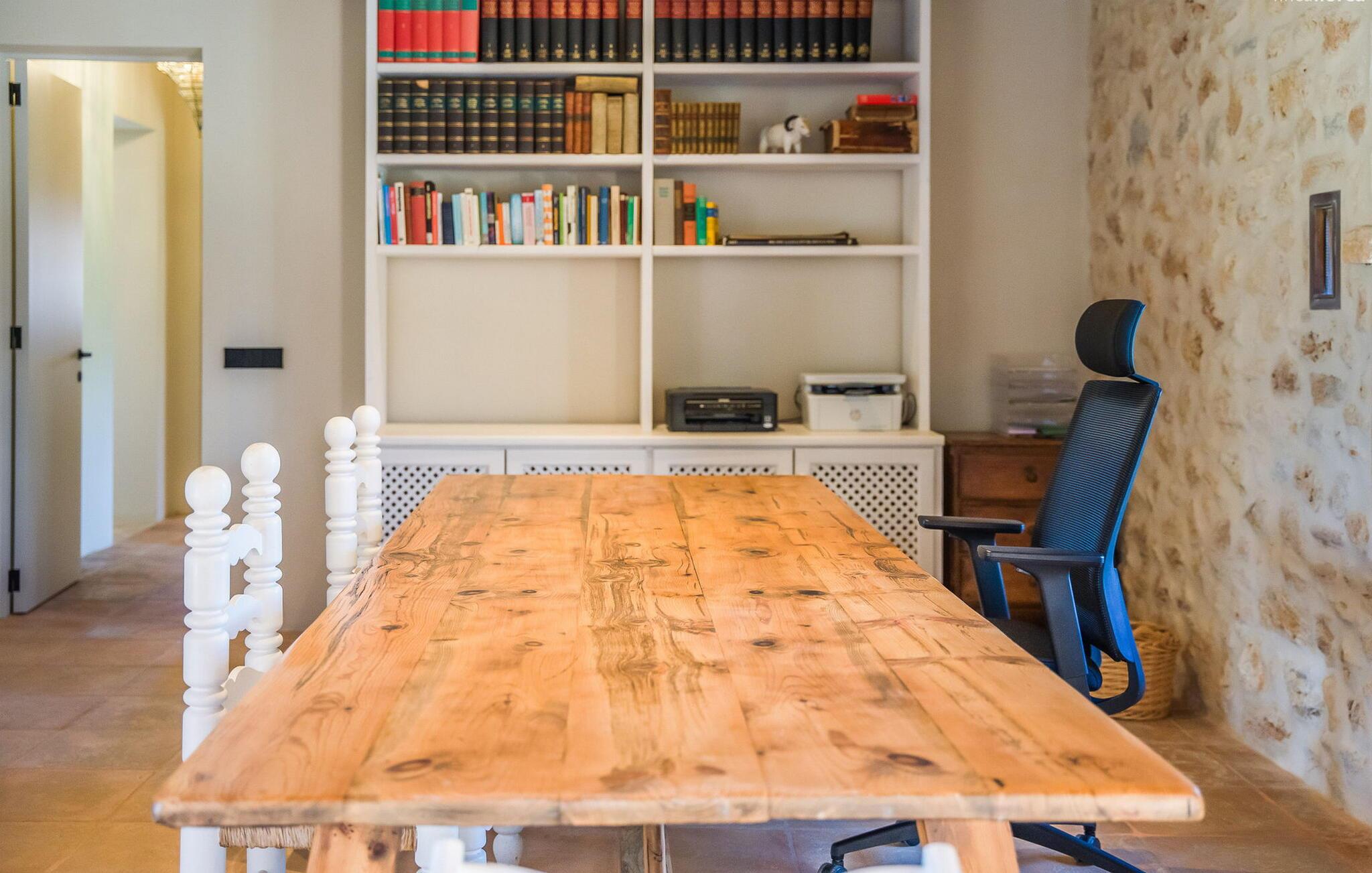 Slap af mellem bakker og marker på en 10.000 m² privat ejendom, slap af i en renoveret "komfortvilla" fra 1600-tallet, nyd livets solrige side eller undslipp de kolde vintermåneder - denne ejendom er ideel til alt. Udefra ligner det en ejendom, I har læst om i en historiebog, med gamle naturstensmure omgivet af bougainvillea. Interiøret er til gengæld moderne, elegant og udstyret med moderne teknologi som gulvvarme og radiatorer. En perle midt i et velholdt parklandskab er den buede svømmehal med sine 15 m lange baner, kun en kort gåtur fra huset. Her kan I slappe af jeres trætte ryg i fred på de solbeskinnede trappetrin og moderne liggestole eller måske endda nyde en udendørs massage under forteltet. Adgang til området gennem porte og mure minimerer risikoen for de små, der rejser med jer. I nærheden af huset finder I et rustikt udekøkken med indbygget grill, en vask og et træbord, som indbyder til magiske grillsessioner. En mobil gasgrill er også tilgængelig. Interiøret: Rummeligt, komfortabelt og unikt! Den store stue - en ombygget lade - sætter imponerende accenter med sit høje loft, gamle træbjælker, synlige stenvægge og hvide siddepladser. Hvem vil ikke gerne sidde i hjørnet af pejsen foran den brølende ild eller spise ved stearinlysets skær ved det lange træbord... Men køkkenet, der er bygget i en halvcirkelform et par trin lavere, er også et hyggeligt sted at sidde og nyde jeres morgenkaffe, mens I er inde, tænk roligt over avisen. Og mangler I et hjemmekontor på ferien, er I godt udstyret med det elegante kontorstudie med bibliotek, pejs, TV og WiFi. Opdelingen i tre dobbelt- og to enkeltværelser i hovedhuset gør det nemmere at rejse med familie og venner: Suite nr. 1 består af et dobbeltværelse, et enkeltværelse og separat adgang. Disse to soveværelser deler badeværelse med bruser og to håndvaske. Suite #2 er placeret bag kontorstudiet og har en stor dobbeltseng, walk-in closet, pengeskab og langt brusebad/badeværelse med dobbelt håndvask. Her kan I nyde solopgangen over markerne om morgenen. Suite nr. 3 (med kommode) er kun tilgængelig via haven. Suiten har eget badeværelse med bruser. Et gæstetoilet og et toilet giver ekstra komfort. Med Sant Llorenç des Cardassar, Porto Cristo og Manacor tilbyder Mallorcas østkyst feriegæster et 3-i-1 tilbud: land-, kyst- og shoppingture er nemme at nå fra Villa "Samu", MA-3323 tager jer hurtigt til jeres destination . Cykling og korte vandreture rundt i den rolige by, nyder friskfanget fisk i den historiske gamle bydel i den lille havneby eller slentrer gennem den omfattende gågade i ø-metropolen - alt dette gør en vellykket ferie farverig og varieret. Der er fire golfbaner i området (Golf Son Servera, Pula Golf og de grønne fairways i Canyamel og Capdepera). De smukke bugter i den østlige del af Mallorca kan nås på cirka 20-30 minutter: Playa de Muro, Son Serra de Marina, Cala Torta, Cala Mesquida, Costa des Pins, Cala Agulla, Cala Mendia, Cala Anguila, Porto Colom, Cala Sa Nau og Cala Mondrago. På den østlige del af øen, indlejret i en parklignende ejendom mellem Manacor og Sant Llorenç, finder I denne familievenlige villaresidens, der opfylder selv de højeste krav. På et kvarters kørsel kan I nå både byen og shoppingmetropolen, der er omkring 20 km til Artà, den lille havneby Porto Cristo og Badia d'Alcúdia. Med den omfattende strand Son Serra de Marina er denne bugt ideel til svømning og surfing, og vandreområdet omkring Betlem er tæt på.