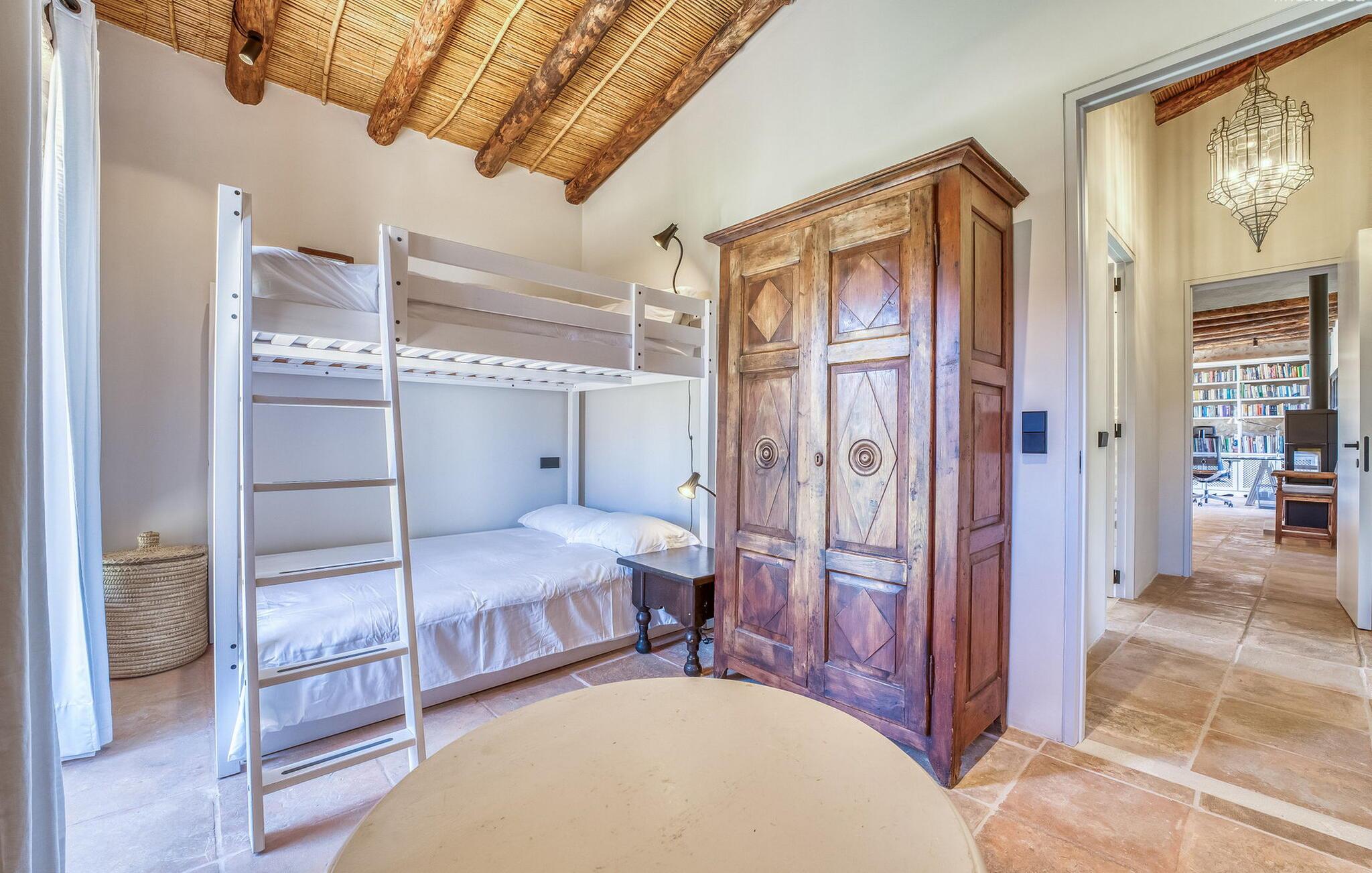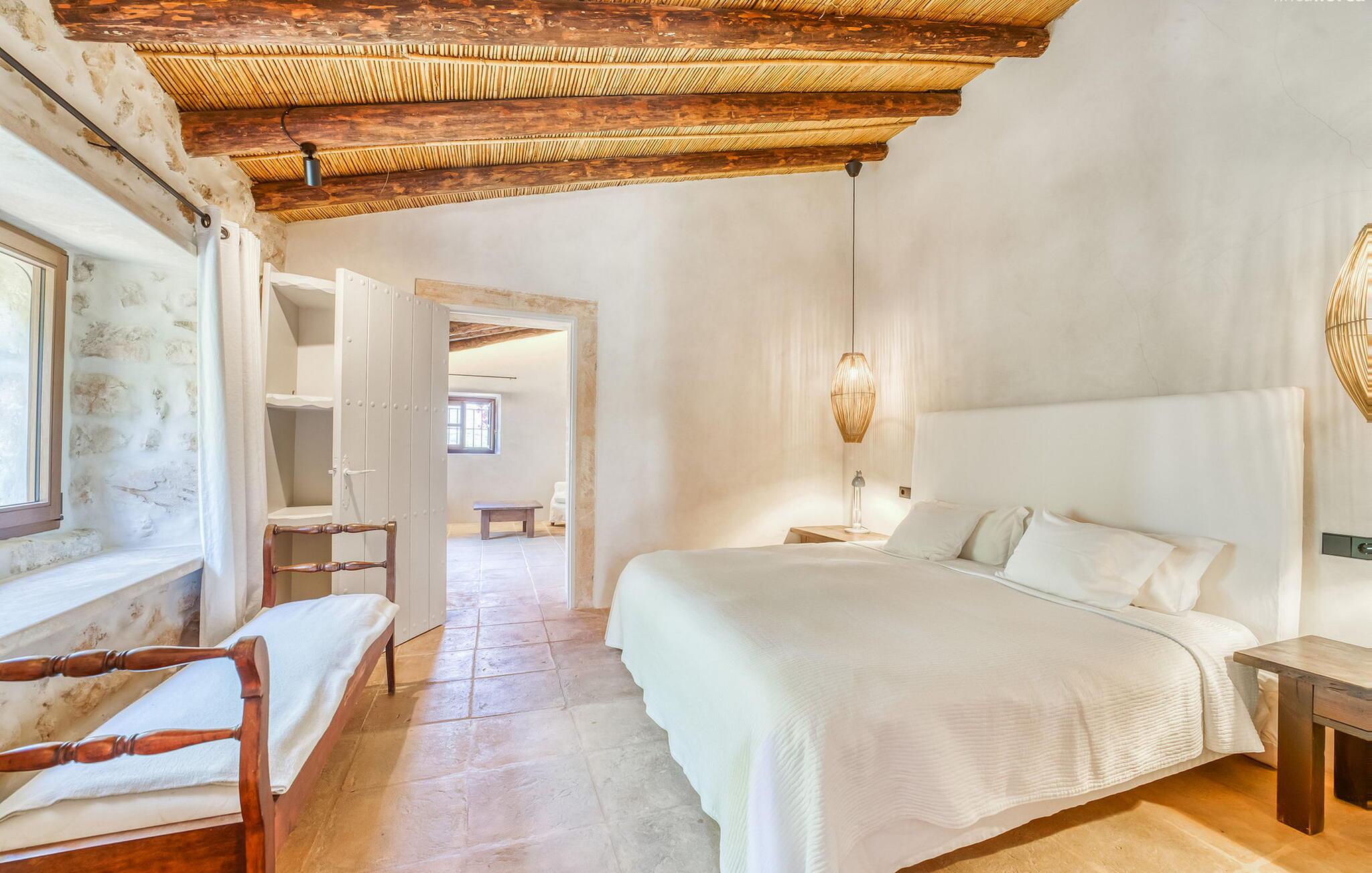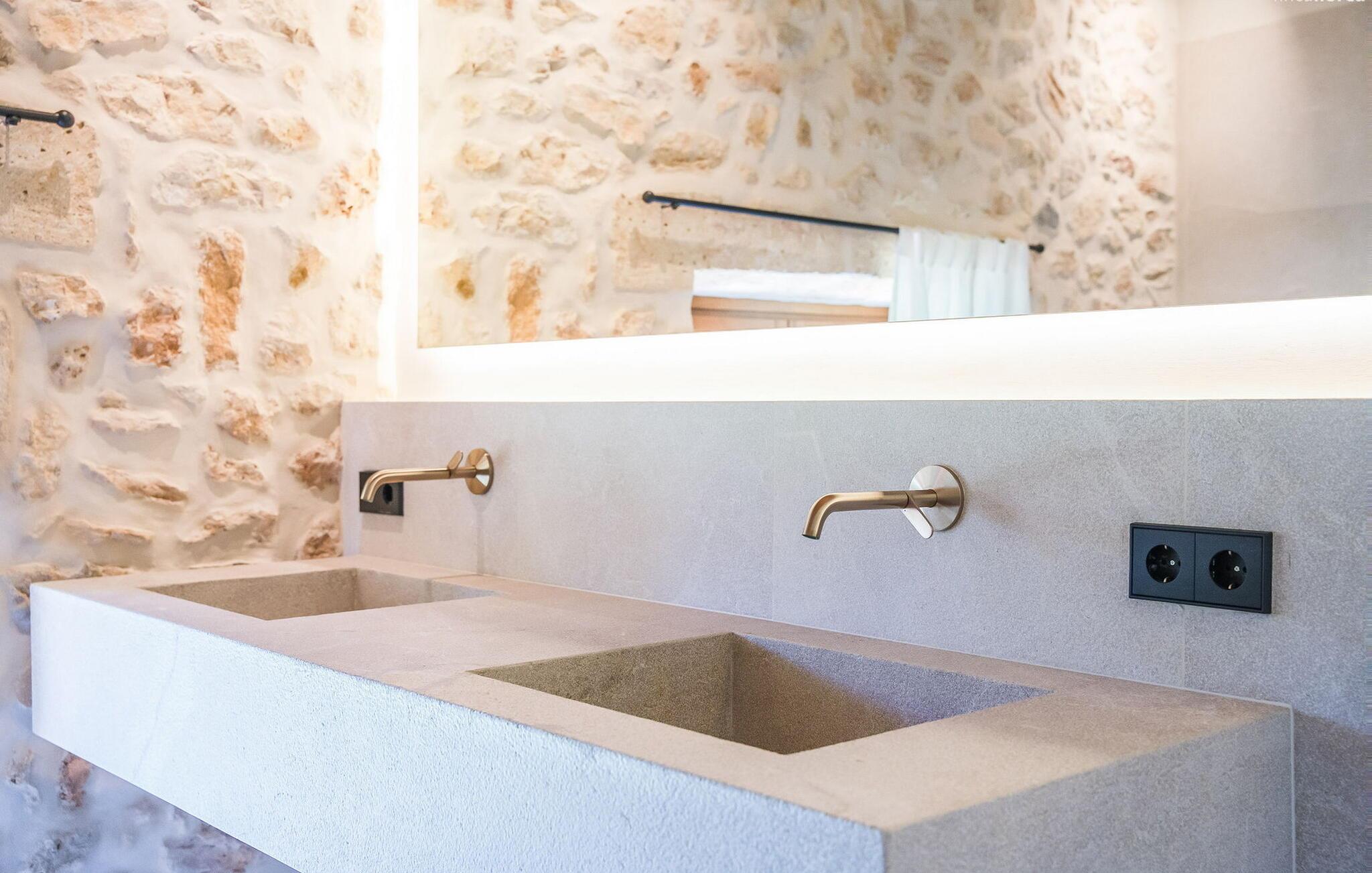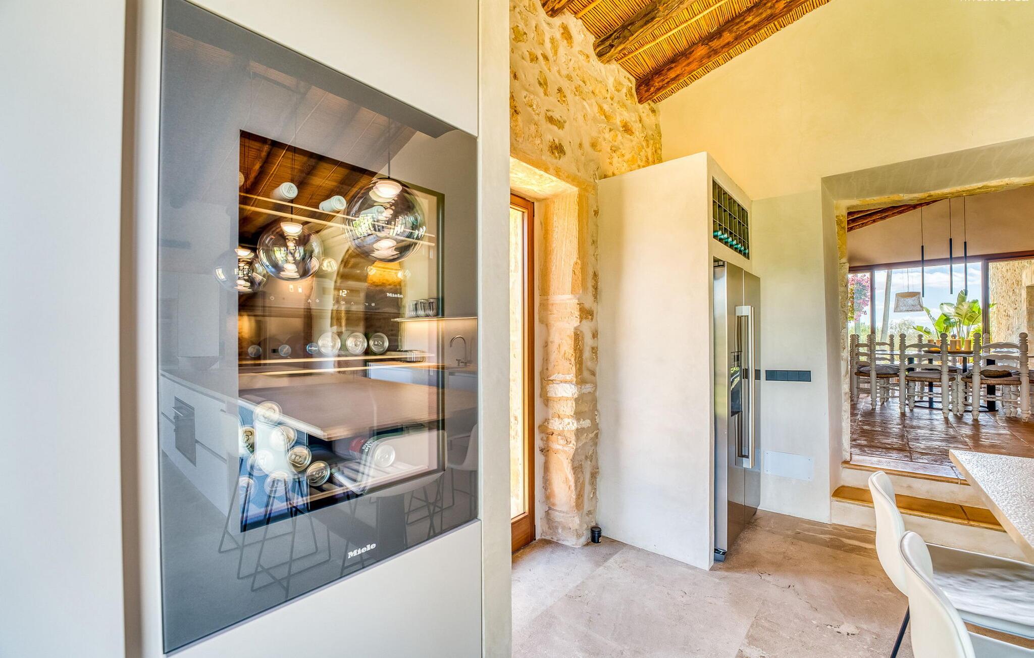 Slap af mellem bakker og marker på en 10.000 m² privat ejendom, slap af i en renoveret "komfortvilla" fra 1600-tallet, nyd livets solrige side eller undslipp de kolde vintermåneder - denne ejendom er ideel til alt. Udefra ligner det en ejendom, I har læst om i en historiebog, med gamle naturstensmure omgivet af bougainvillea. Interiøret er til gengæld moderne, elegant og udstyret med moderne teknologi som gulvvarme og radiatorer. En perle midt i et velholdt parklandskab er den buede svømmehal med sine 15 m lange baner, kun en kort gåtur fra huset. Her kan I slappe af jeres trætte ryg i fred på de solbeskinnede trappetrin og moderne liggestole eller måske endda nyde en udendørs massage under forteltet. Adgang til området gennem porte og mure minimerer risikoen for de små, der rejser med jer. I nærheden af huset finder I et rustikt udekøkken med indbygget grill, en vask og et træbord, som indbyder til magiske grillsessioner. En mobil gasgrill er også tilgængelig. Interiøret: Rummeligt, komfortabelt og unikt! Den store stue - en ombygget lade - sætter imponerende accenter med sit høje loft, gamle træbjælker, synlige stenvægge og hvide siddepladser. Hvem vil ikke gerne sidde i hjørnet af pejsen foran den brølende ild eller spise ved stearinlysets skær ved det lange træbord... Men køkkenet, der er bygget i en halvcirkelform et par trin lavere, er også et hyggeligt sted at sidde og nyde jeres morgenkaffe, mens I er inde, tænk roligt over avisen. Og mangler I et hjemmekontor på ferien, er I godt udstyret med det elegante kontorstudie med bibliotek, pejs, TV og WiFi. Opdelingen i tre dobbelt- og to enkeltværelser i hovedhuset gør det nemmere at rejse med familie og venner: Suite nr. 1 består af et dobbeltværelse, et enkeltværelse og separat adgang. Disse to soveværelser deler badeværelse med bruser og to håndvaske. Suite #2 er placeret bag kontorstudiet og har en stor dobbeltseng, walk-in closet, pengeskab og langt brusebad/badeværelse med dobbelt håndvask. Her kan I nyde solopgangen over markerne om morgenen. Suite nr. 3 (med kommode) er kun tilgængelig via haven. Suiten har eget badeværelse med bruser. Et gæstetoilet og et toilet giver ekstra komfort. Med Sant Llorenç des Cardassar, Porto Cristo og Manacor tilbyder Mallorcas østkyst feriegæster et 3-i-1 tilbud: land-, kyst- og shoppingture er nemme at nå fra Villa "Samu", MA-3323 tager jer hurtigt til jeres destination . Cykling og korte vandreture rundt i den rolige by, nyder friskfanget fisk i den historiske gamle bydel i den lille havneby eller slentrer gennem den omfattende gågade i ø-metropolen - alt dette gør en vellykket ferie farverig og varieret. Der er fire golfbaner i området (Golf Son Servera, Pula Golf og de grønne fairways i Canyamel og Capdepera). De smukke bugter i den østlige del af Mallorca kan nås på cirka 20-30 minutter: Playa de Muro, Son Serra de Marina, Cala Torta, Cala Mesquida, Costa des Pins, Cala Agulla, Cala Mendia, Cala Anguila, Porto Colom, Cala Sa Nau og Cala Mondrago. På den østlige del af øen, indlejret i en parklignende ejendom mellem Manacor og Sant Llorenç, finder I denne familievenlige villaresidens, der opfylder selv de højeste krav. På et kvarters kørsel kan I nå både byen og shoppingmetropolen, der er omkring 20 km til Artà, den lille havneby Porto Cristo og Badia d'Alcúdia. Med den omfattende strand Son Serra de Marina er denne bugt ideel til svømning og surfing, og vandreområdet omkring Betlem er tæt på.