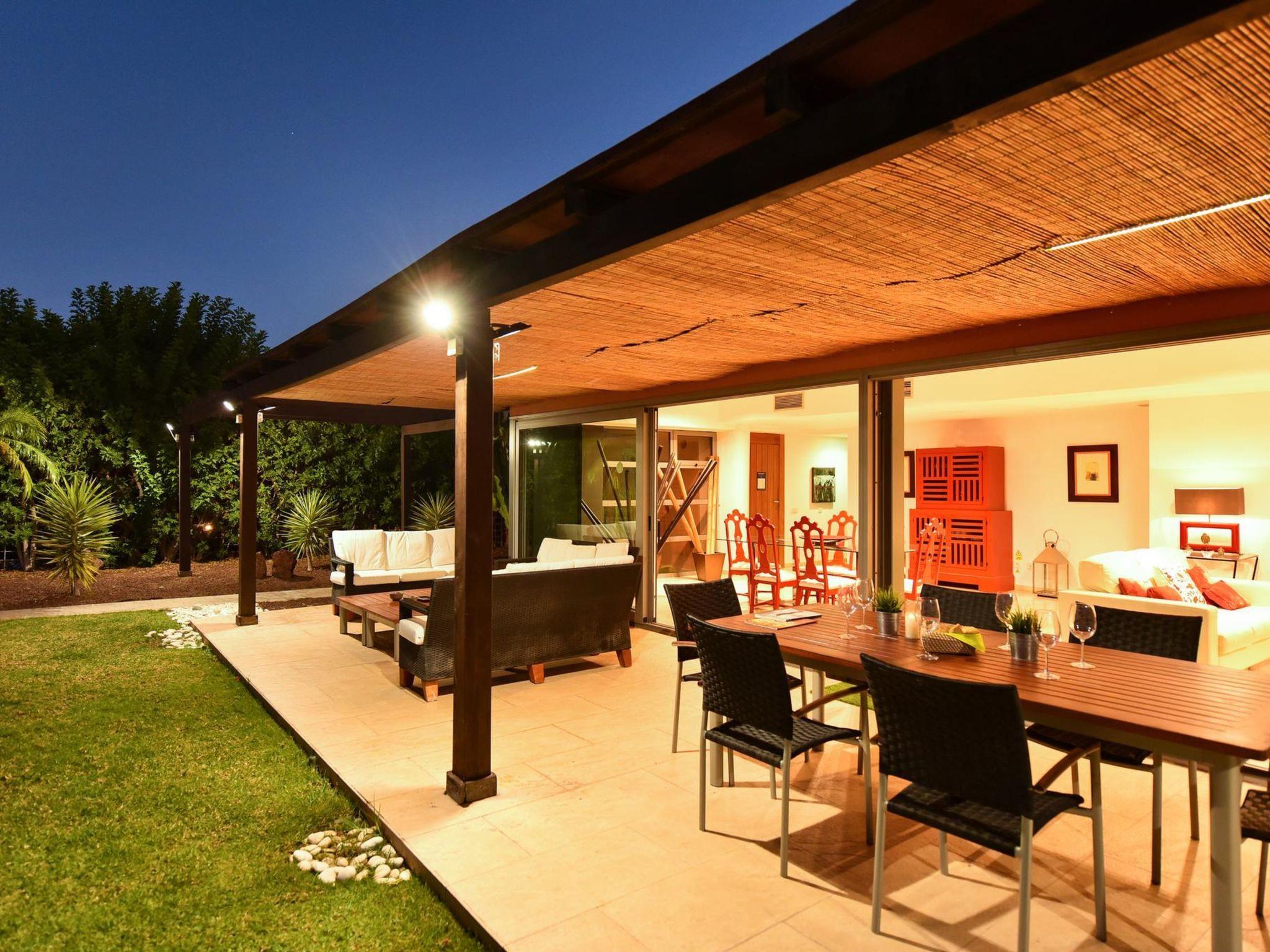 "Salobre Villa 3", 4-room house 200 m2. Comfortable and cosy furnishings: living/dining room with dining table, digital TV and air conditioning. Exit to the patio, to the swimming pool. 1 room with 2 beds, shower/bidet/WC and air conditioning. Exit to the garden. Kitchen-/living room (oven, dishwasher, 3 ceramic glass hob hotplates, toaster, kettle, microwave, freezer, electric coffee machine) with dining table. Sep. WC. Upper floor: 2 rooms, each room with 2 beds, shower/WC and air conditioning. Patio. Terrace furniture, barbecue, deck chairs. View of the mountains and golf course. Facilities: washing machine, safe, iron, children's high chair, baby cot for up to 2 year olds, hair dryer. Internet (WiFi, free). Parking (1 car). Maximum 1 pet/ dog allowed. 2024-T16459