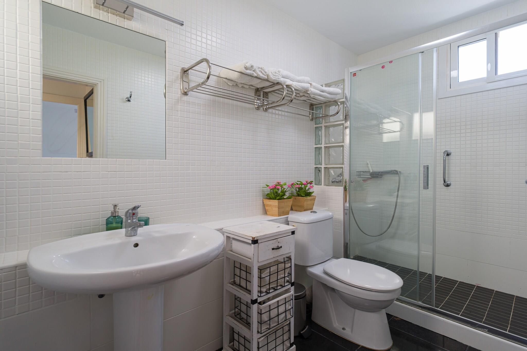 Denne charmerende bungalow tilbyder et roligt tilflugtssted i et fredeligt boligkompleks, komplet med en fælles pool og tennisbane. Ejendommen har et soveværelse med en dobbeltseng og loftsventilator samt en sovesofa i opholds-/spiseområdet, der kan rumme yderligere to gæster. Med højhastigheds-Wi-Fi, et smart-tv med internationale kanaler, aircondition i stuen og et fuldt udstyret køkken med opvaskemaskine og vaskemaskine giver denne bungalow et komfortabelt og moderne ophold. Den private terrasse med spiseplads og grill er ideel til udendørs måltider og afslapning. Det er også kæledyrsvenligt og tillader én hund mod et ekstra gebyr, hvilket gør det perfekt til familier eller små grupper. Beliggende i et roligt område, er bungalowen kun 200 meter fra et supermarked og restauranter, som tilbyder nem adgang til daglige fornødenheder. Et indkøbscenter, bowlingbane og ferieattraktioner som Holiday World ligger kun 600 meter væk. Golfentusiaster vil sætte pris på at være kun 950 meter fra den nærmeste golfbane. For strandelskere ligger den smukke Maspalomas-strand kun 3,5 km væk, og lufthavnen ligger 30 minutters kørsel fra ejendommen. Det omkringliggende område byder på et udvalg af restauranter, caféer og barer, der byder på masser af spise- og underholdningsmuligheder. Indvendigt er bungalowen designet med materialer i topkvalitet og store vinduer, der tillader masser af naturligt lys at fylde rummet. Køkkenet er fuldt udstyret, hvilket gør det nemt for gæsterne at tilberede måltider, når det passer dem.