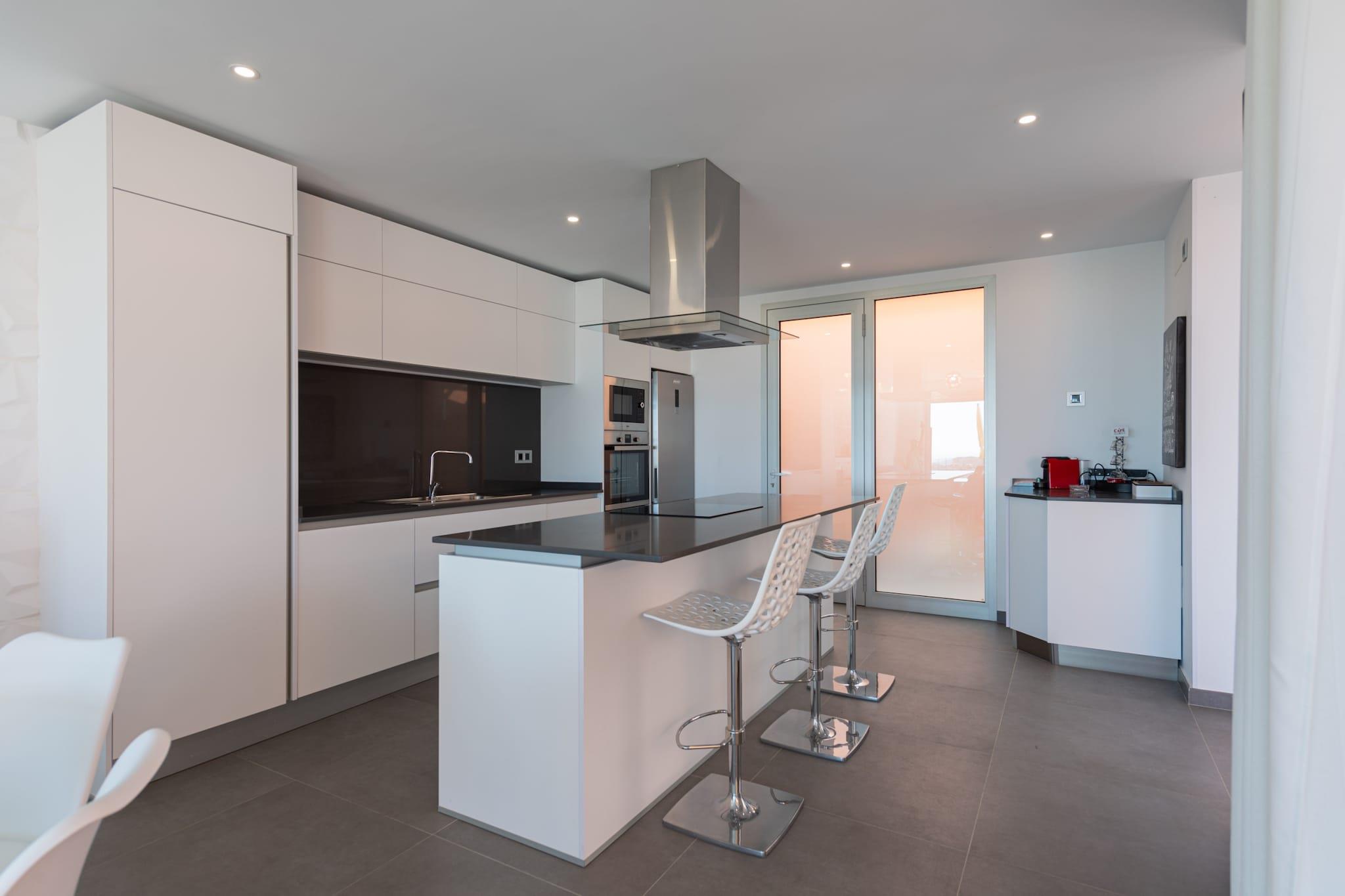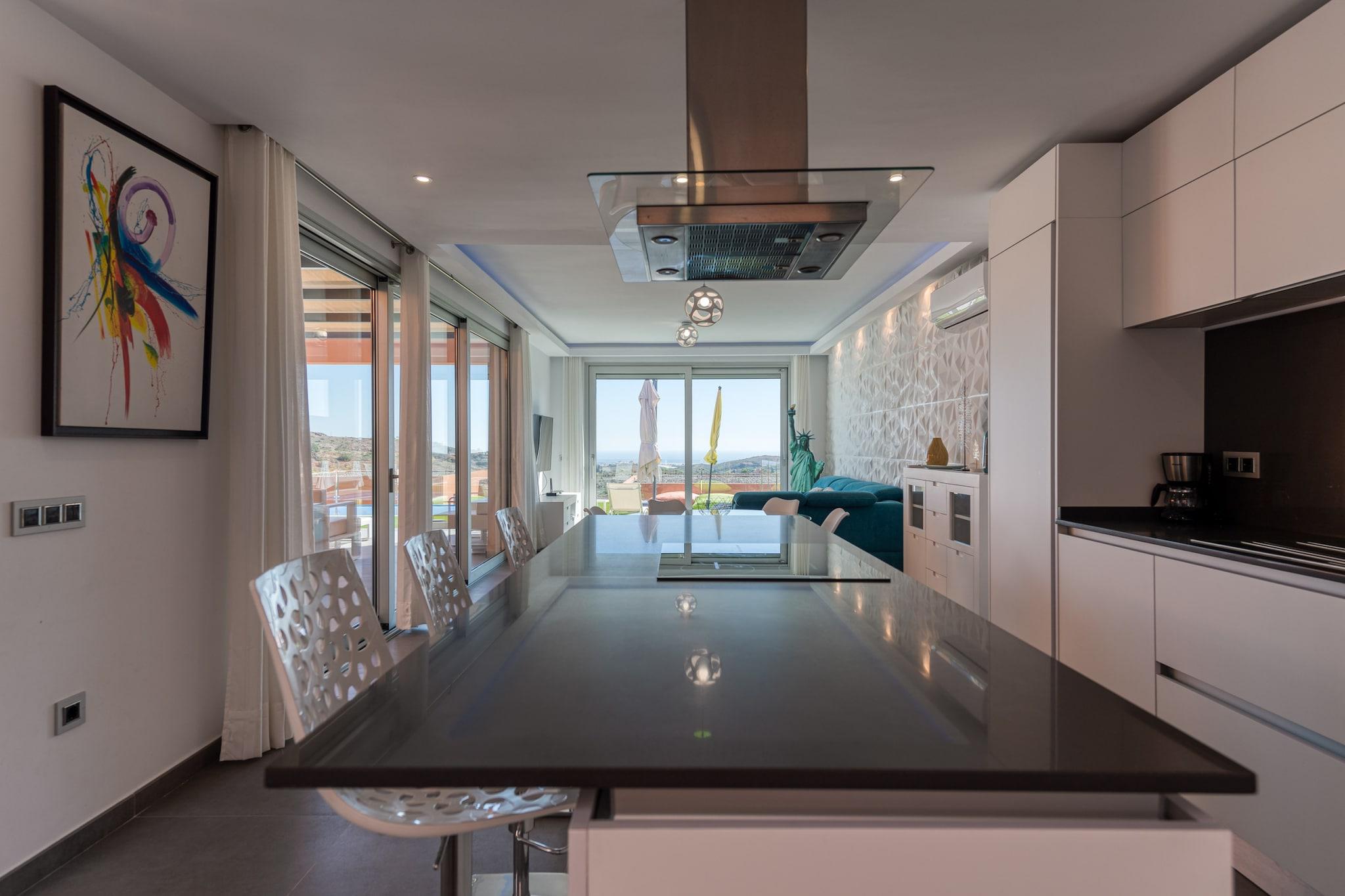 Åbent køkken(elkedel, brødrister, kaffemaskine, ovn, mikrobølgeovn, opvaskemaskine , køleskab, fryser, ), stue / spisestue(Fjernsyn, spisebord, sofahjørne), Soveværelse med badeværelse(dobbeltseng, bruser), Soveværelse med badeværelse(enkeltseng, enkeltseng, bruser), Soveværelse med badeværelse(enkeltseng, enkeltseng, bruser), Internetadgang, Havemøbler, Fjernsyn, tremmeseng, vaskemaskine, terrasse, have(indhegnet), have, solstole, grill, parkering, swimmingpool(privat, opvarmet), barnestol, strygejern, føntørrer, Mountain view, Sea view