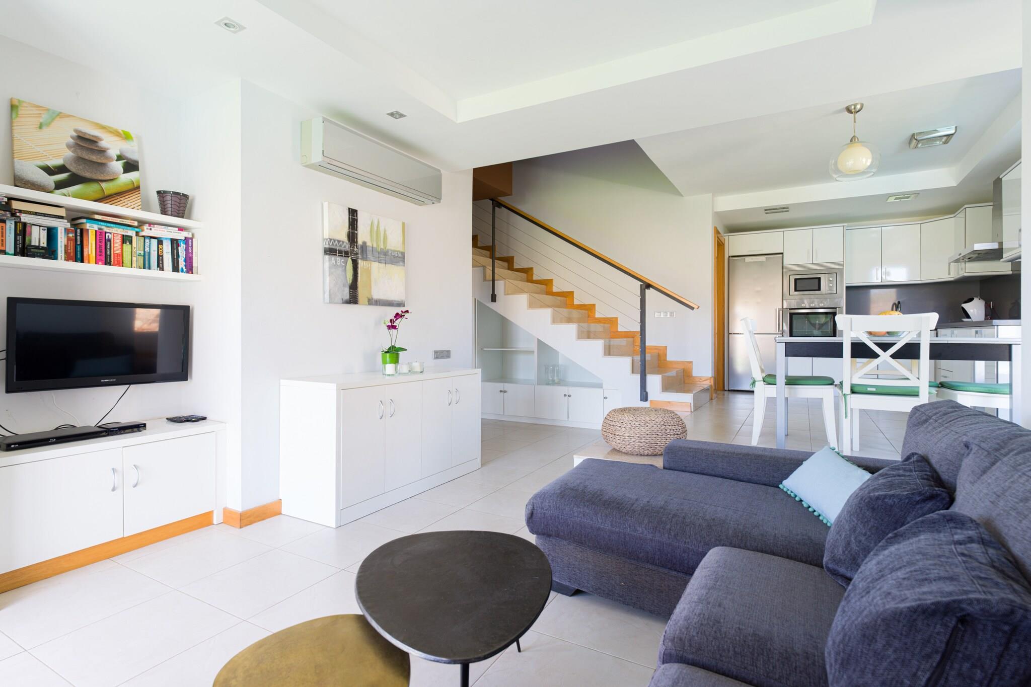 Stueetage: (åbent køkken(elkedel, brødrister, kaffemaskine, ovn, mikrobølgeovn, opvaskemaskine , køleskab, fryser, ), stue / spisestue(Fjernsyn, spisebord, sofahjørne), soveværelse(dobbeltseng), badeværelse(bruser), Internetadgang) På 1. etage: (soveværelse(enkeltseng, enkeltseng), badeværelse(bruser)) Havemøbler, tørretumbler, vaskemaskine, klimaanlæg, terrasse, have(indhegnet), grill, parkering, swimmingpool(privat, opvarmet), strygejern, føntørrer