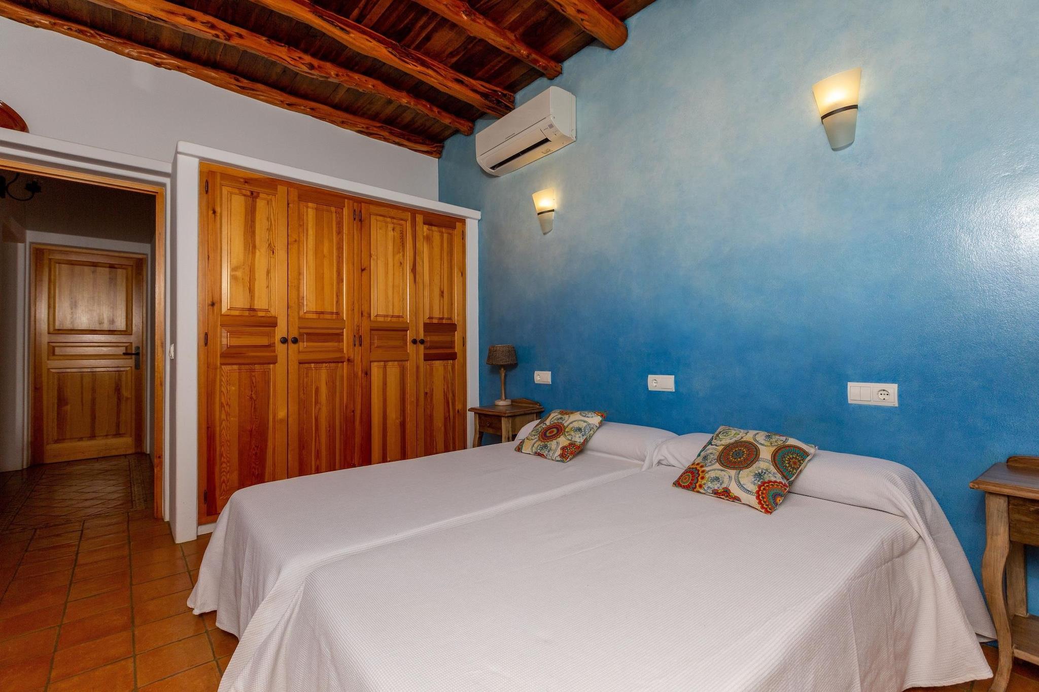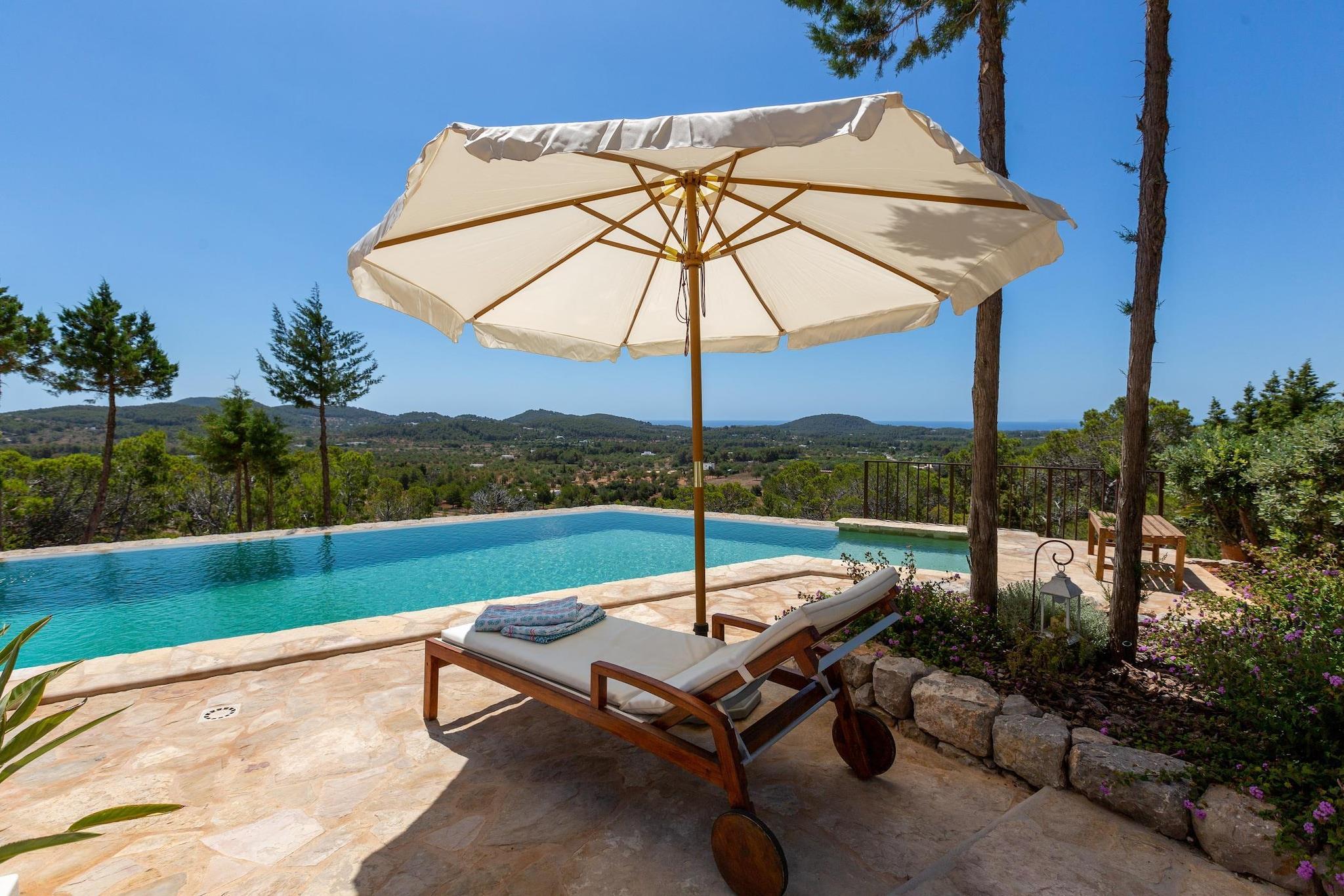 Smukt landsted bygget i stil med de gamle bondehuse, med tykke hvide vægge og lofter af sabinatræ. Det er det ideelle sted at slappe af og udforske denne rolige del af øen. Dette feriehus ligger på toppen af en bakke i et landligt område nær San Carlos. Selvom det kan virke meget isoleret, tager det kun et par minutter i bil at nå landsbyen og Santa Eulalia. Det er meget tæt på nogle af strandene i øst, såsom Aguas Blancas, Cala Llenya, Es Figueral og Cala Boix. Da landstedet ligger på et højere niveau, har det en fantastisk panoramaudsigt over øen og havet. Landstedet har en rummelig og lys stue og spisestue samt køkken. Der er også et vaskerum og et spisekammer. Der er også 3 soveværelser med dobbeltsenge, to komplette badeværelser, et med bruser og et med badekar. Alle tre soveværelser har aircondition. Køkkenet har et stort gaskomfur, opvaskemaskine og er fuldt udstyret. Derudover har det en separat hane til drikkevand. Køkkenet har adgang til den private pool. Stuen har en komfortabel sofa med chaiselong, satellit-tv og yderligere adgang til terrassen. Grunden omkring huset er stor og eksklusiv, uden naboer i nærheden. Ud over den private pool er der også et legeområde med legehuse. Der er også en overdækket terrasse med grill og spiseplads. Ideelt for familier, romantiske øjeblikke eller bare for at nyde en fredelig ferie i et unikt miljø. Kæledyr: Gæster skal kontakte HO for priser og tilgængelighed.