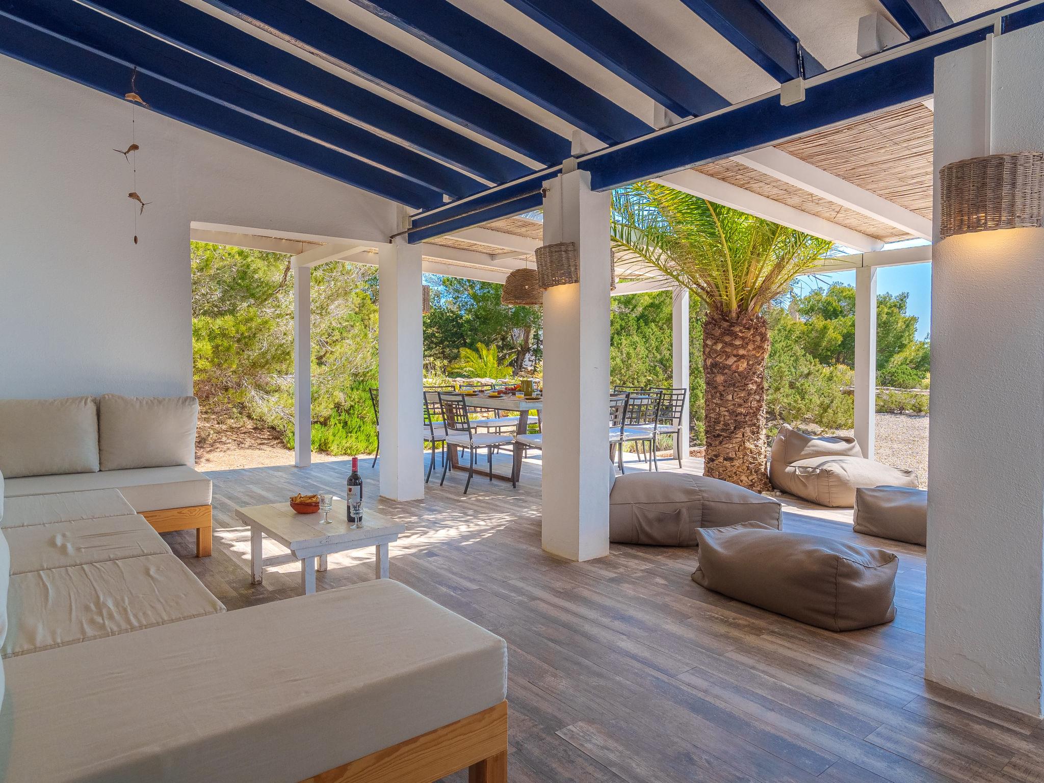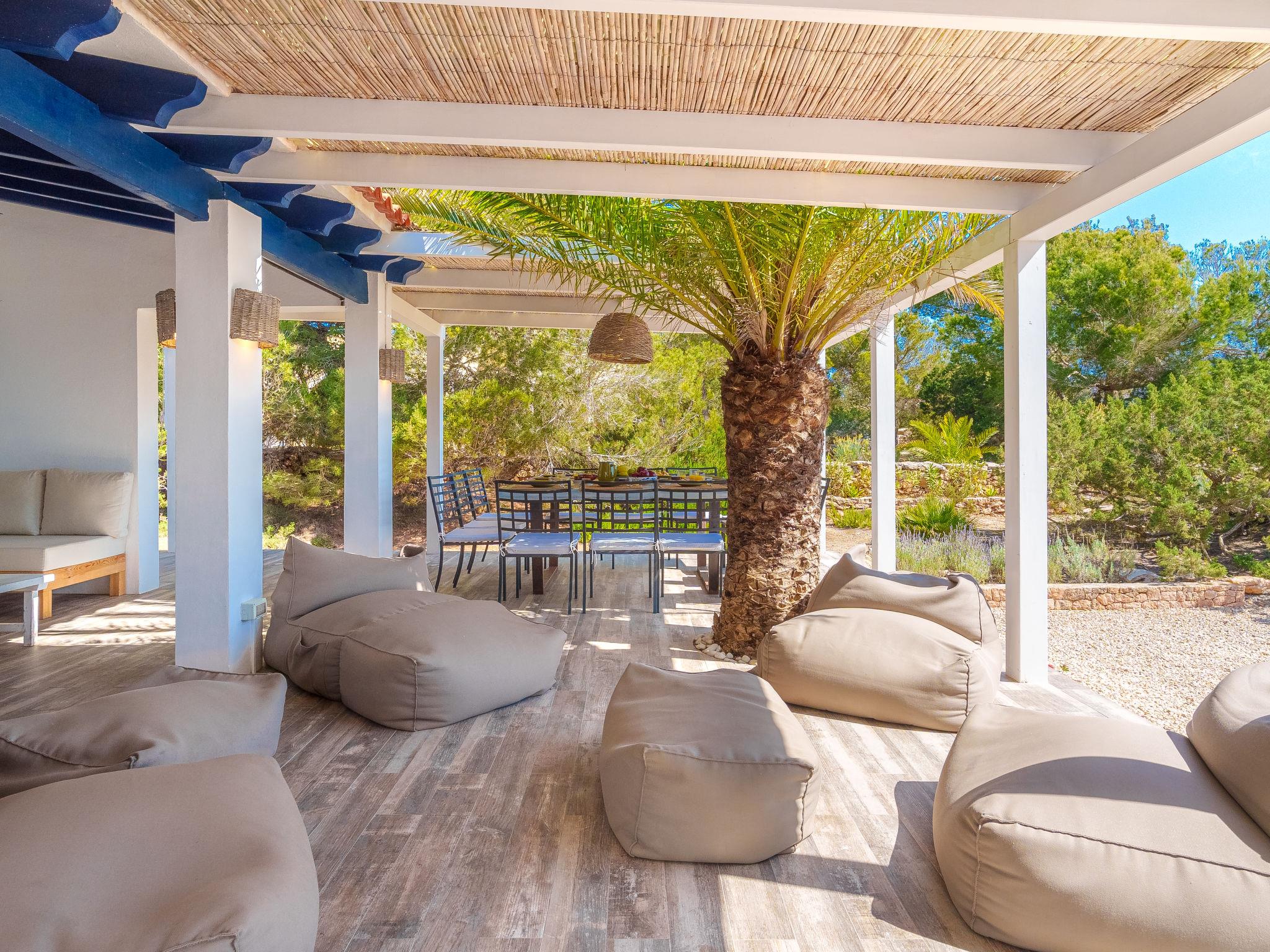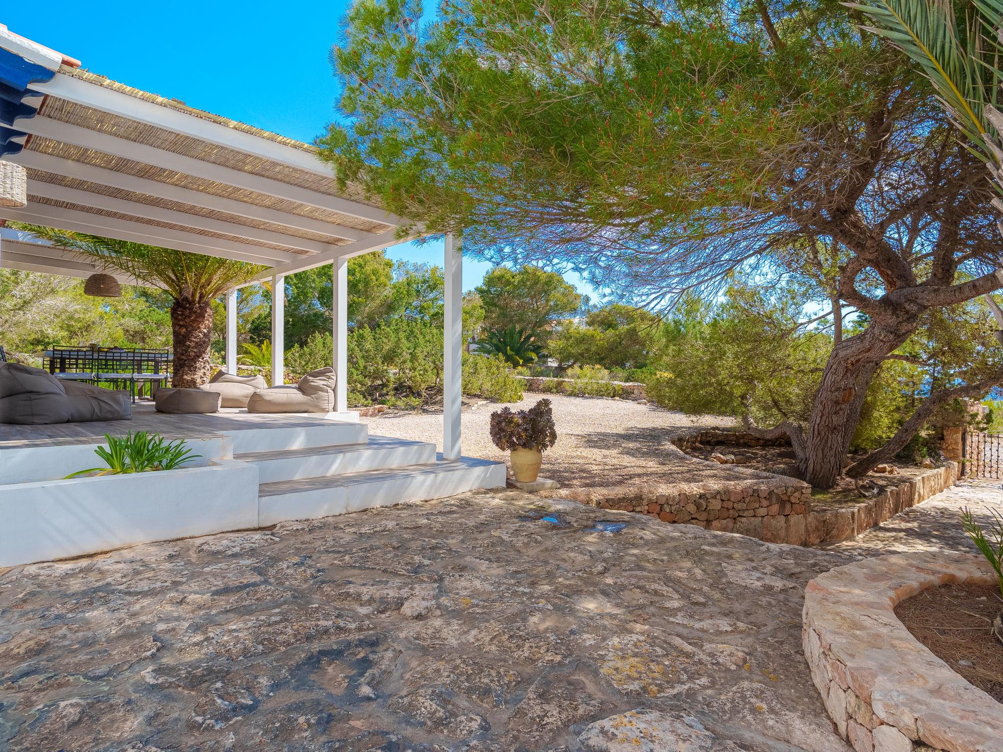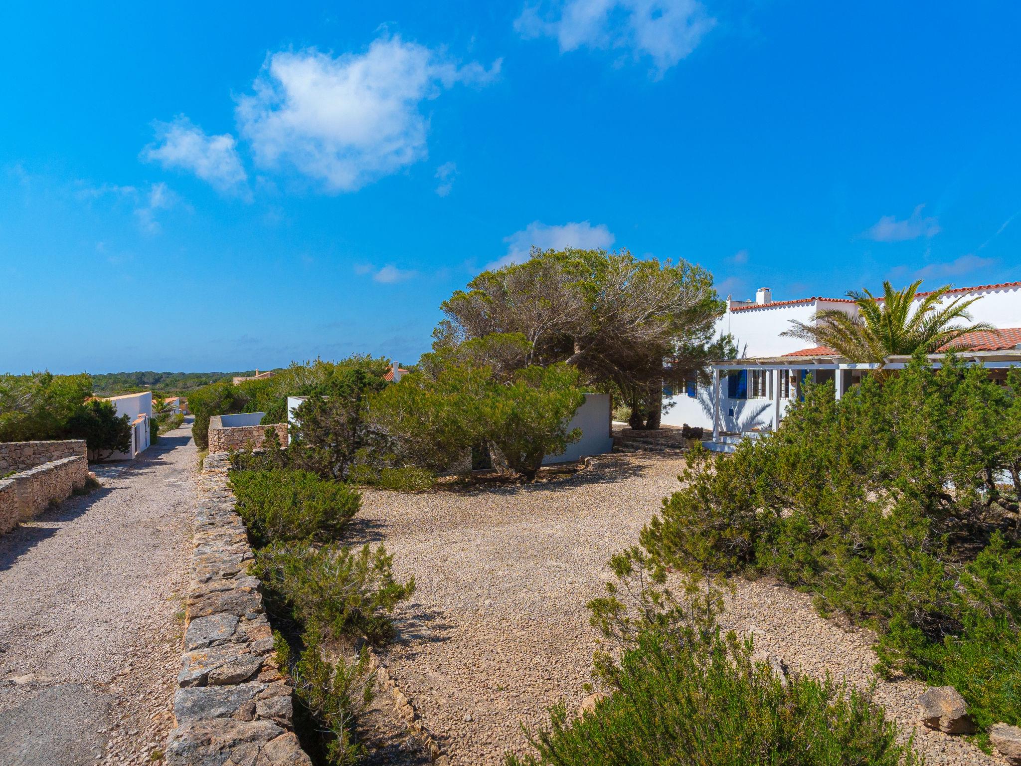 Formentera 1 km from Sant Ferran: Beautiful, comfortable villa "Casa Rubi", surrounded by trees. On the outskirts, 1 km from the centre of Sant Ferran, in a quiet, sunny position, traffic calmed area, 100 m from the edge of the forest, 150 m from the sea, east facing position. Private: 1'000 m2, natural garden, lawn for sunbathing, beautiful garden to relax, swimming pool angular (10 x 4 m, 40 m2, depth 130 - 160 cm, seasonal availability: 01.May. - 30.Sep.). Shower/WC in the pool area, patio, arbour, pergola (90 m2), garden furniture, barbecue. In the house: internet access, WiFi, washing machine. Parking at the house on the premises. Shop 2 km, grocery 2 km, supermarket 2 km, restaurant 2 km, bar 2 km, bakery 2 km, café 2 km, 15 minute walk to the centre, bus stop "Sant Ferran" 2 km, ferry "La Savina" 5 km, sandy beach "Illetes" 7 km, rocky beach "Cala en Baster" 50 m (small). Sports harbour 6 km, marina 6 km, walking paths from the house, cycle lane 100 m. Nearby attractions: Playa de Ses Illetes 8 km, Es Cap de Barbaria 7 km, Cala Saona 9 km, Platja de Migjorn 4 km. Hiking paths: Sant Ferrán-Ses Roques-cala En Baster 100 m. Please note: car recommended. Suitable for seniors baby equipment on request (included). Object suitable for 10 adults. The owner does not accept any youth groups. Loading and unloading of baggage is possible at the holiday house. Neighbourhood highly sensitive to noise. Quietness and good behaviour expected.