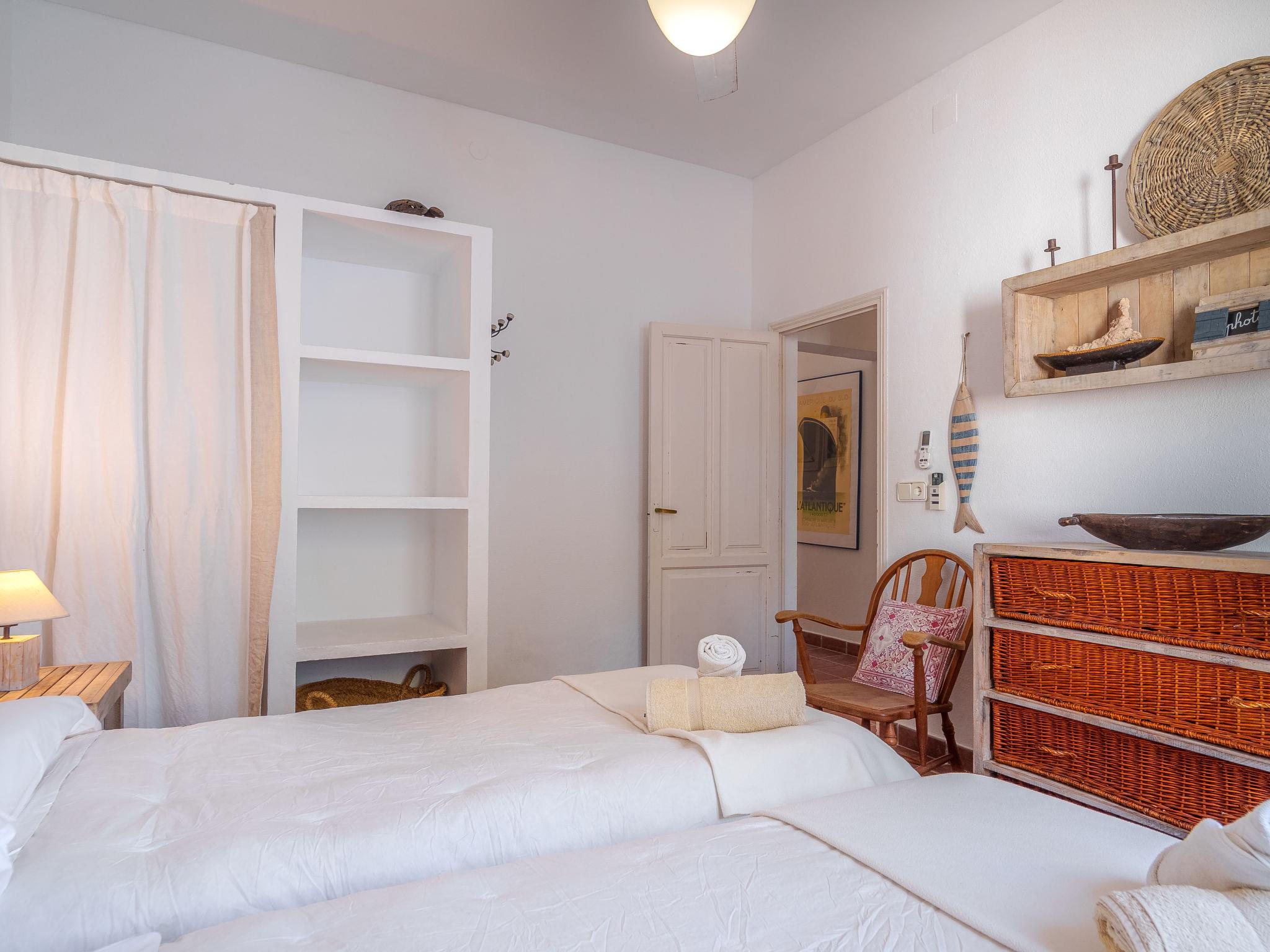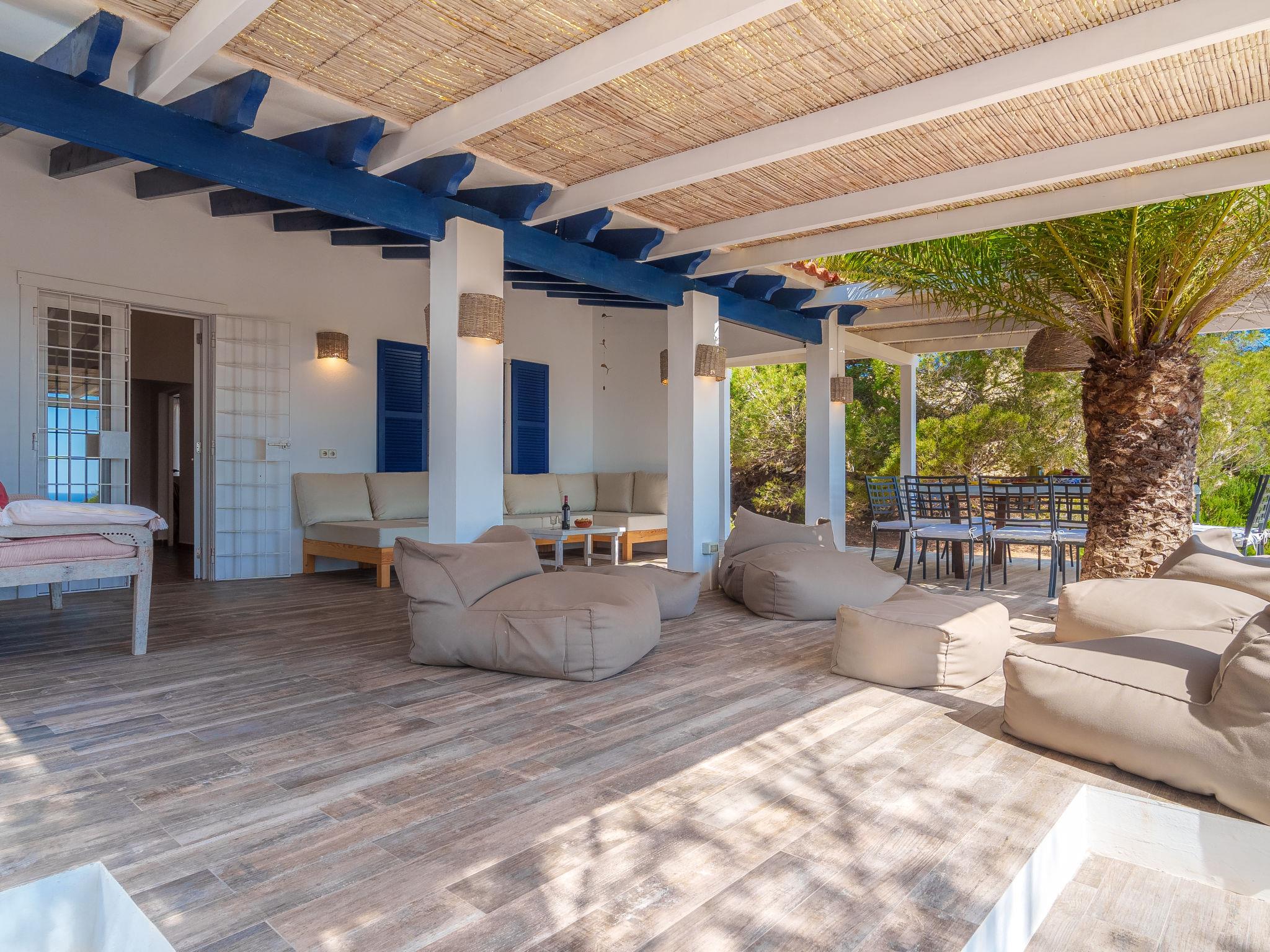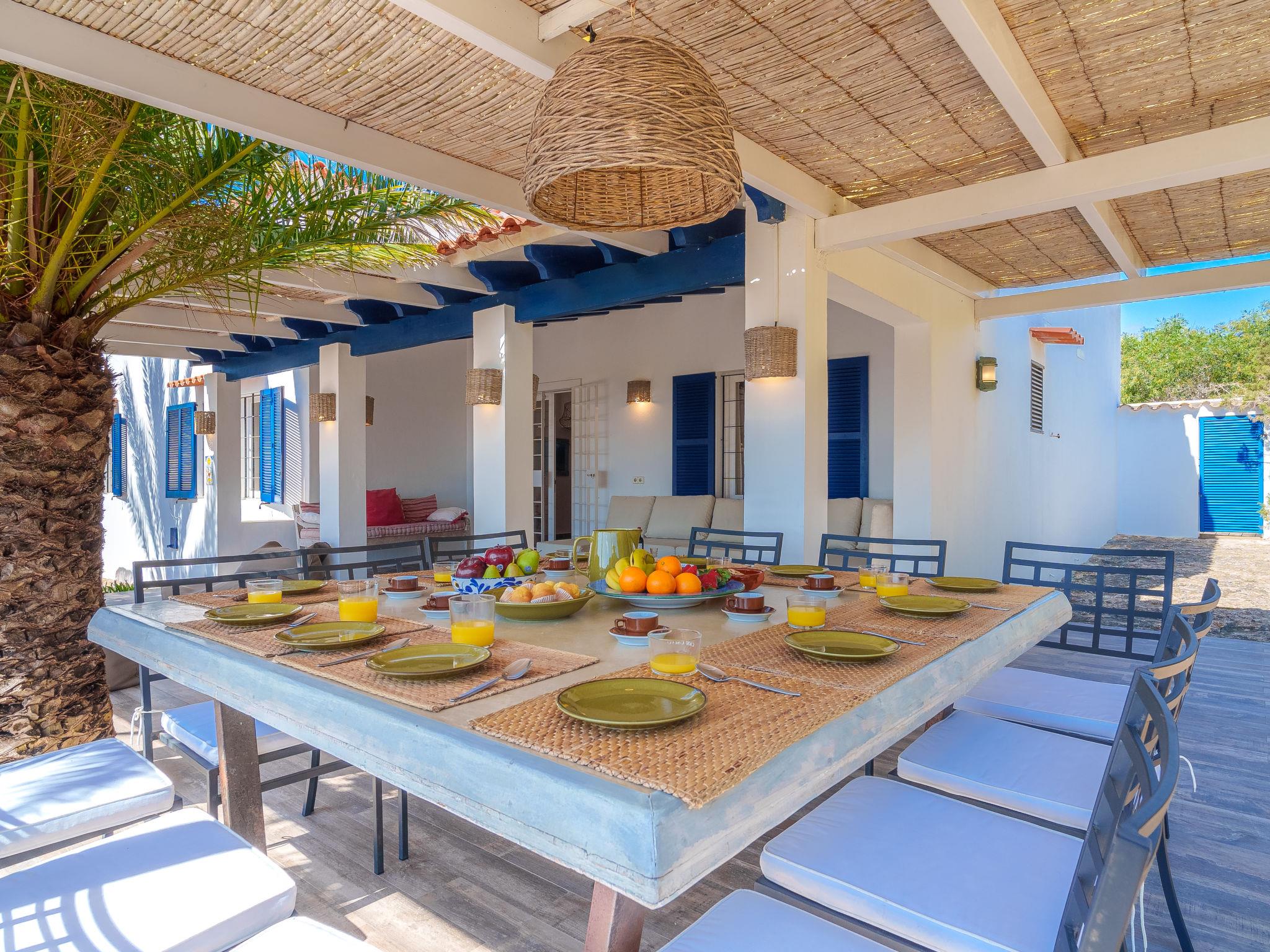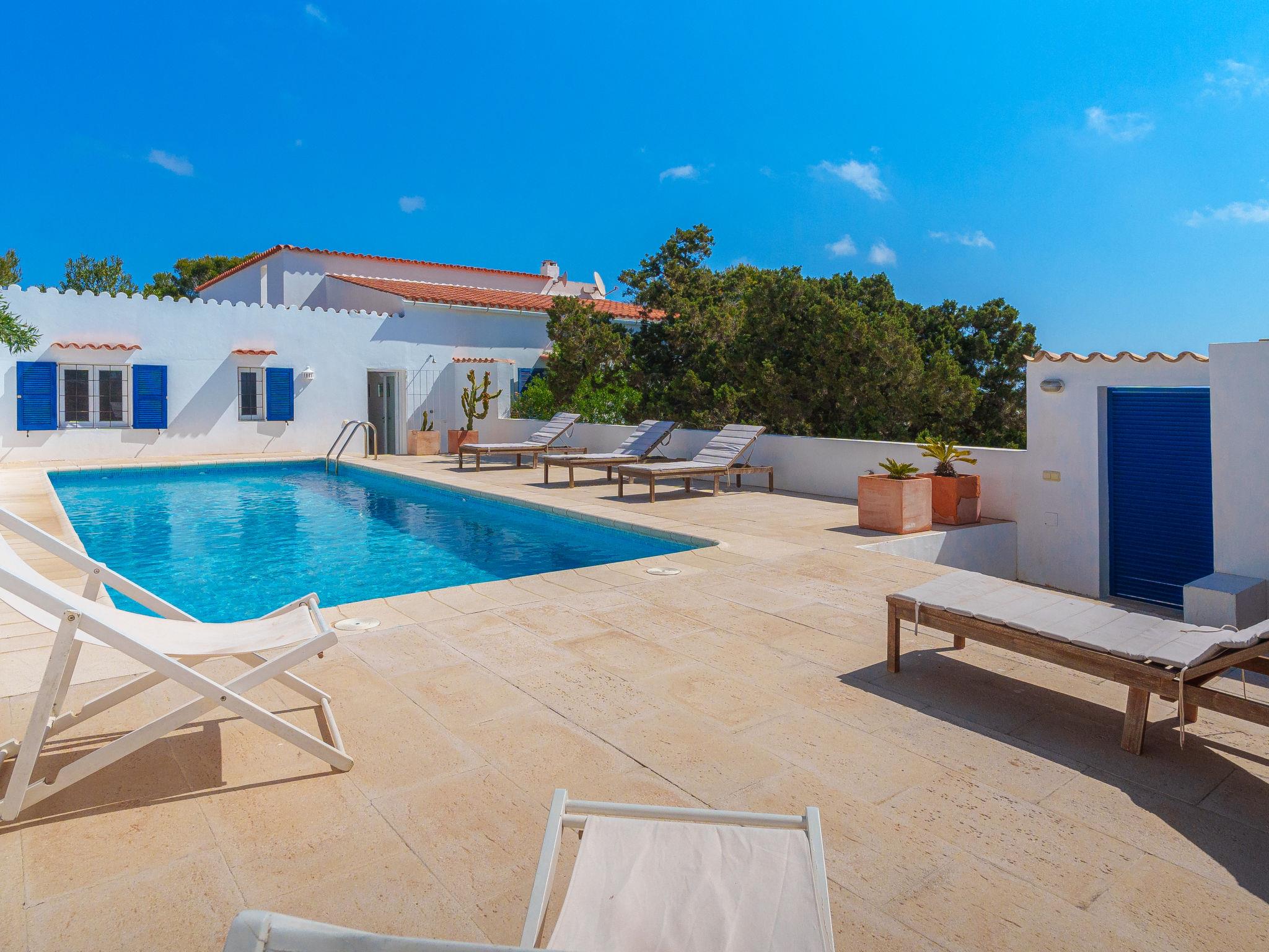 Formentera 1 km from Sant Ferran: Beautiful, comfortable villa "Casa Rubi", surrounded by trees. On the outskirts, 1 km from the centre of Sant Ferran, in a quiet, sunny position, traffic calmed area, 100 m from the edge of the forest, 150 m from the sea, east facing position. Private: 1'000 m2, natural garden, lawn for sunbathing, beautiful garden to relax, swimming pool angular (10 x 4 m, 40 m2, depth 130 - 160 cm, seasonal availability: 01.May. - 30.Sep.). Shower/WC in the pool area, patio, arbour, pergola (90 m2), garden furniture, barbecue. In the house: internet access, WiFi, washing machine. Parking at the house on the premises. Shop 2 km, grocery 2 km, supermarket 2 km, restaurant 2 km, bar 2 km, bakery 2 km, café 2 km, 15 minute walk to the centre, bus stop "Sant Ferran" 2 km, ferry "La Savina" 5 km, sandy beach "Illetes" 7 km, rocky beach "Cala en Baster" 50 m (small). Sports harbour 6 km, marina 6 km, walking paths from the house, cycle lane 100 m. Nearby attractions: Playa de Ses Illetes 8 km, Es Cap de Barbaria 7 km, Cala Saona 9 km, Platja de Migjorn 4 km. Hiking paths: Sant Ferrán-Ses Roques-cala En Baster 100 m. Please note: car recommended. Suitable for seniors baby equipment on request (included). Object suitable for 10 adults. The owner does not accept any youth groups. Loading and unloading of baggage is possible at the holiday house. Neighbourhood highly sensitive to noise. Quietness and good behaviour expected.