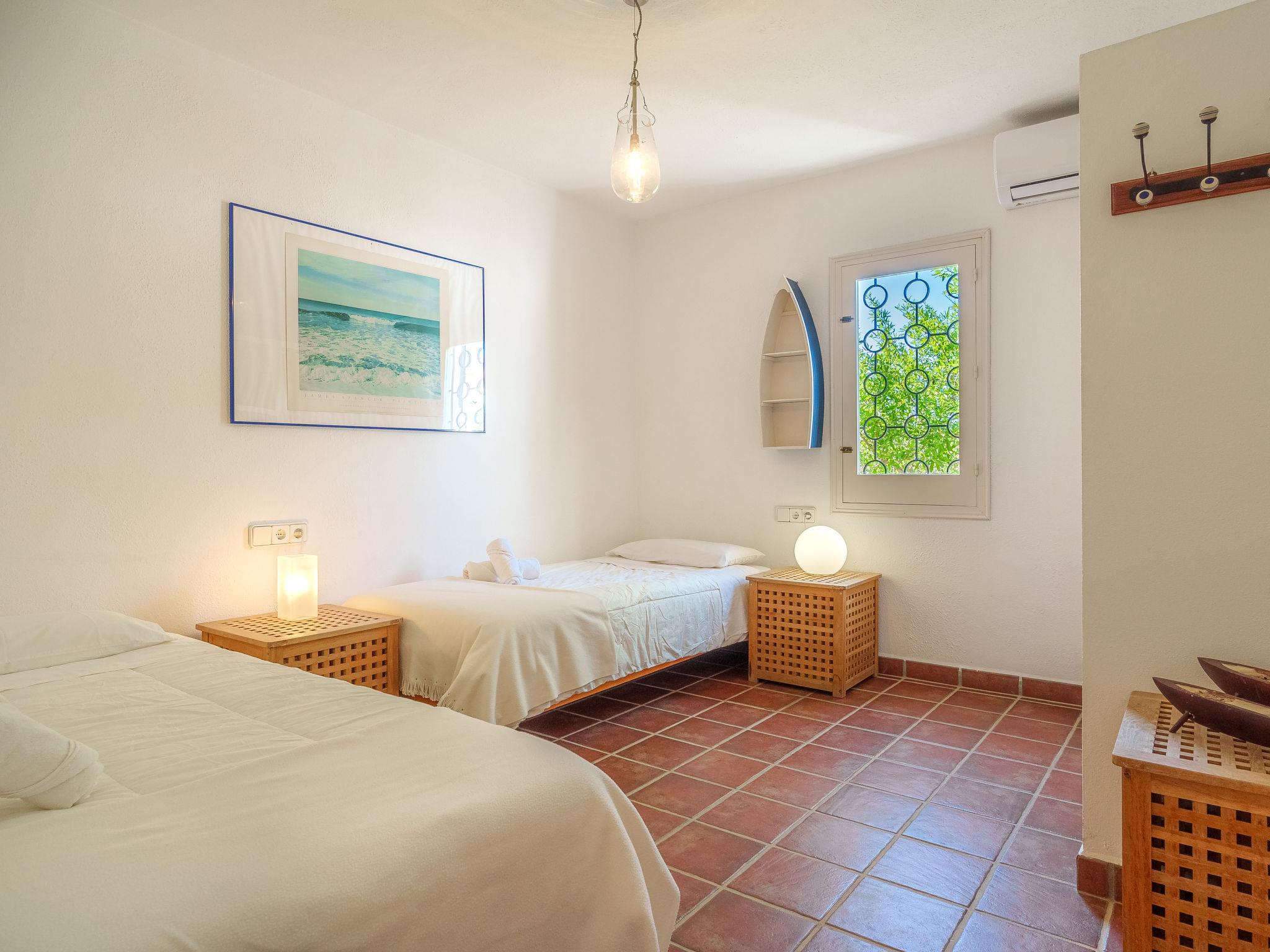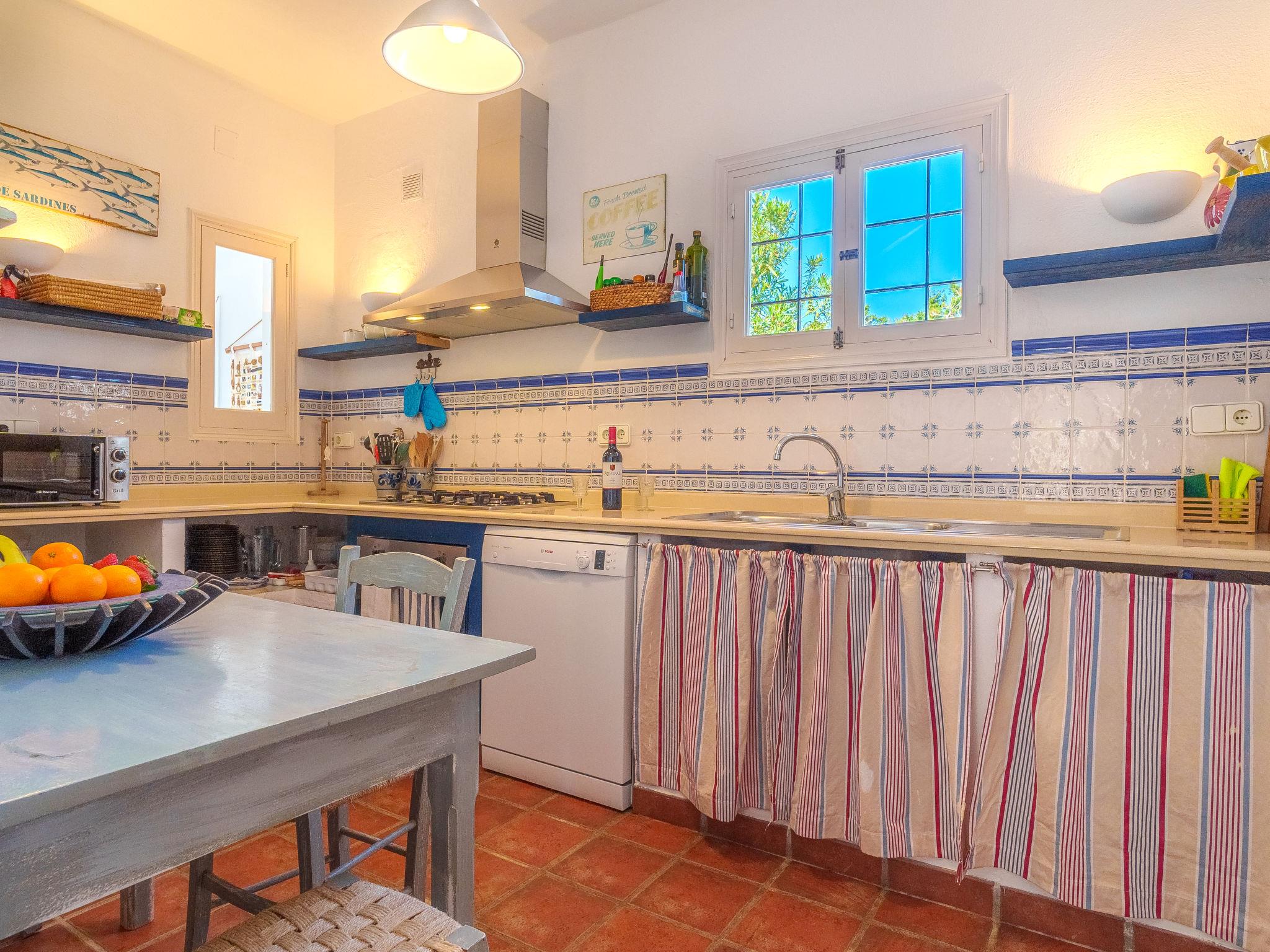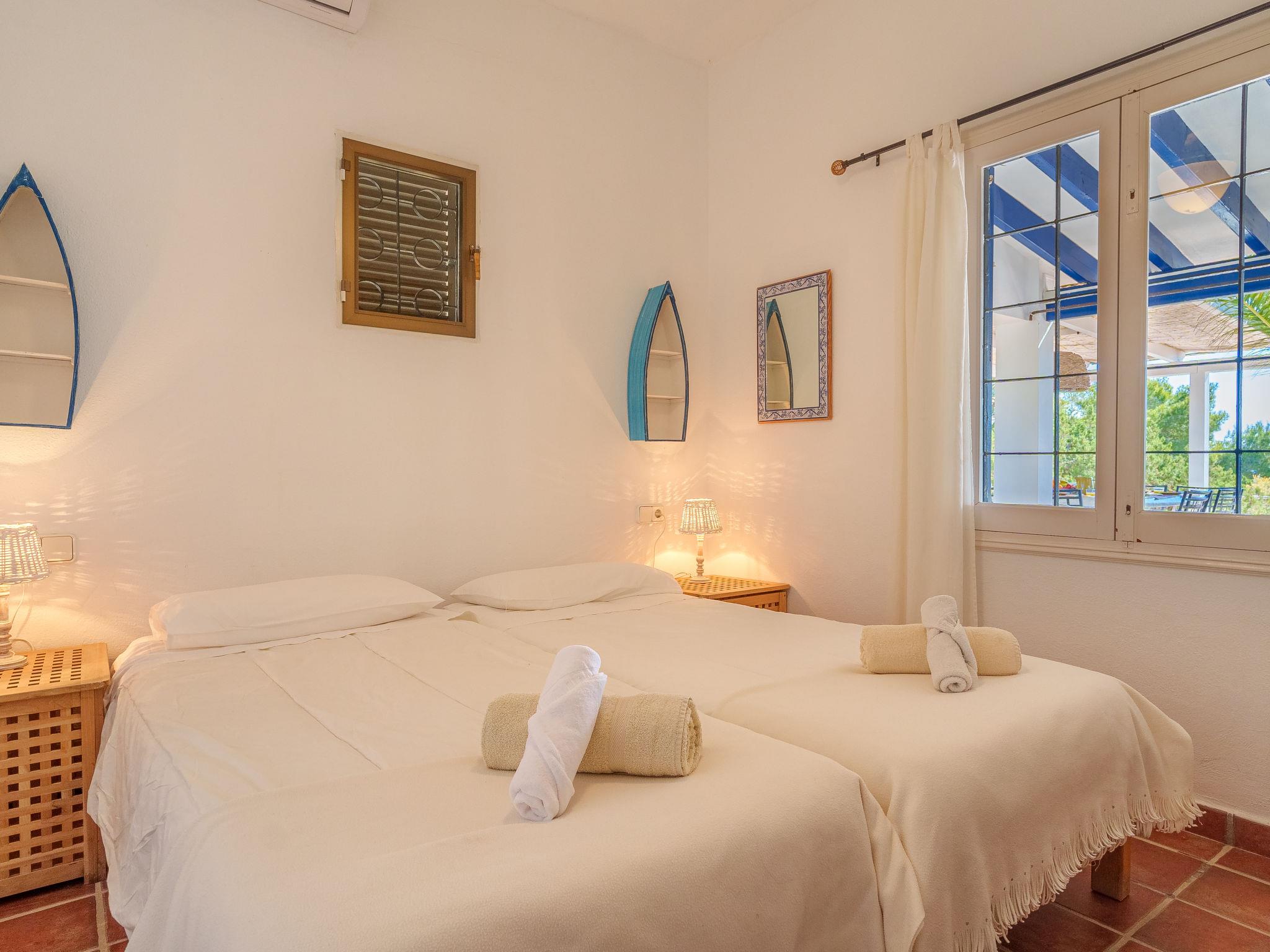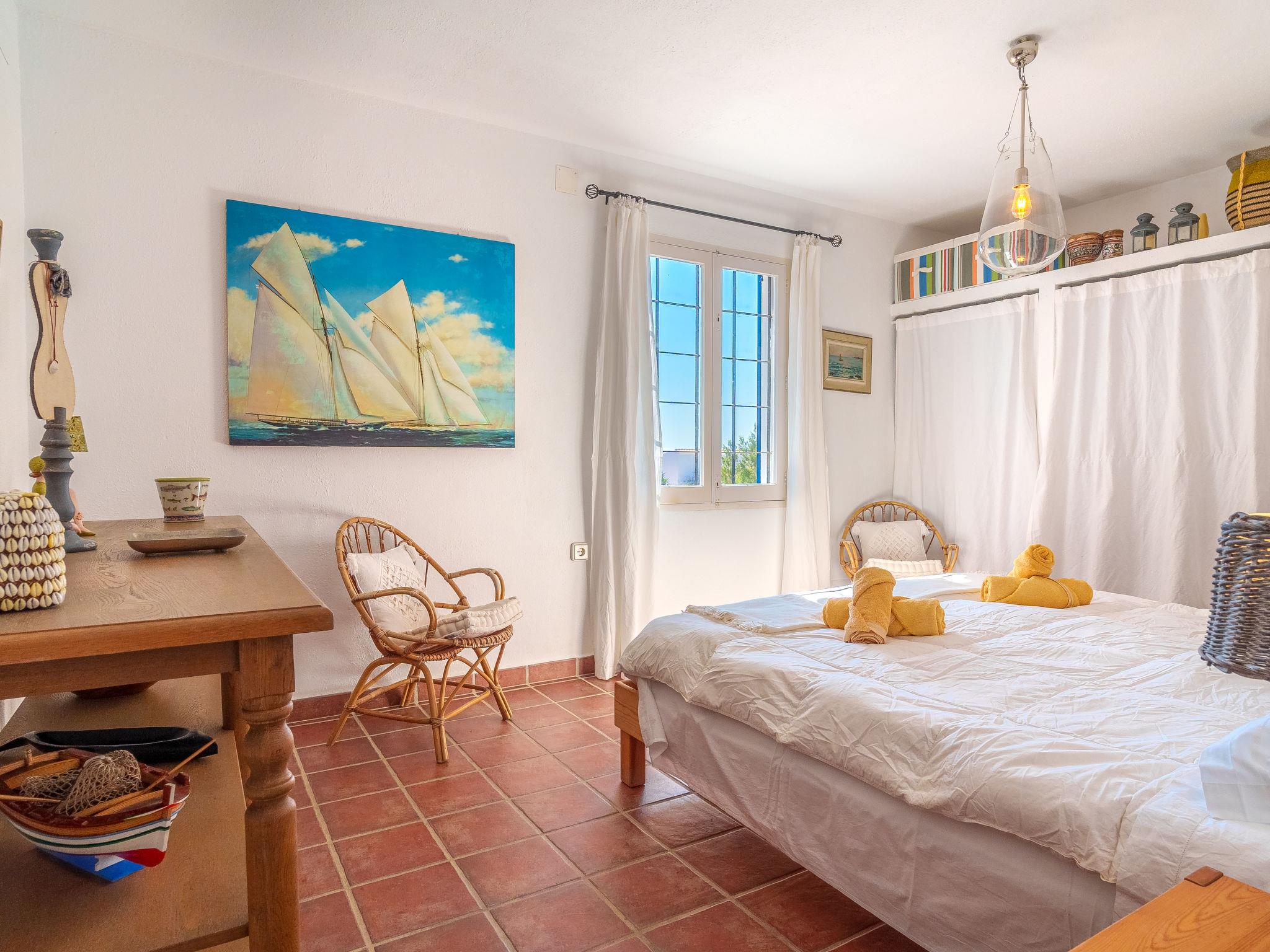 Formentera 1 km from Sant Ferran: Beautiful, comfortable villa "Casa Rubi", surrounded by trees. On the outskirts, 1 km from the centre of Sant Ferran, in a quiet, sunny position, traffic calmed area, 100 m from the edge of the forest, 150 m from the sea, east facing position. Private: 1'000 m2, natural garden, lawn for sunbathing, beautiful garden to relax, swimming pool angular (10 x 4 m, 40 m2, depth 130 - 160 cm, seasonal availability: 01.May. - 30.Sep.). Shower/WC in the pool area, patio, arbour, pergola (90 m2), garden furniture, barbecue. In the house: internet access, WiFi, washing machine. Parking at the house on the premises. Shop 2 km, grocery 2 km, supermarket 2 km, restaurant 2 km, bar 2 km, bakery 2 km, café 2 km, 15 minute walk to the centre, bus stop "Sant Ferran" 2 km, ferry "La Savina" 5 km, sandy beach "Illetes" 7 km, rocky beach "Cala en Baster" 50 m (small). Sports harbour 6 km, marina 6 km, walking paths from the house, cycle lane 100 m. Nearby attractions: Playa de Ses Illetes 8 km, Es Cap de Barbaria 7 km, Cala Saona 9 km, Platja de Migjorn 4 km. Hiking paths: Sant Ferrán-Ses Roques-cala En Baster 100 m. Please note: car recommended. Suitable for seniors baby equipment on request (included). Object suitable for 10 adults. The owner does not accept any youth groups. Loading and unloading of baggage is possible at the holiday house. Neighbourhood highly sensitive to noise. Quietness and good behaviour expected.