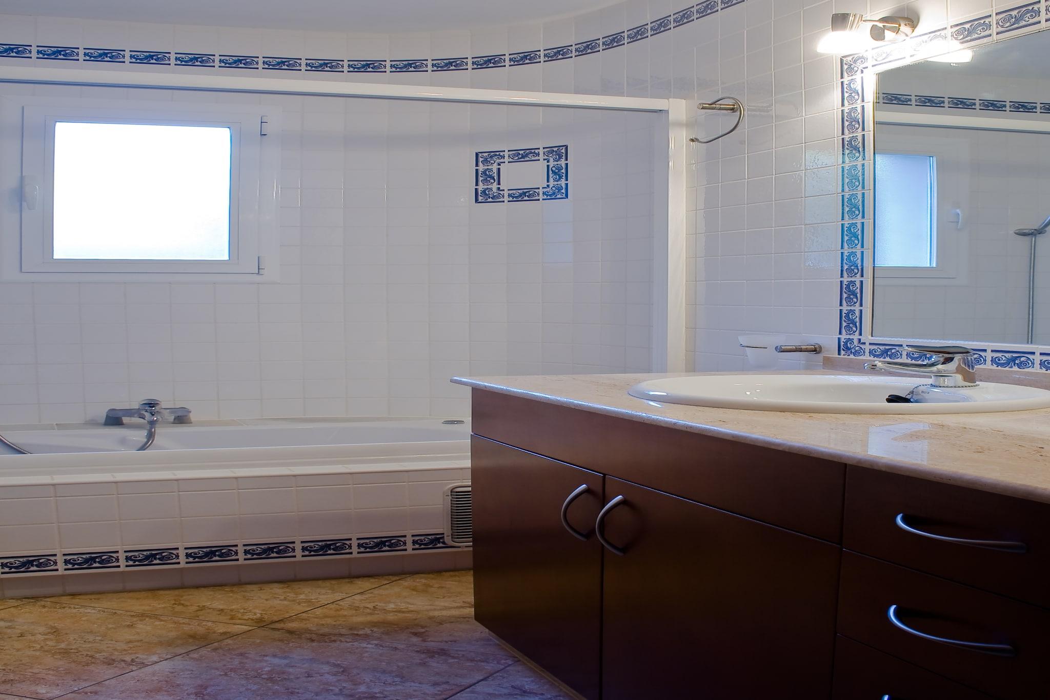 Stueetage: (Stue(Fjernsyn, sofahjørne, DVD-afspiller, CD-afspiller, klimaanlæg), Køkken(kaffemaskine, espressomaskine, ovn, combi-mikroovn, opvaskemaskine , 2x køle-fryseskab), soveværelse(dobbeltseng eller 2 enkeltsenge Senge, klimaanlæg), soveværelse(dobbeltseng eller 2 enkeltsenge Senge, klimaanlæg), badeværelse(badekar eller bruser, håndvask, toilet, bidet), tørretumbler, vaskemaskine, patio, strygebræt, strygejern) På 1. etage: (soveværelse(dobbeltseng(150 x 190 cm), klimaanlæg), Soveværelse med badeværelse(dobbeltseng(180 x 190 cm), bruser, toilet, klimaanlæg), havestue/veranda) swimmingpool(privat, 10 x 5 m., opened from May upto and including Oct)