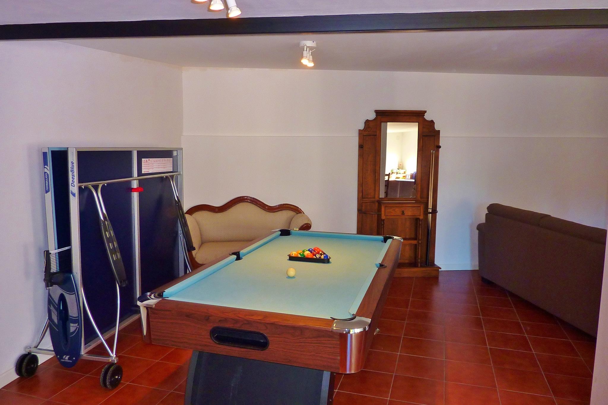 Stueetage: (Stue(pejs, varme(gennem aircondition), klimaanlæg, terrasse(overdækket)), åbent køkken(komfur(Komfur med fire kogeplader, elektrisk), ovn, mikrobølgeovn, opvaskemaskine , køle-fryseskab, toilet, varme(gennem aircondition), klimaanlæg), køkken-alrum(komfur(Komfur med fem kogeplader, gas), ovn, mikrobølgeovn, opvaskemaskine , køleskab, køle-fryseskab, varme(gennem aircondition), terrasse(overdækket)), Soveværelse med badeværelse(2x enkeltseng, badekar med bruser, bruser, håndvask, toilet, 3x varme(gulvvarme, gennem aircondition), klimaanlæg), Soveværelse med badeværelse(2x enkeltseng(90 x 210 cm), bruser, håndvask, toilet, 2x varme(gulvvarme)), Soveværelse med badeværelse(2x enkeltseng(90 x 210 cm), bruser, håndvask, toilet, 2x varme(gulvvarme, gennem aircondition)), Soveværelse med badeværelse(2x enkeltseng(90 x 210 cm), badekar med bruser, bruser, håndvask, toilet, 2x varme(gulvvarme, gennem aircondition)), Soveværelse med badeværelse(2x enkeltseng(90 x 200 cm), badekar med bruser, bruser, håndvask, toilet, 2x varme(gulvvarme, gennem aircondition)), Soveværelse med badeværelse(2x enkeltseng(90 x 210 cm), bruser, håndvask, toilet, 2x varme(gulvvarme)), soveværelse med gennemgang(2x enkeltseng(90 x 210 cm), bruser, håndvask, toilet, 2x varme(gulvvarme, gennem aircondition), barneseng), varme(gennem aircondition), klimaanlæg, barneseng, barnestol) Gæsteophold Stueetage: (Køkken(komfur(elektrisk), mikrobølgeovn, køle-fryseskab), stue / spisestue, Soveværelse med badeværelse(2x enkeltseng(90 x 200 cm)), varme(gulvvarme), klimaanlæg, terrasse(overdækket, 20 m2)) vaskerum (tørretumbler, vaskemaskine, terrasse), legeværelse(Fjernsyn(parabol, Hollandske TV-kanaler, Internationale TV-kanaler), klimaanlæg, bordtennisbord, biljard), have(indhegnet), grill, swimmingpool(privat, opvarmet, termotæppe til swimmingpool, 11 x 6 m.)