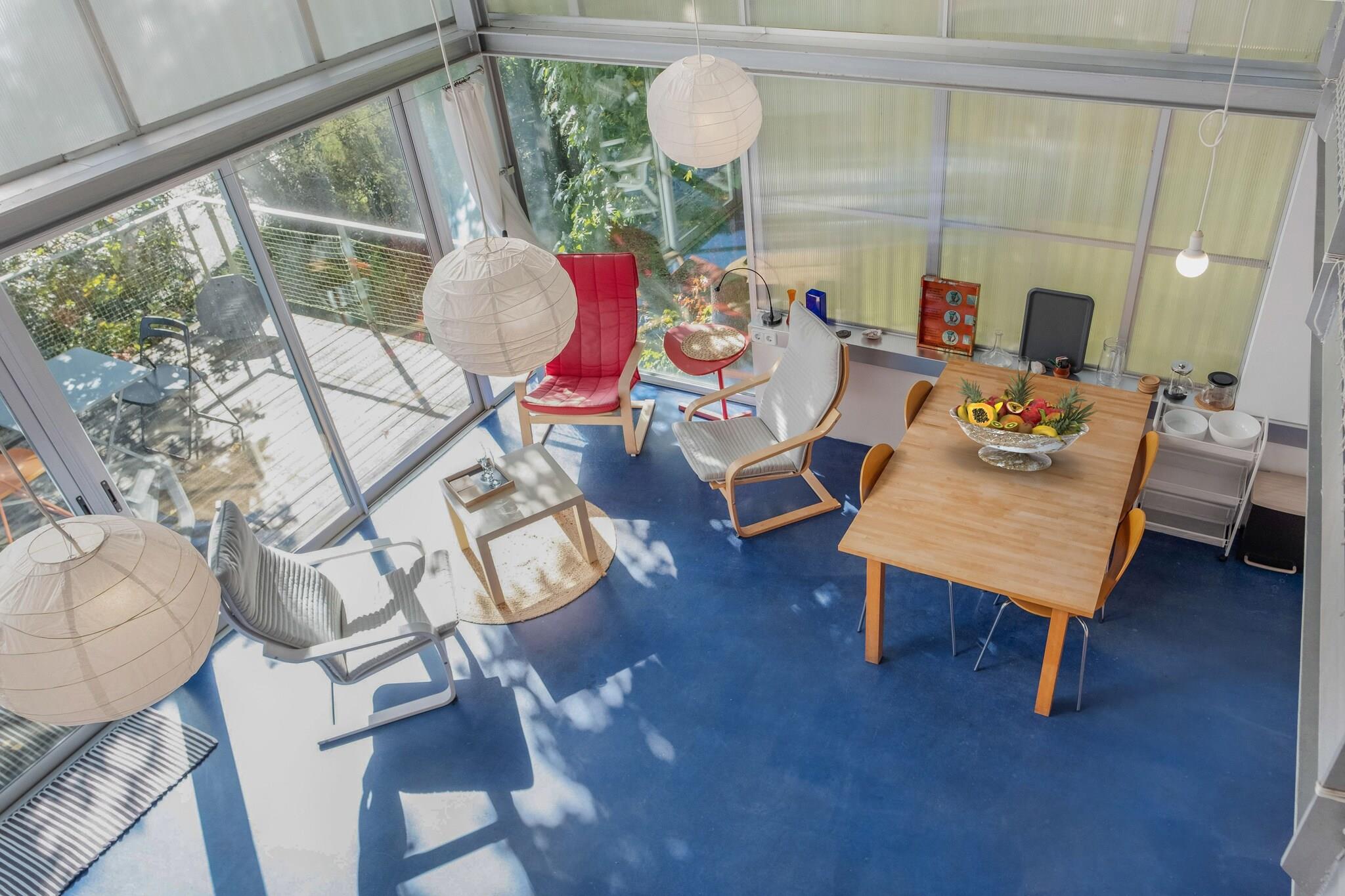Stueetage: (åbent køkken(brødrister, komfur, ovn, mikrobølgeovn, opvaskemaskine , køleskab), soveværelse(dobbeltseng), soveværelse(enkeltseng), badeværelse(bruser, håndvask, toilet), varme, terrasse, have, havemøbler, grill, parkering) På 1. etage: (Stue/soveværelse(enkeltsovesofa, dobbeltsovesofa)) Fjernsyn, kaffemaskine, mikrobølgeovn, vaskemaskine, patio, terrasse, Parasol, strygebræt