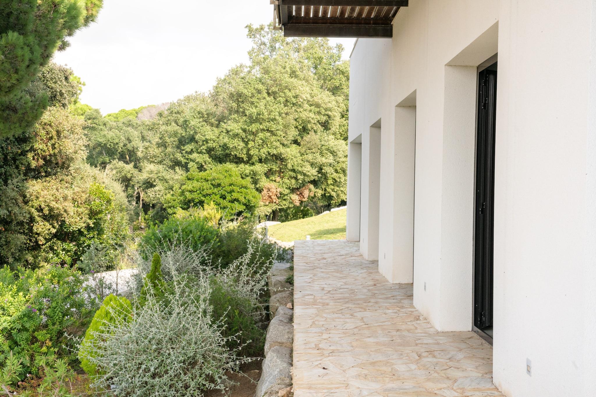 Denne fantastiske ferievilla i Sant Andreu de Llavaneres tilbyder et rummeligt og luksuriøst tilflugtssted for op til 10 gæster. Med fire soveværelser, hver med eget badeværelse og fleksible sovearrangementer (dobbelt- eller enkeltsenge), sikrer det privatliv og komfort for alle. Stueetagen i åbent plan indeholder et moderne køkken med høje hvidevarer, en spiseplads og en hyggelig stue med satellit-tv, dvd-afspiller og stereoanlæg, der åbner til en privat have med udendørsmøbler og grill. Nyd den smukke 14 x 3 m private swimmingpool omgivet af haverum og en terrasse, perfekt til solbadning og afslapning. Yderligere bekvemmeligheder omfatter aircondition overalt, en garage og parkering. Villaen er bekvemt beliggende kun 3 km fra Playa Llavaneras-stranden, 1,5 km fra byens centrum og tæt på naturparker, golfbaner og ridefaciliteter, der tilbyder både ro og nem adgang til lokale faciliteter. Uanset om du nyder fredelige stunder i haven eller udforsker nærliggende Barcelona kystattraktioner, giver denne villa en perfekt blanding af komfort, luksus og beliggenhed for en uforglemmelig ferie.