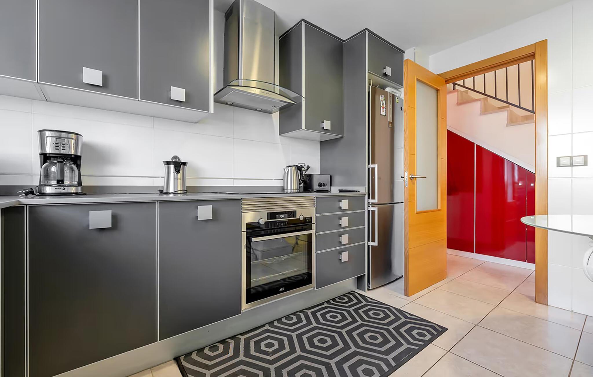 Træd ind i det lyse, stilfuldt møblerede interiør og føl jer straks hjemme. Brug den åbne stue og spisestue til at tilbringe tid sammen og slap af på den behagelige sofa. Nyd det naturlige lys, der strømmer ind gennem de store vinduer, og Begynd dagene i en fredelig atmosfære eller afslut den med en hyggelig filmaften. Spis morgenmad ved det separate bord i det moderne køkken eller nyd jeres måltider ved det elegante spisebord.