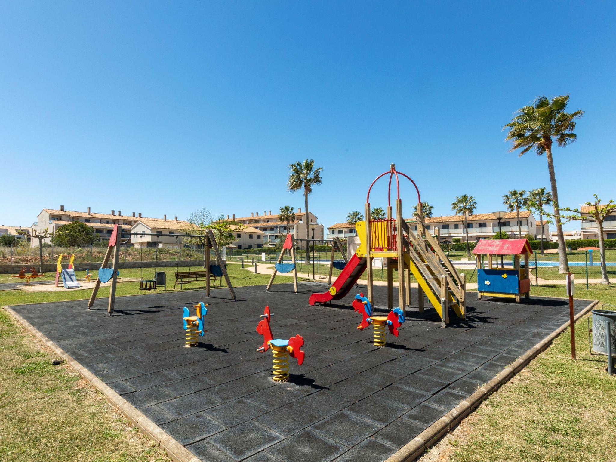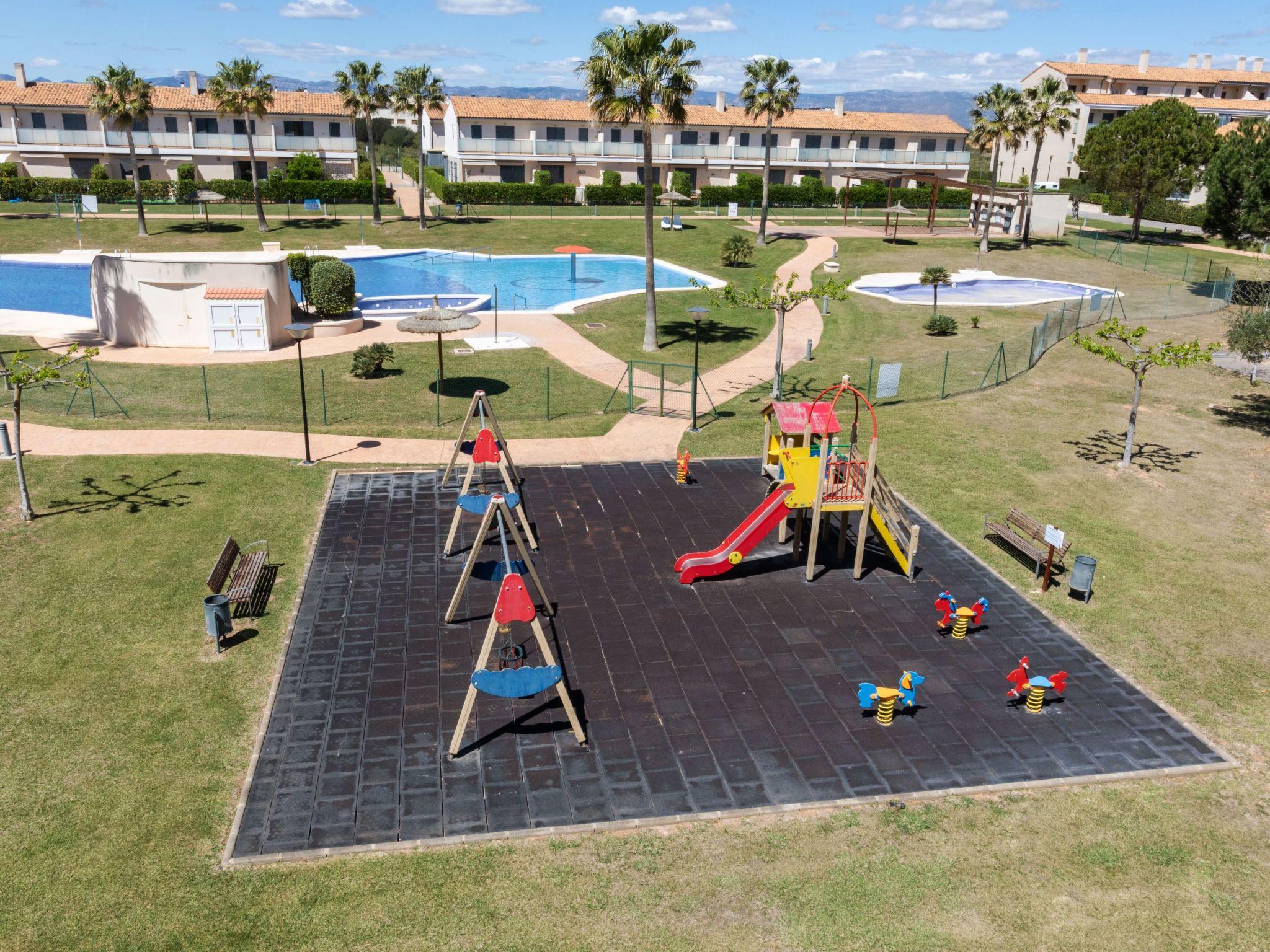 Panorámica Golf 15 km from Vinaròs: Comfortable apartment block "Kariló", 2 storeys, built in 2022, renovated in 2024. 70 apartments in the property. In the resort Sant Jordi - Panorámica Golf, in a quiet position, 18 km from the sea, 18 km from the beach, on the golf course. For shared use: park, natural garden, swimming pool fenced (25 x 10 m, depth 75 - 200 cm, seasonal availability: 01.Apr. - 30.Sep.). Unconventional pool shape. Children's pool, outdoor shower, children's playground. In the house: lift. Parking space n 180. Bus stop "C/ J.Bautista Rochera-Sant Jordi" 7.8 km, railway station "Vinaròs" 18 km, sandy beach "Vinaròs" 15 km. Golf course (18 hole) 100 m. Nearby attractions: Peñiscola 35 km, Ciutat de les Arts i les Ciències 160 km, Port Aventura 101 km, Delta del Ebro 40 km. Well-known lakes can easily be reached: Pantano de la Senia 20 km. Hiking paths: Parque Natural Sierra de Irta 40 km, Foradada del Montsià 25 km. Please note: car recommended. The owner does not accept any youth groups. 24hr guard. Neighbourhood highly sensitive to noise. Quietness and good behaviour expected.