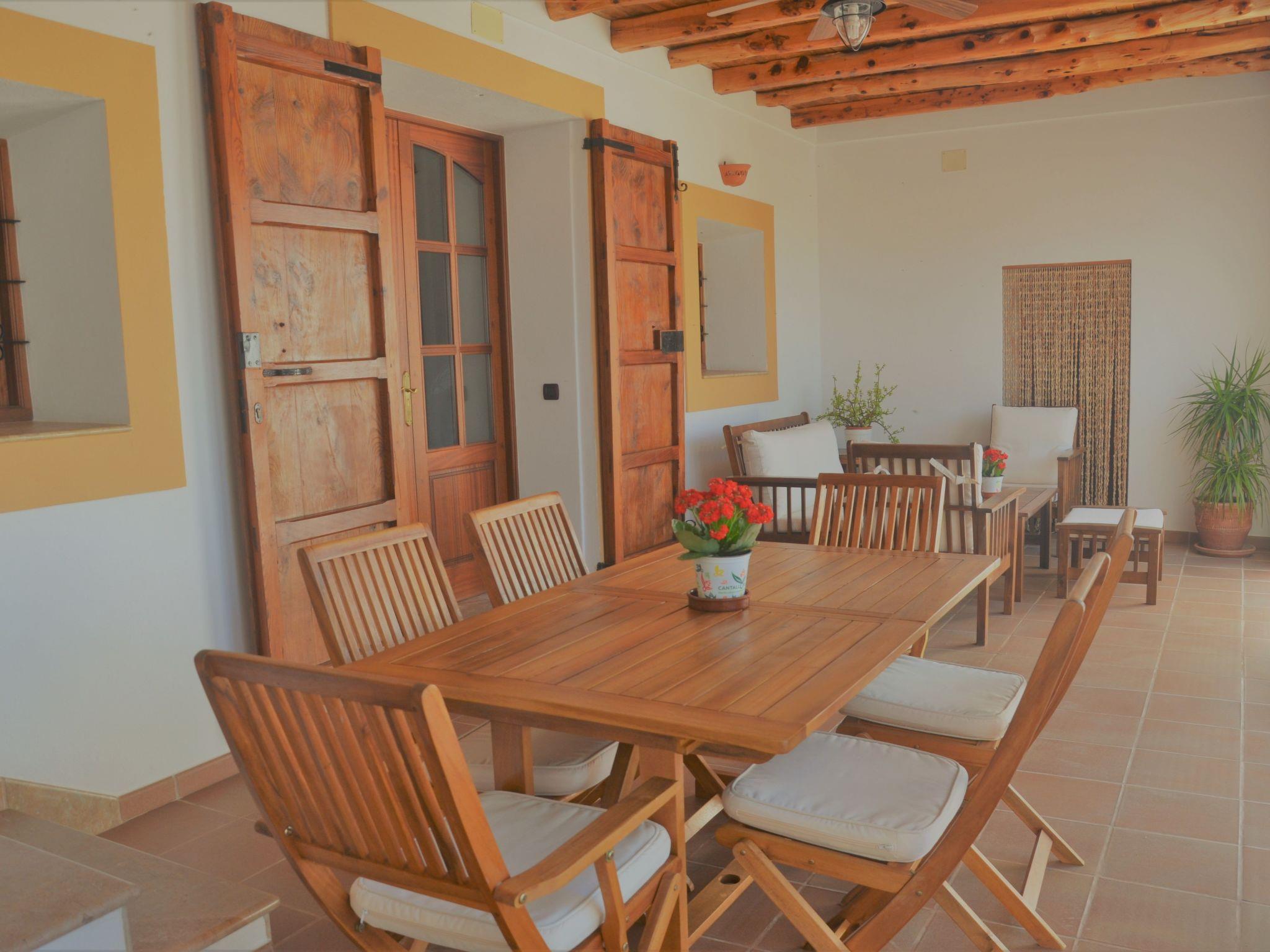 Can Juanó is a typical Ibicencan house, which was restored respecting the Ibicencan style, preserving the thick stone walls and the original sabina beams on the ceilings. The 250 m2 house is composed of a spacious living room with fireplace and TV, a fully equipped kitchen with dining room, 3 bathrooms, 4 double bedrooms and terraces.