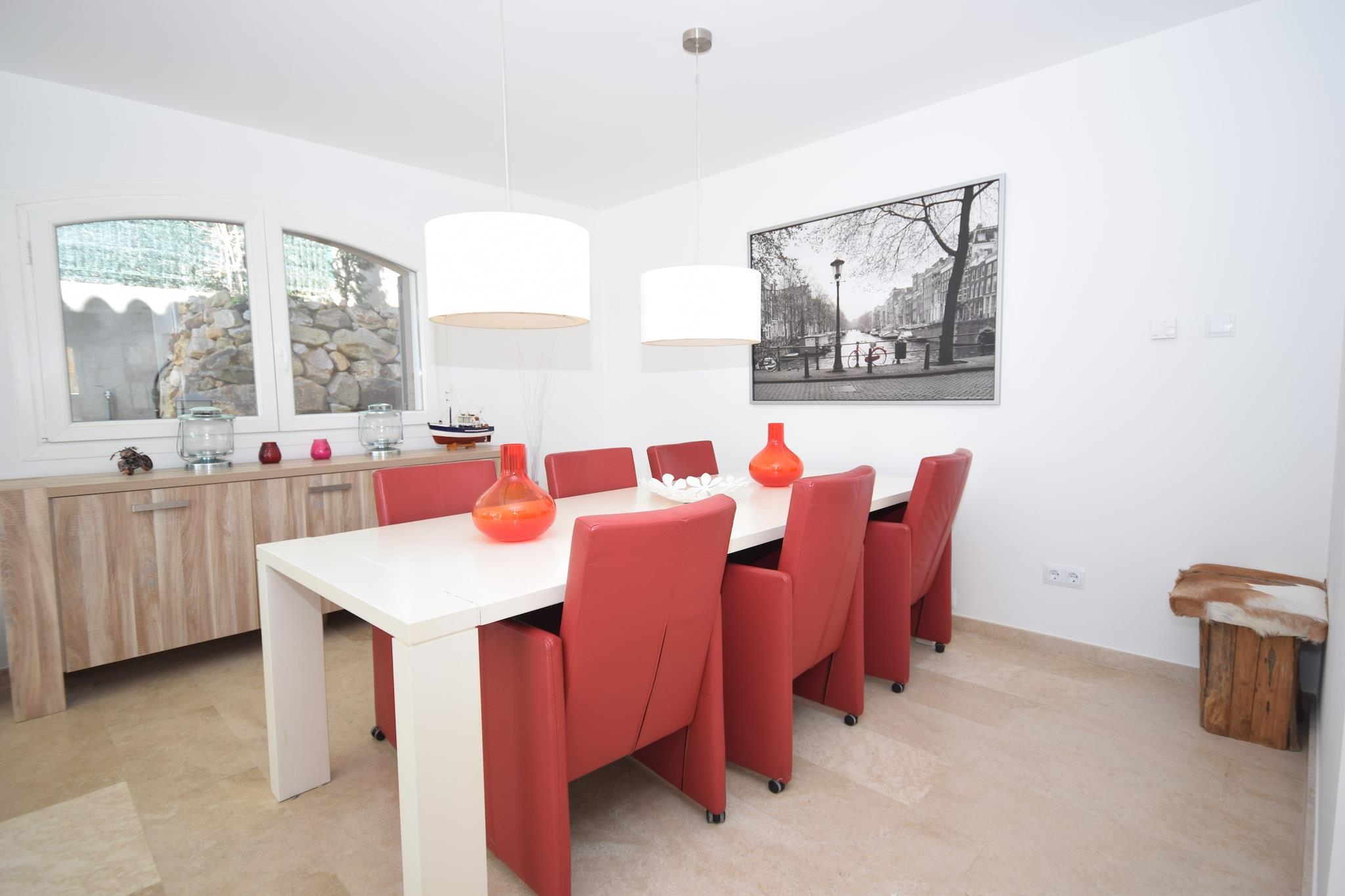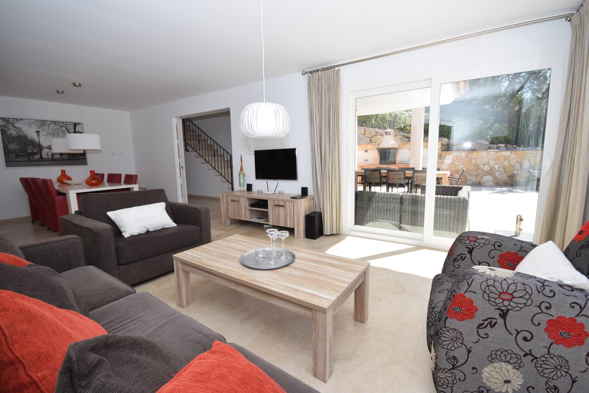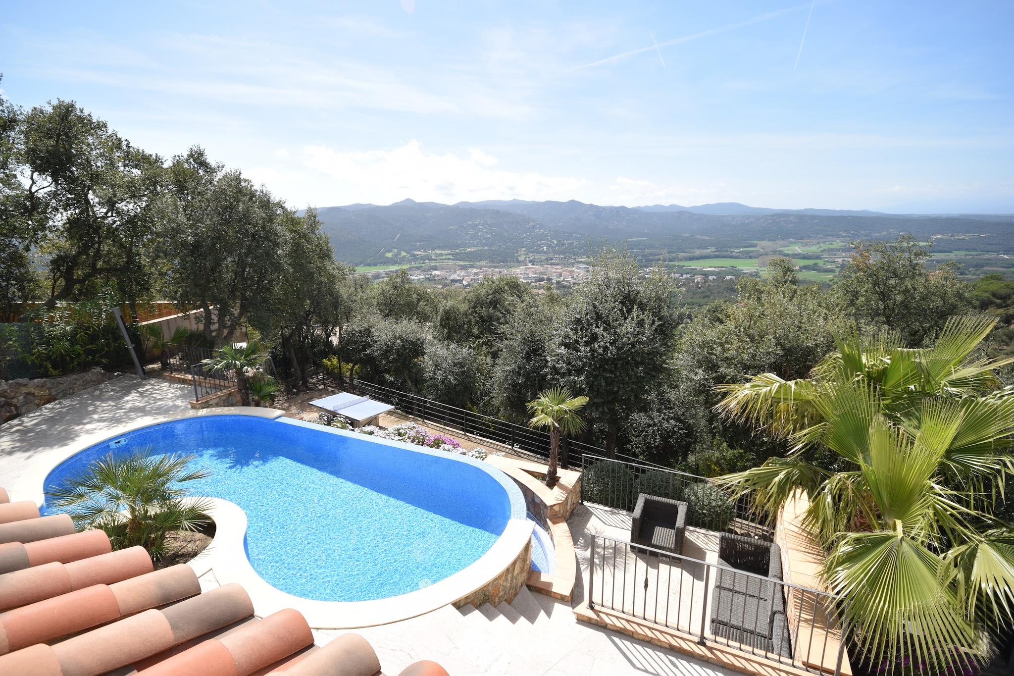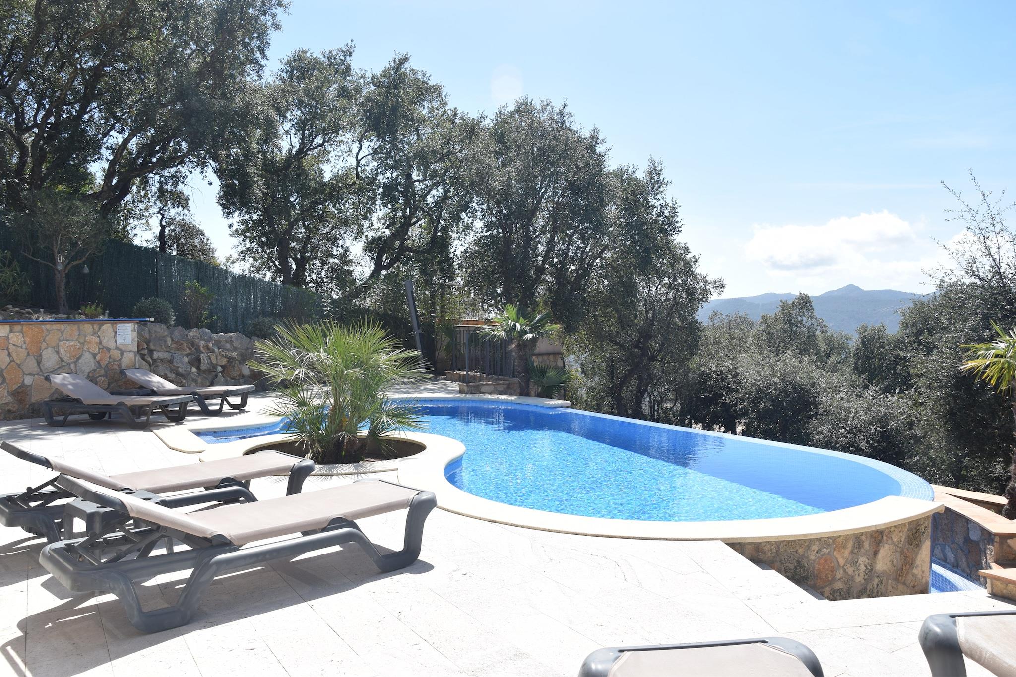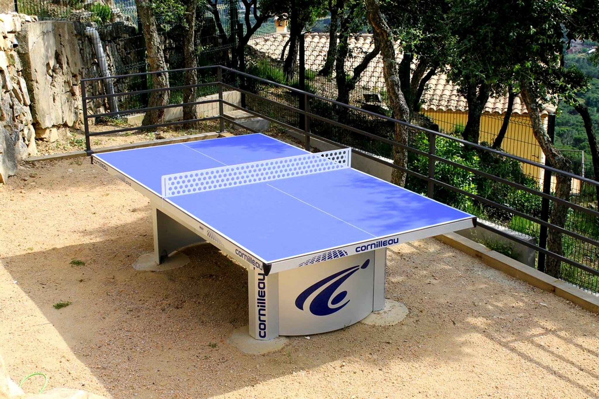 Afslappet Villa Living Denne villa med fire soveværelser ligger i de rolige omgivelser i Santa Cristina d'Aro og tilbyder et indbydende tilflugtssted for familier og grupper. Med en privat swimmingpool, liggestole og skyggefulde terrasser er hjemmet designet til både afslapning og udendørs nydelse. Indvendigt forbinder opholds- og spiseområdet i åbent plan problemfrit til et veludstyret køkken, hvilket gør det nemt at dele måltider sammen. Rekreative detaljer som et bordtennisbord og boulebane tilføjer sjov for alle aldre, mens muligheden for en opvarmet pool sikrer komfort året rundt. Naturskønne Costa Brava Villaen ligger kun 6 km fra strandene på Costa Brava, kendt for deres gyldne sand og skjulte bugter. Gæsterne kan nyde vandreture langs kysten, vandsport eller blot tilbringe dagen ved havet. Santa Cristina d'Aros bymidte ligger i nærheden og byder på lokale butikker, markeder og kulturelle seværdigheder, mens golfbaner og cykelruter også er inden for rækkevidde. Med sin kombination af rolige omgivelser og hurtig adgang til kysten, balancerer ejendommen privatliv med bekvemmelighed. Spisning og smag Fra traditionelle catalanske retter til moderne middelhavskøkken er områdets spisemuligheder varierede og indbydende. Inden for en kort køretur kan gæsterne nyde familiedrevne restauranter, der serverer regionale specialiteter såsom suquet de peix (fiskegryderet) eller vove sig til kystbyer for frisk fisk og skaldyr med havudsigt. Lokale tapasbarer gør afslappede aftener nemme, og markeder tilbyder friske råvarer til madlavning derhjemme i villaens udendørs køkken og grillplads.