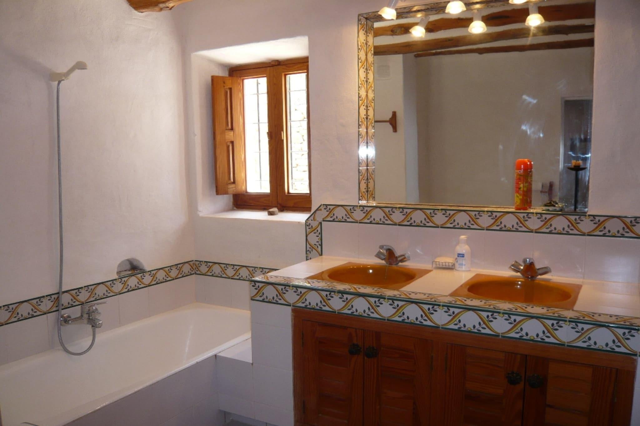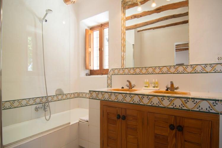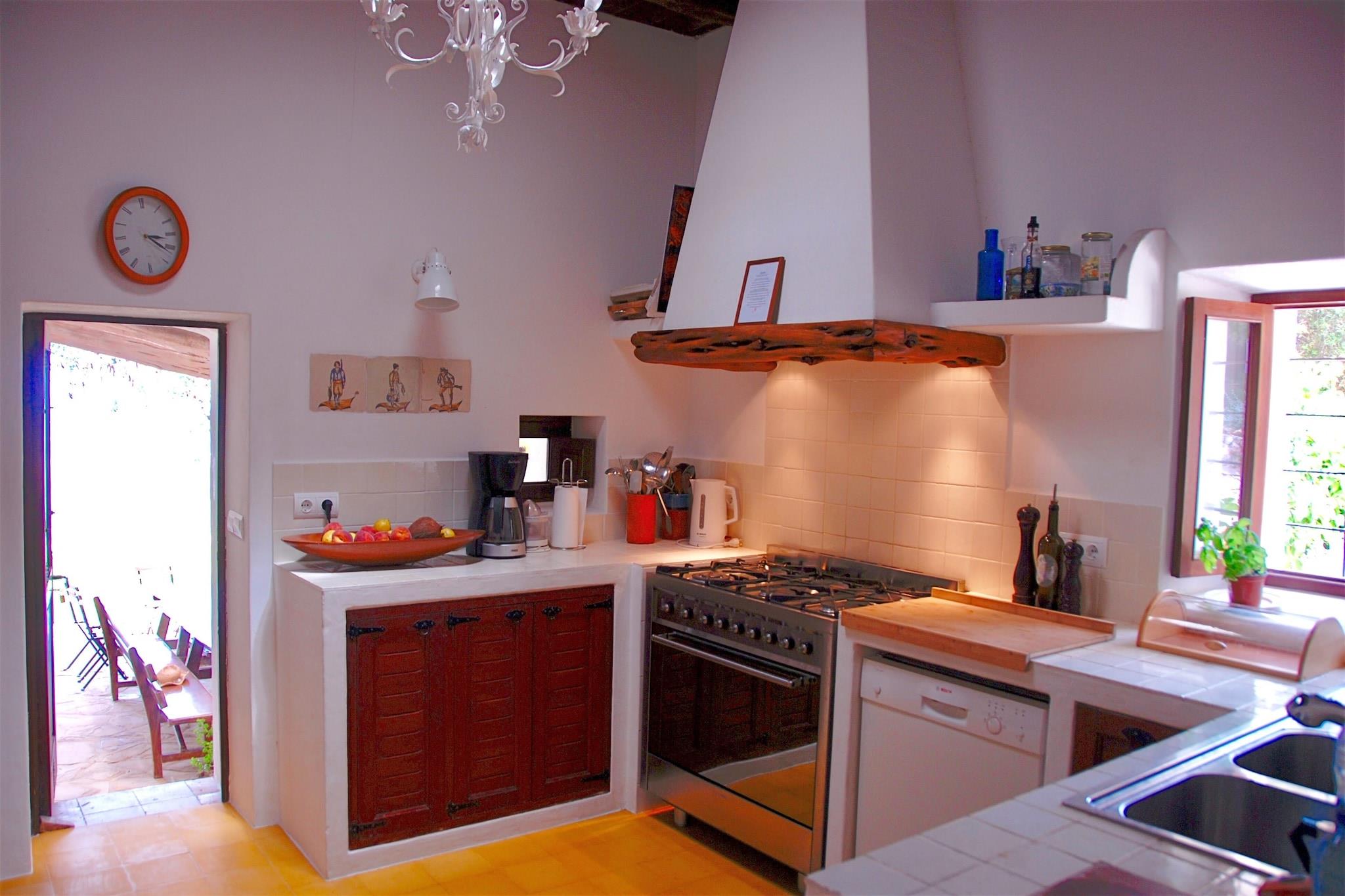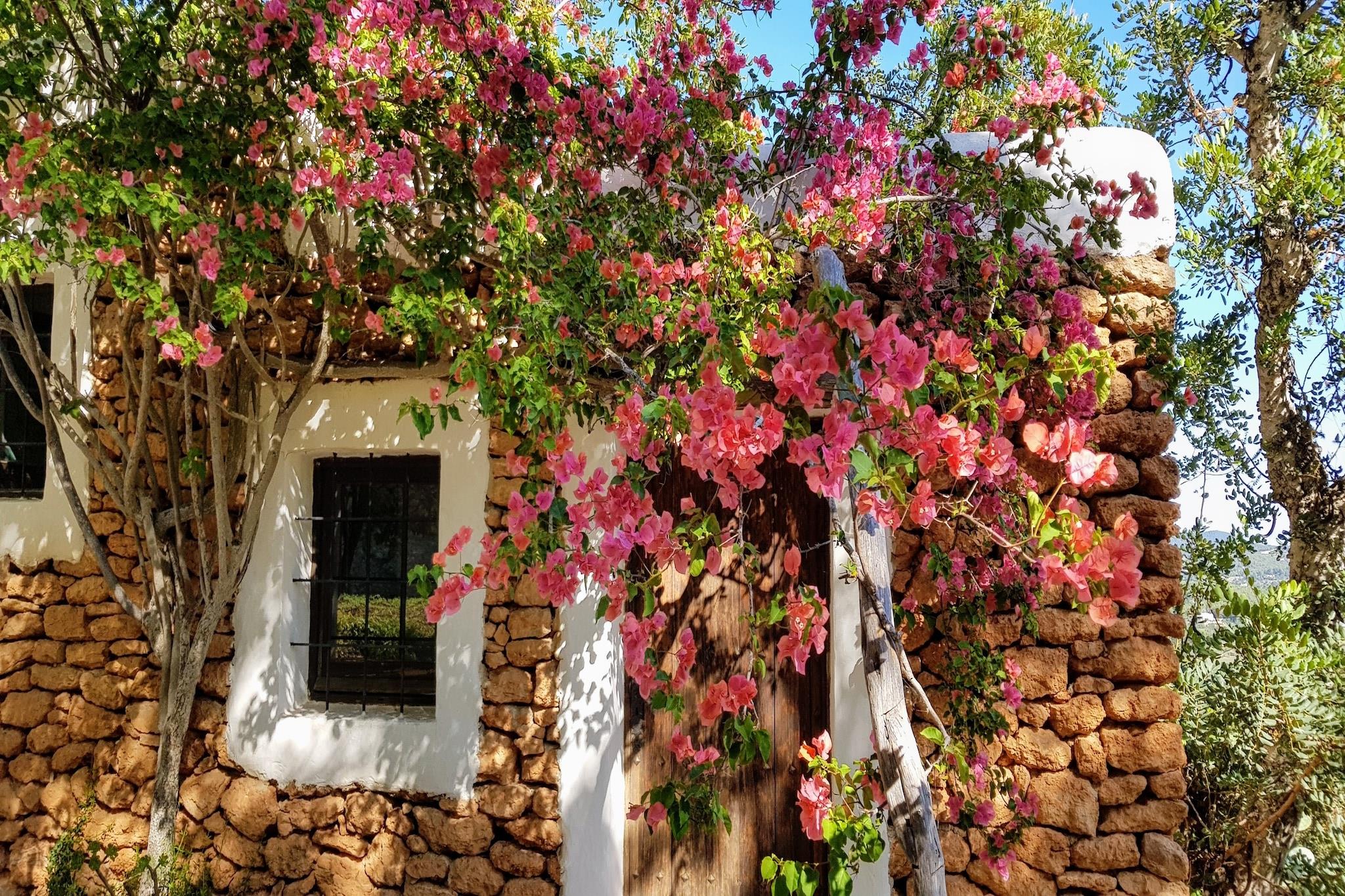 I dette stilfulde palæ på Ibiza kan du nyde en ferie med op til atten mennesker. Huset er blevet restaureret med ægthedsfølelse og sidder på toppen af en bakke. Fra terrasserne har du panoramaudsigt over Middelhavet. Derudover er hovedhuset et gæstehus til seks personer, hvor du også har havudsigt fra stuen med skydedøre. Det er et roligt sted og derfor et ideelt sted for yoga retreats, men også for at nyde den ultimative Ibiza følelse med familie eller venner. Terrassen bag hovedhuset har flere siddepladser på en slags gårdhave ved den traditionelle brødovn og en meget stor solterrasse med picnicbord og masser af stilfulde liggestole med tykke puder omkring den unikke designet swimmingpool på 14 x 5 med Romerske trin og siddepladser i vandet. Udenfor er adskillige steder velegnet til yoga, og der er også et overdækket yogarum. Det charmerende feriested Santa Eulalia og de omkringliggende strande ligger inden for 5 minutters kørsel, og Ibiza-byen ligger ca. 20 minutter væk.