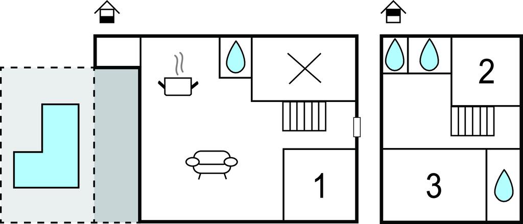 Soveværelse (nr. 1) - 1 Soveplads. (Enkeltseng(e)). 2 Sovepladser. (Dobbeltseng(e)).