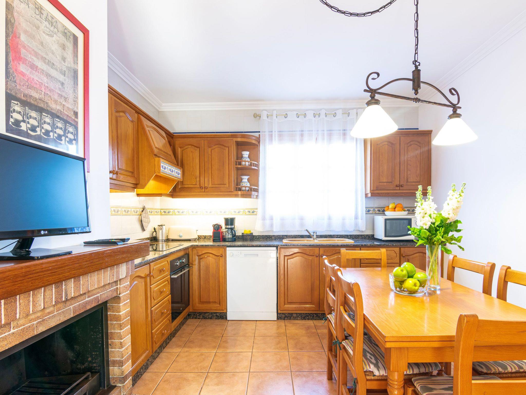 Die voll ausgestattete Küche verfügt über Backofen, Kühl-/Gefrierschrank, Mikrowelle, Kaffeemaschine, Toaster, Wasserkocher und komplettes Kücheninventar. Zudem stehen Handtücher, Bettwäsche und Decken sowie Waschmaschine, Trockner und Geschirrspüler zur Verfügung.