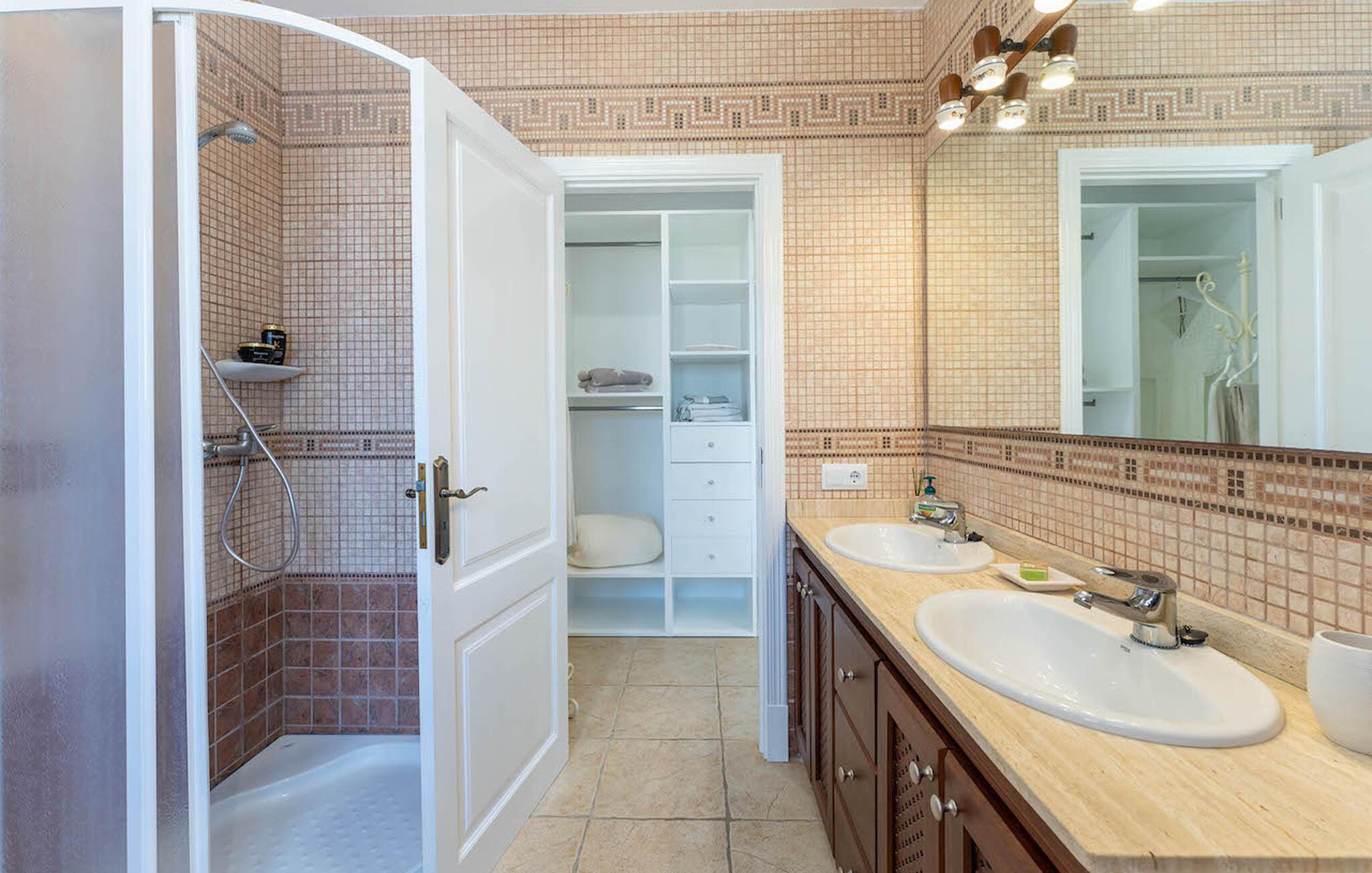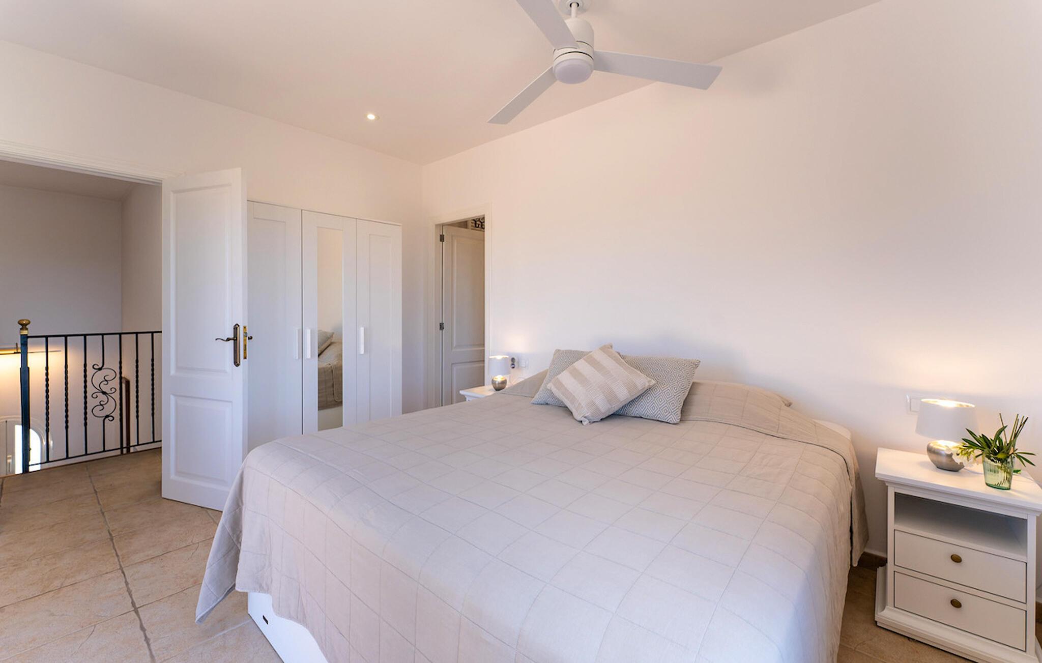 To imponerende store soveværelser, hver med eget badeværelse og indbyggede skabe eller walk-in closet, er også placeret på denne etage. Ovenpå er der yderligere to soveværelser, hvoraf det ene har eget badeværelse. Begge har adgang til en privat terrasse. Højt til loftet og en gennemtænkt planløsning skaber en rummelig fornemmelse.