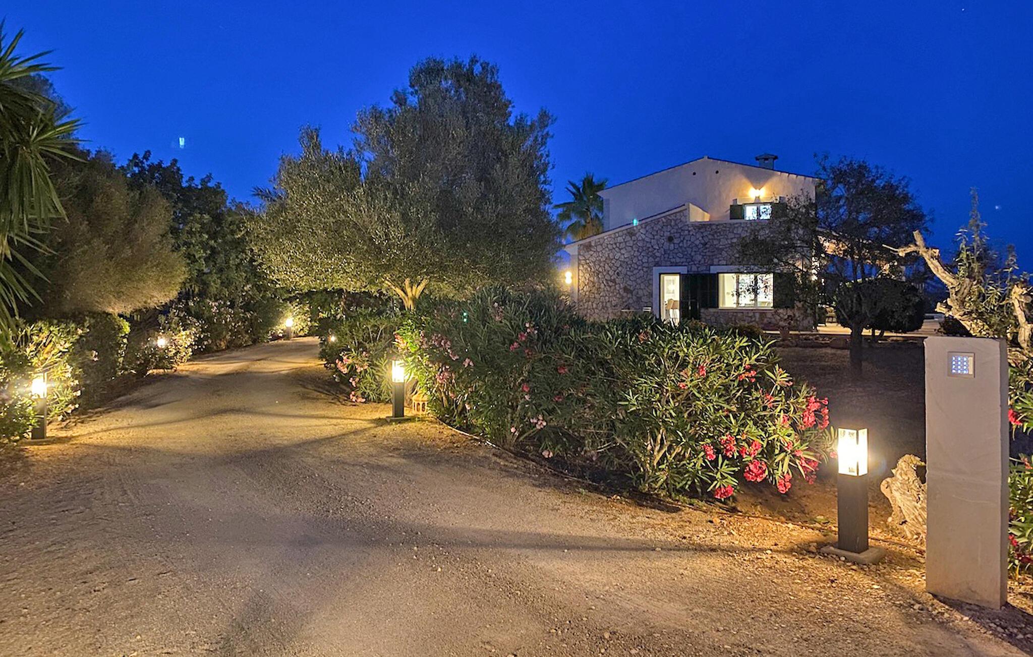 Stilfuld udendørsbelysning skaber en særlig atmosfære om aftenen. Fincaen er tilsluttet det offentlige vand- og elnet, har gasopvarmning, aircondition, satellit-tv og internetadgang.