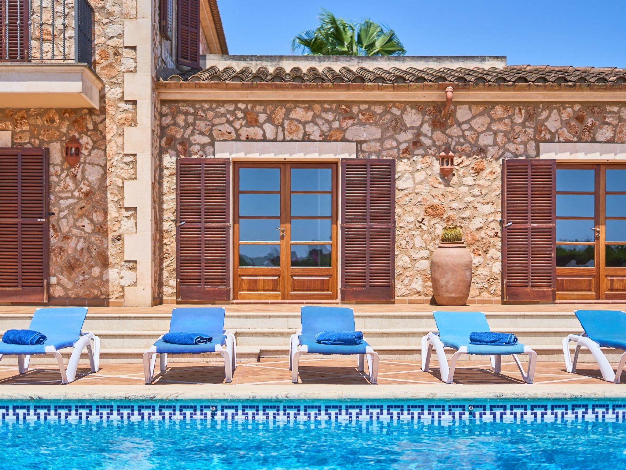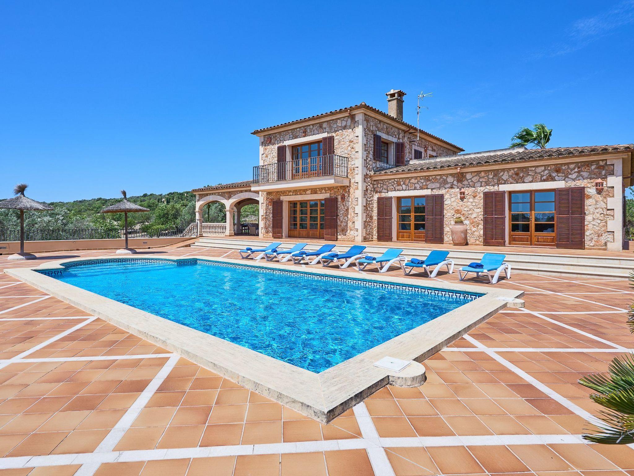 Spacious country house with 4 bedrooms and private pool for rent in the south of Mallorca. The small village of Alqueria Blanca is only 1.5 km away and the beautiful sandy bay of Cala Mondragó is less than 8 km away. Santanyí and Porto Petro are approx. 6 km away.