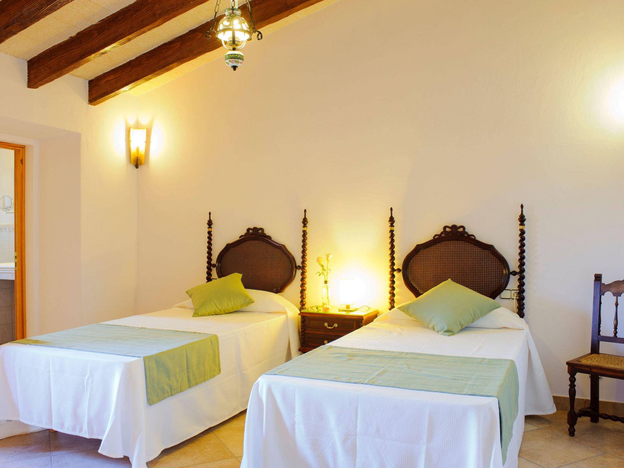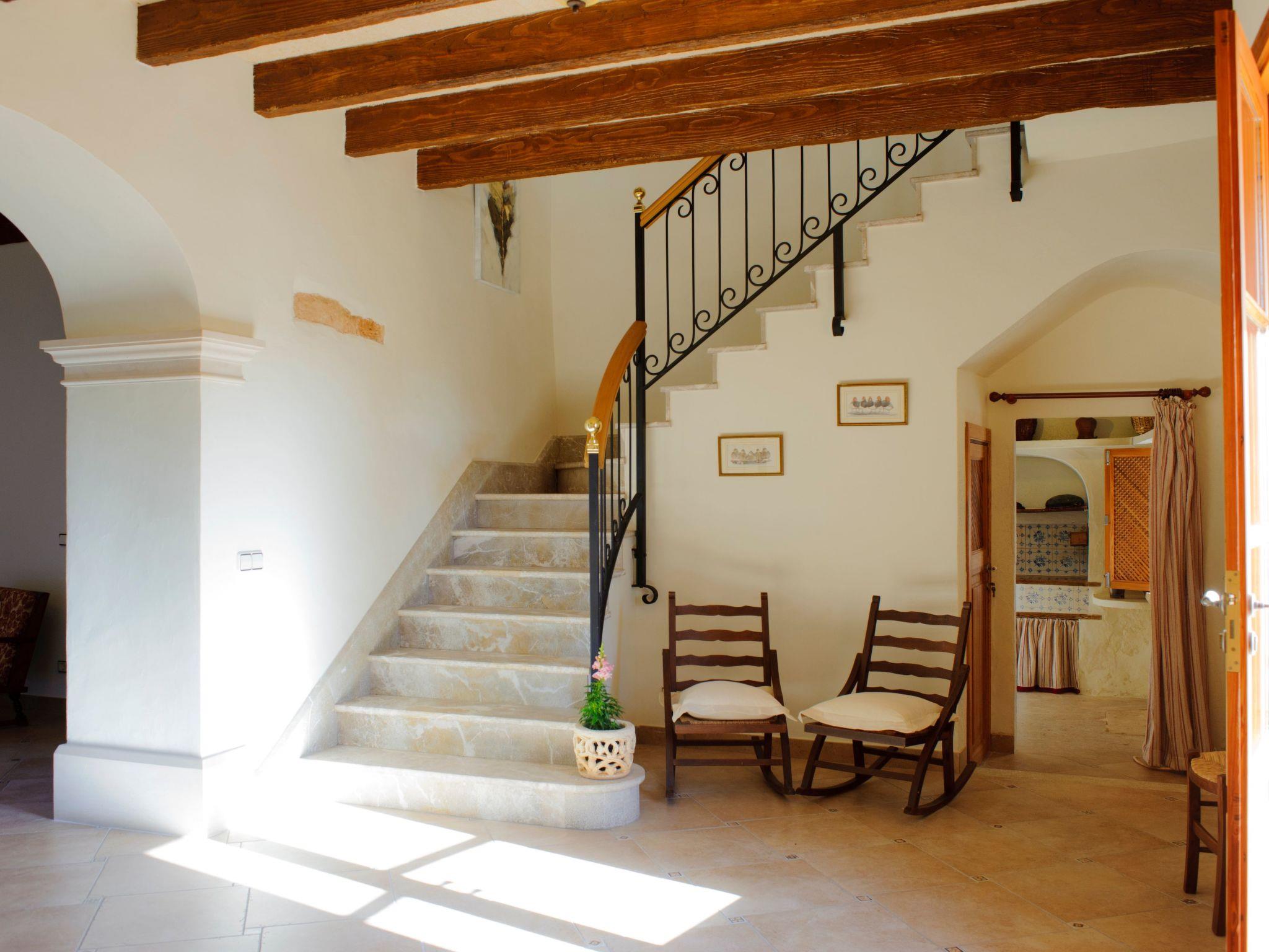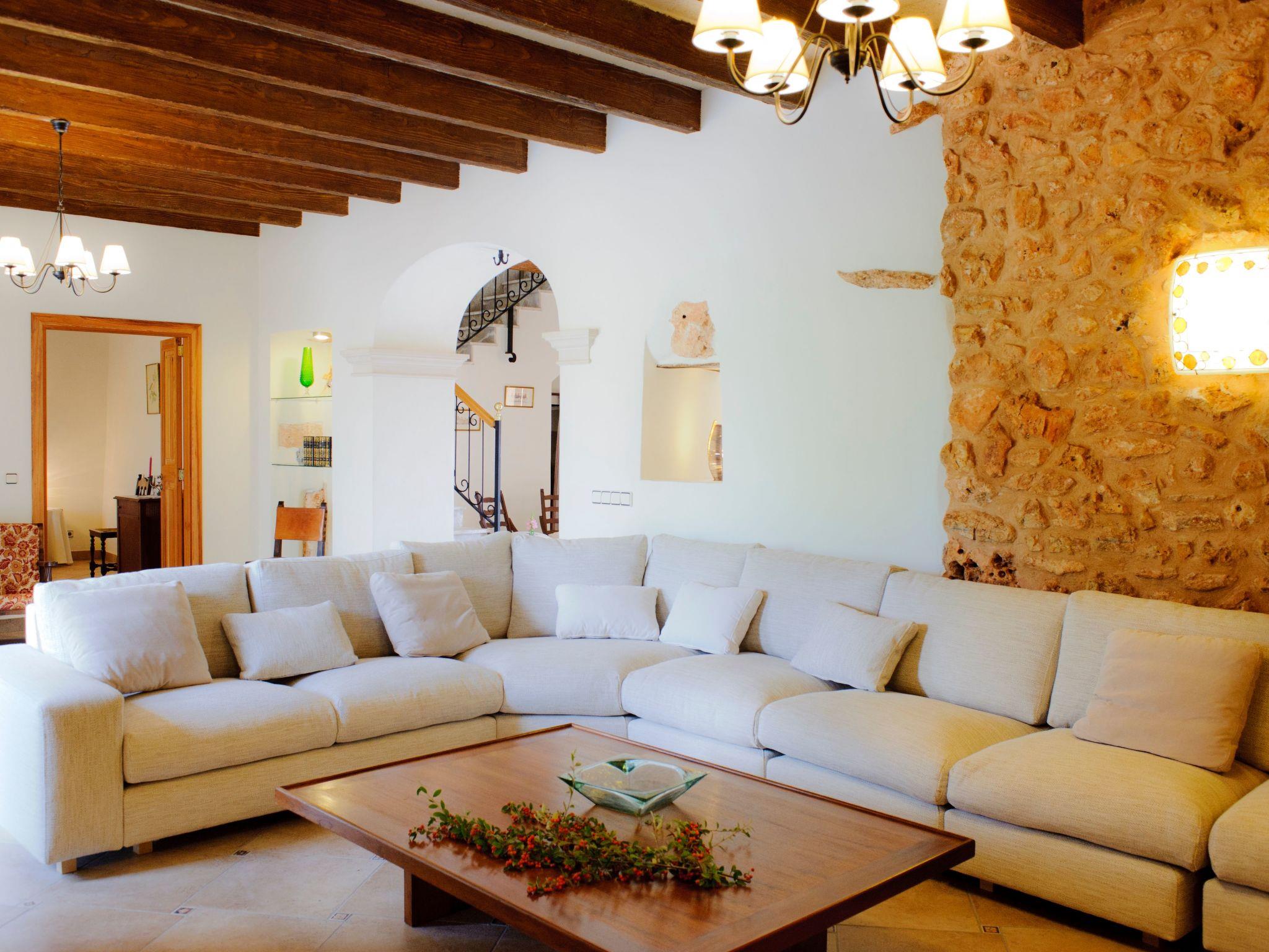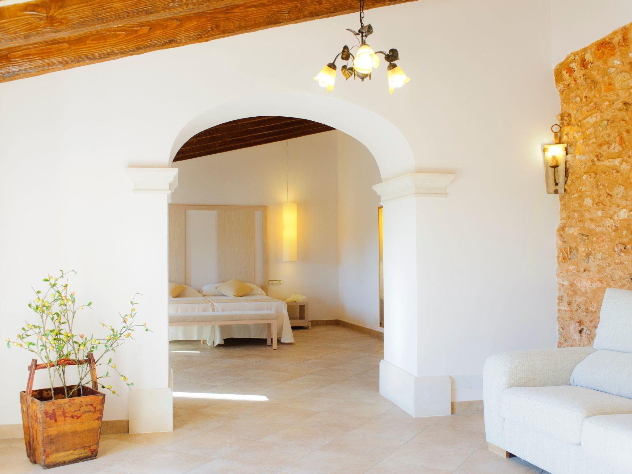 Mondragó Duri is a fabulous property of high standard, whose origins date back 300 years. The house has been completely renovated; the result is immaculate and sophisticated accommodation with heating throughout and air conditioning in the bedrooms. High rooms with wooden beamed ceilings and dry stone walls maintain the rustic ambience. In Mondragó Duri you are surrounded by a relaxing flair in all the rooms, each with its own style and some of which have been converted into exceptionally spacious suites. On the ground floor, you are greeted by a spacious entrance with antique furniture. The open-plan living room offers a fantastic sofa area from which you can enjoy a football match or a film on the large flat-screen TV. From the living room you have access to the rear terrace and the spacious kitchen, which also has terrace access. A pantry and a spectacular dining table make the kitchen a favourite meeting place in the property. Next to the kitchen is a simple guest shower room and from the living room there is access to a wheelchair-accessible guest toilet. On the ground floor you will also find a beautiful suite with double bed, en-suite bathroom with Jacuzzi bath and shower, as well as access to the outside area. The second bedroom, furnished with 2 single beds, is also spacious and has an en-suite shower room. On the upper floor there are two marvellous suites, both with double beds, en-suite feel-good bathrooms with Jacuzzi baths and separate showers. One of the two suites also offers a private terrace with beautiful views of the surrounding countryside and, last but not least, the shower has a hydromassage system. The 5th bedroom is equipped with 2 single beds and en-suite bathroom with bathtub. The 6th bedroom is located in an attractive annex close to the pool and has a single bed and en-suite shower room as well as a lovely covered terrace.